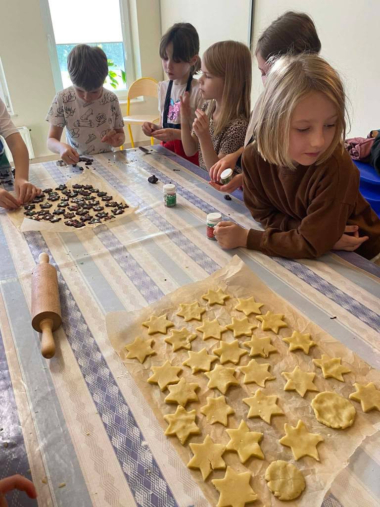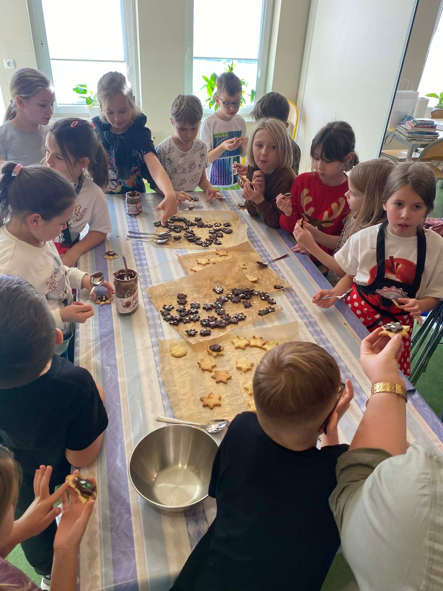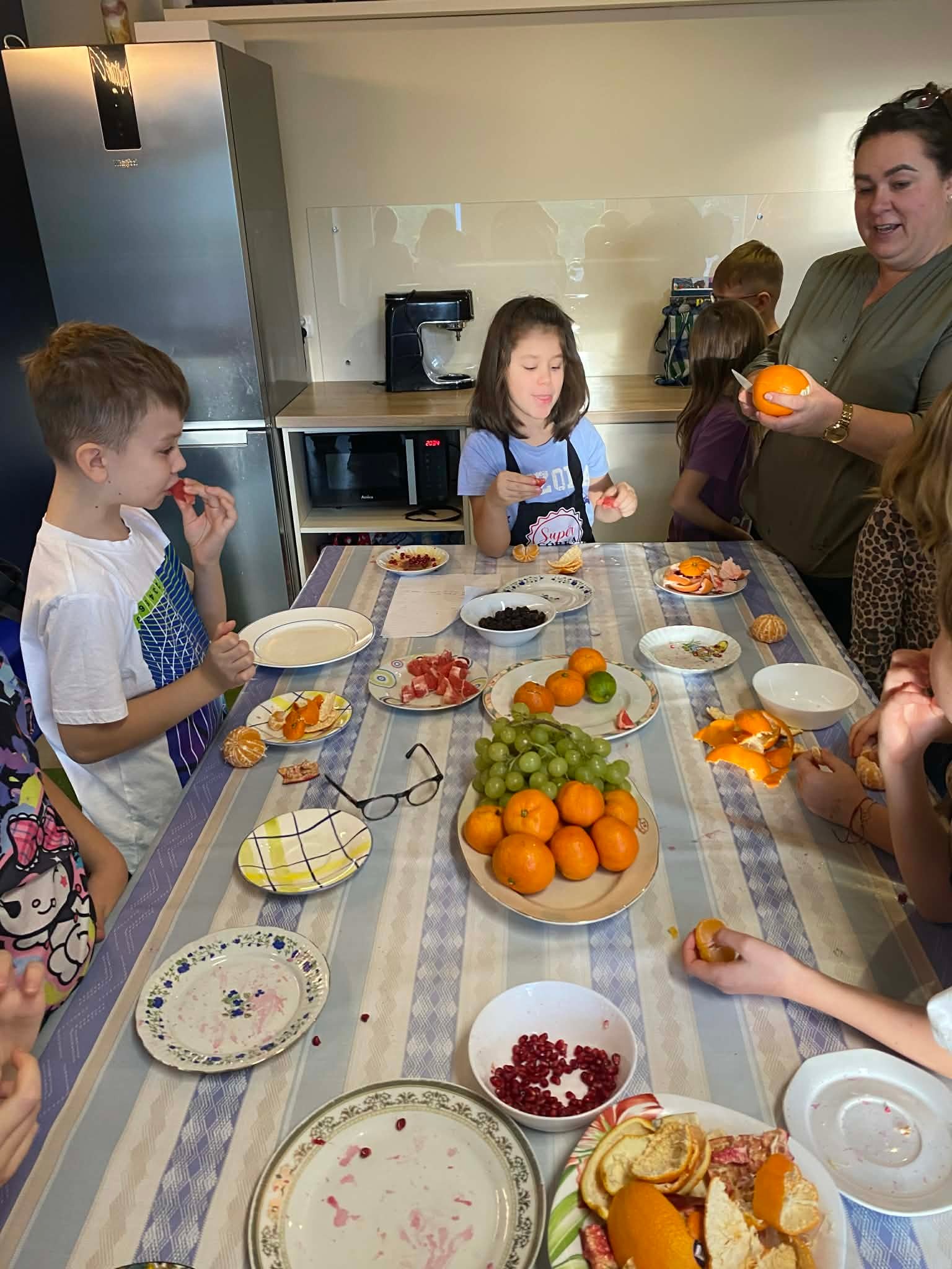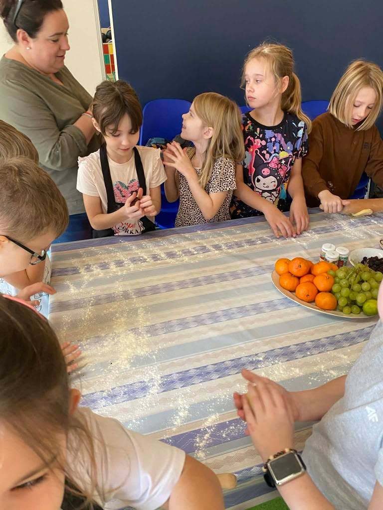 , a także zobaczyć na filmach, jak powstają te wyjątkowe sery. Pani Agnieszka upiekła razem z dziećmi pyszne biscotti – włoskie ciasteczka w kształcie gwiazdeczek z Nutellą ⭐🍫, które okazały się hitem zajęć!