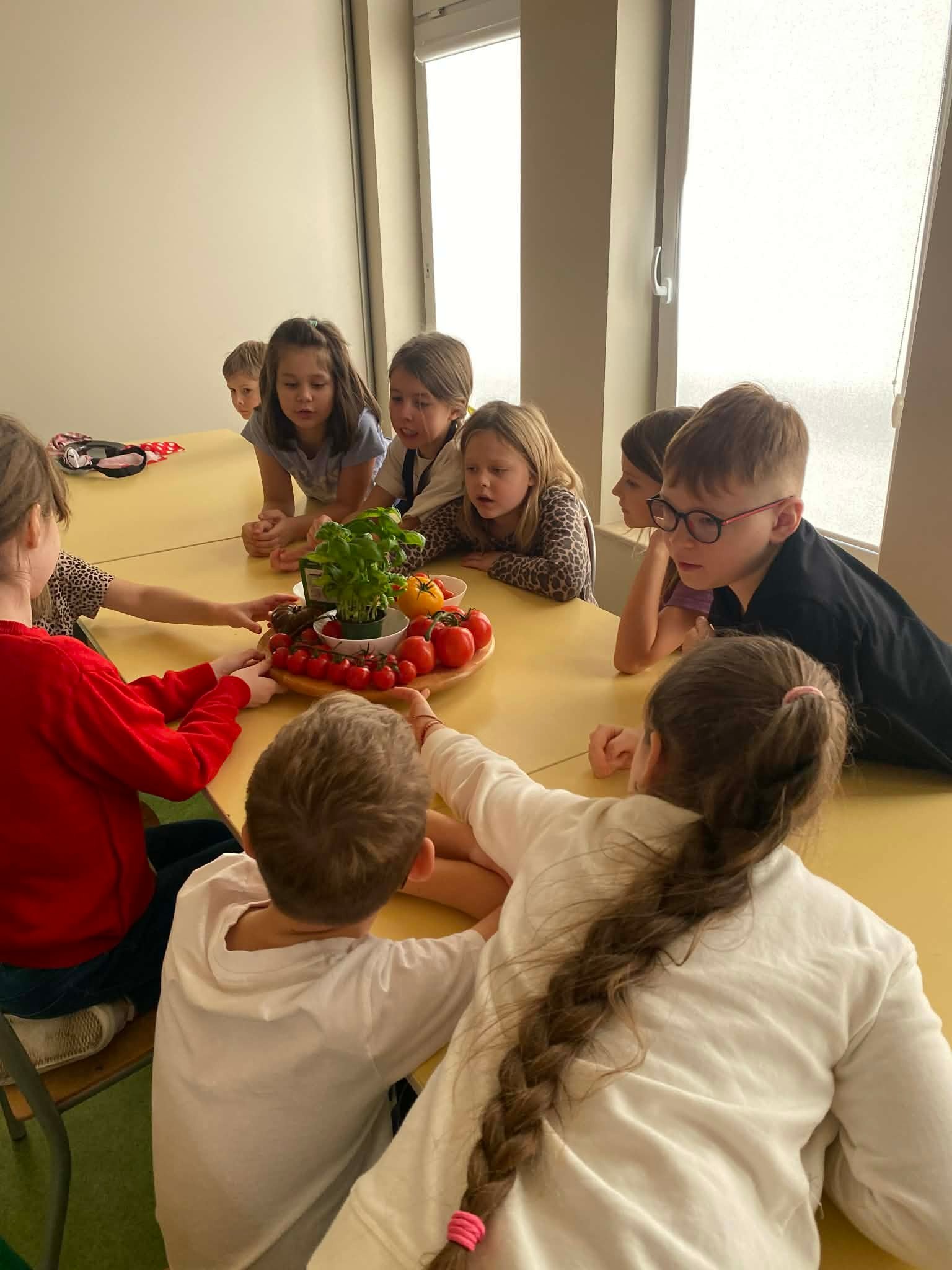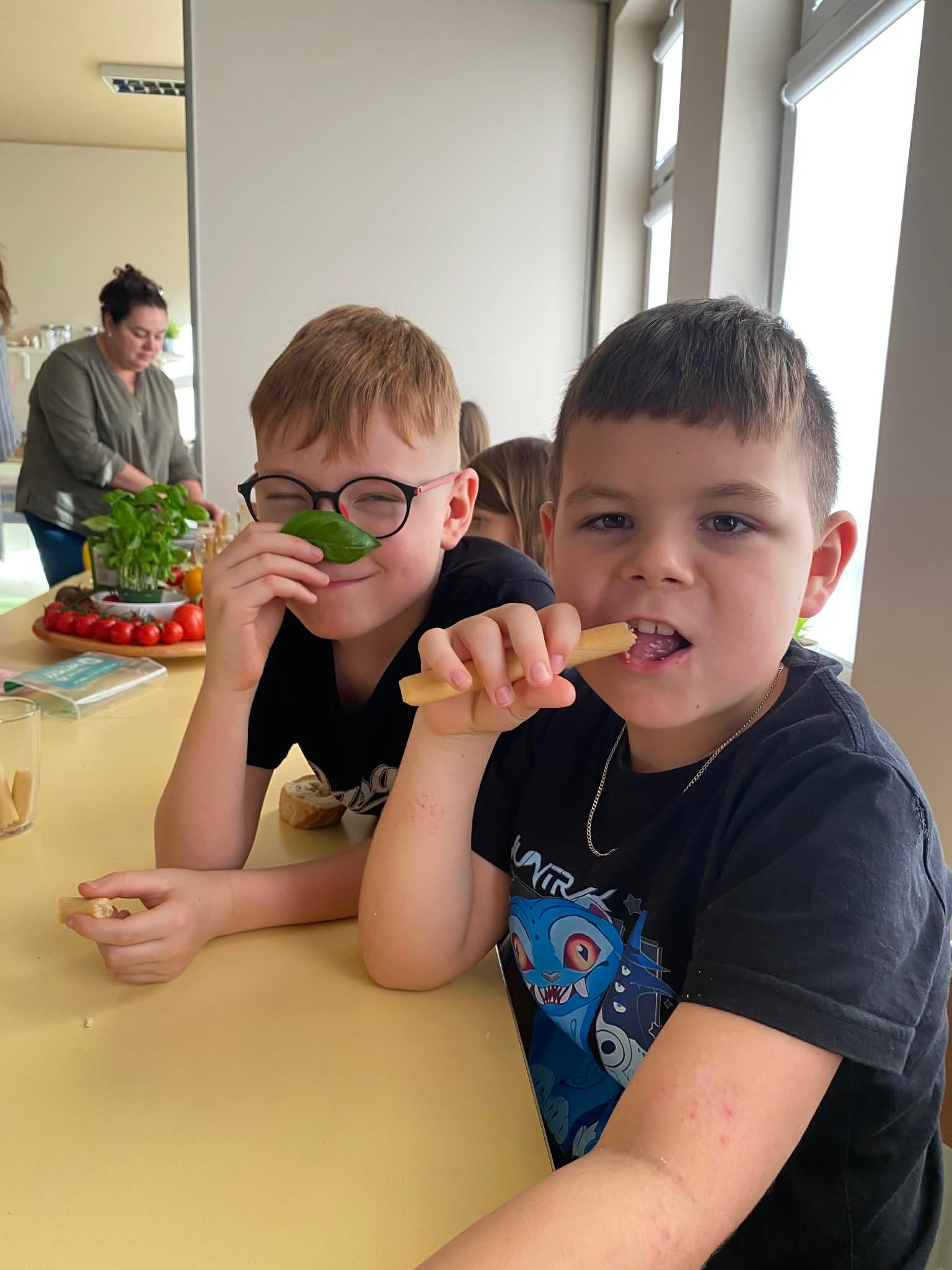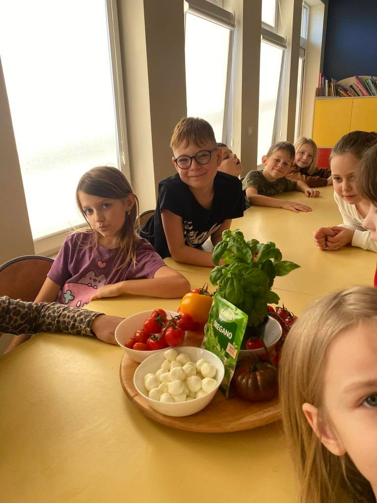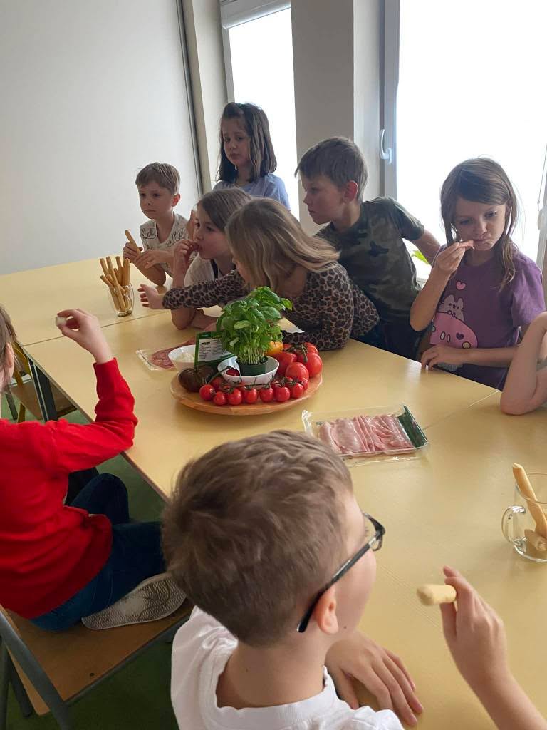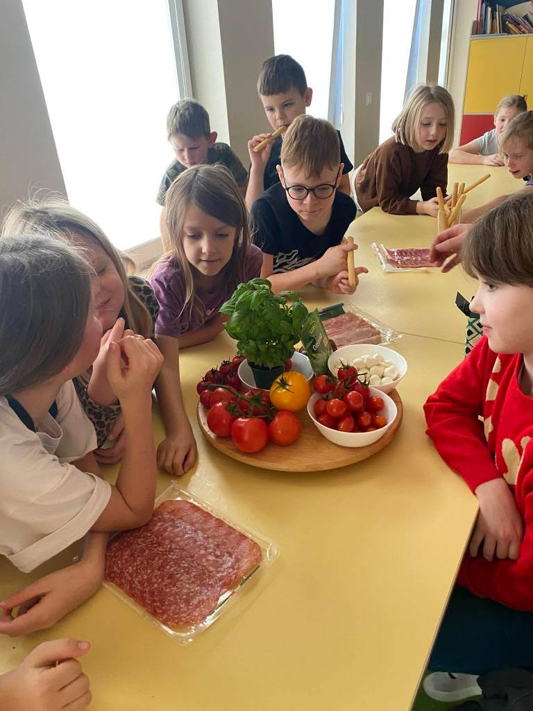 Nie zabrakło również włoskich smaków 😋🍽️. Uczniowie mogli spróbować prawdziwej włoskiej oliwy z oliwek, bagietek, wędlin, parmezanu i mozzarelli