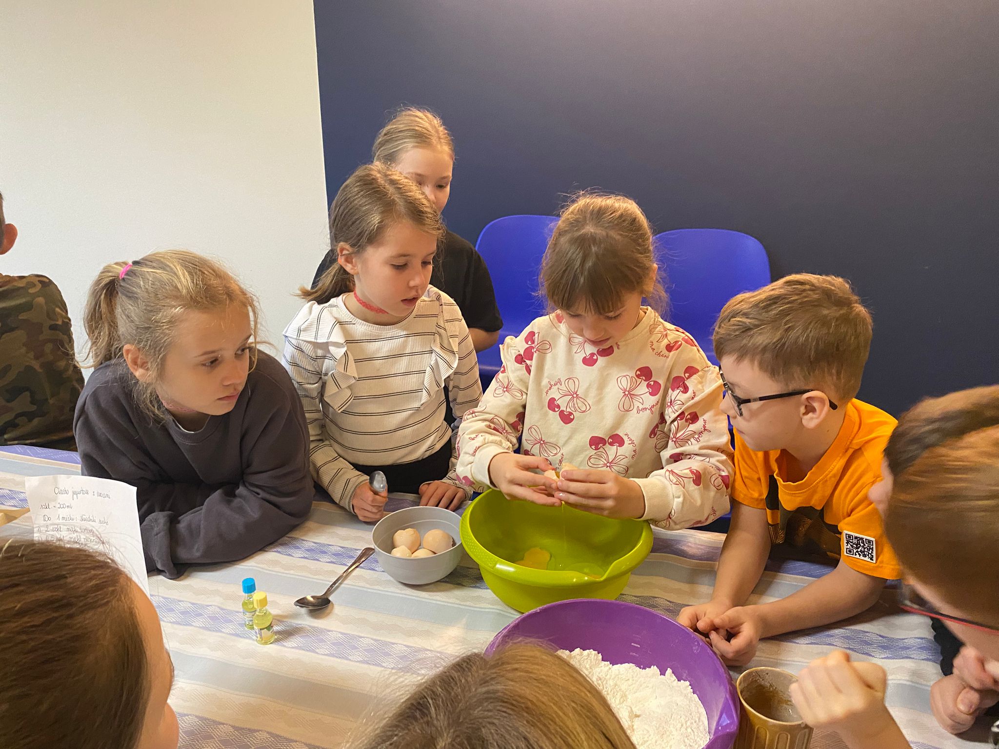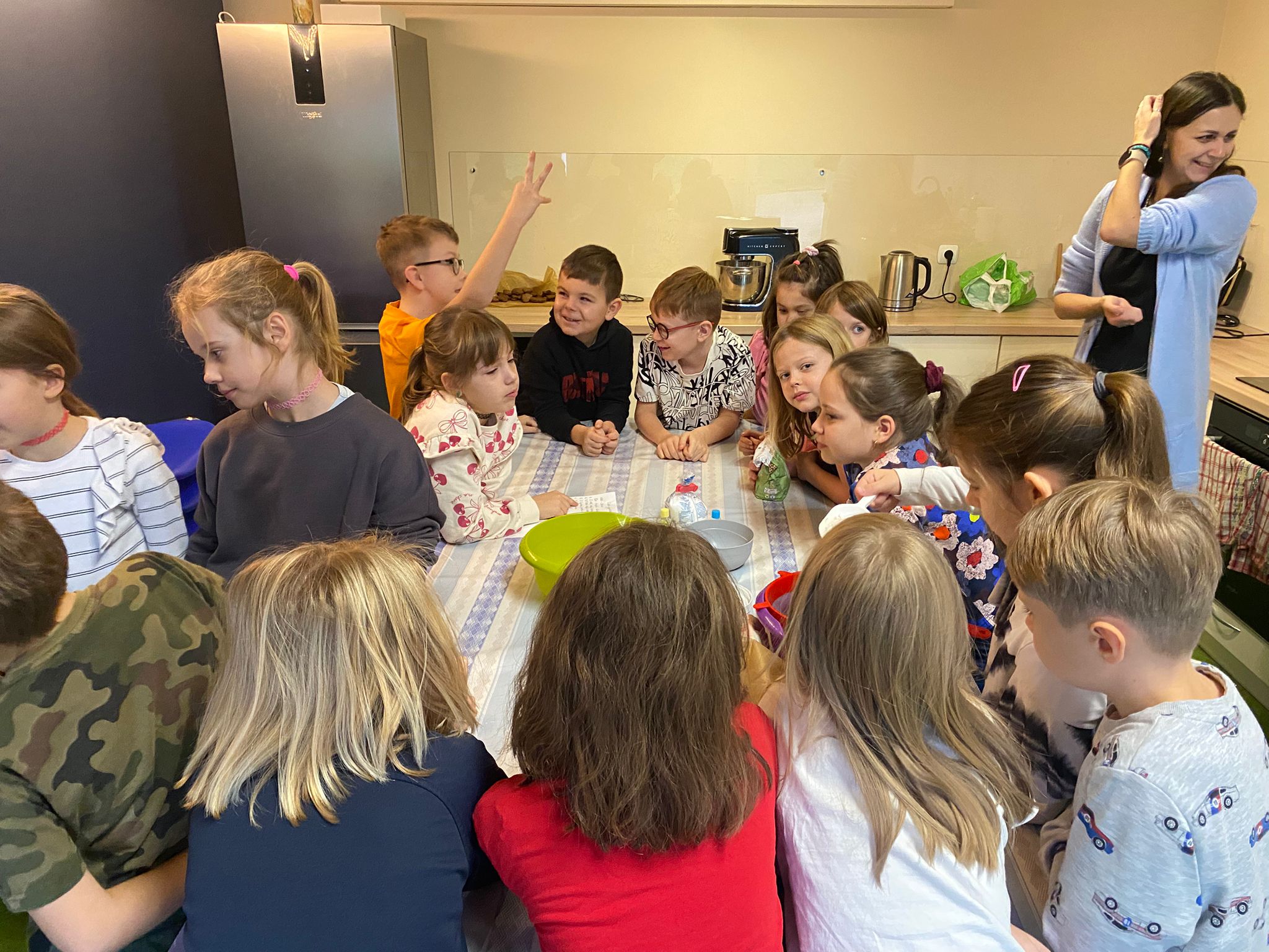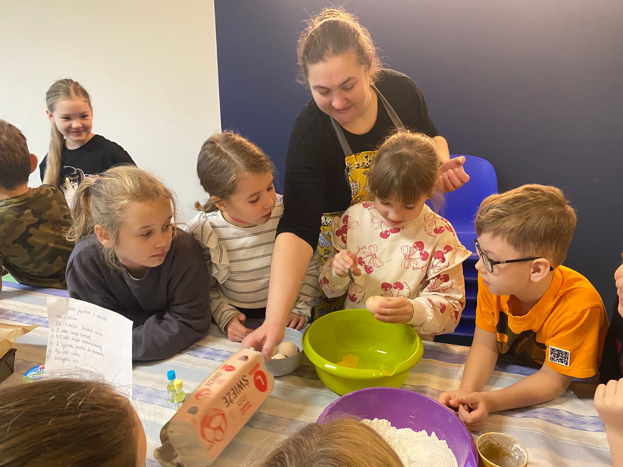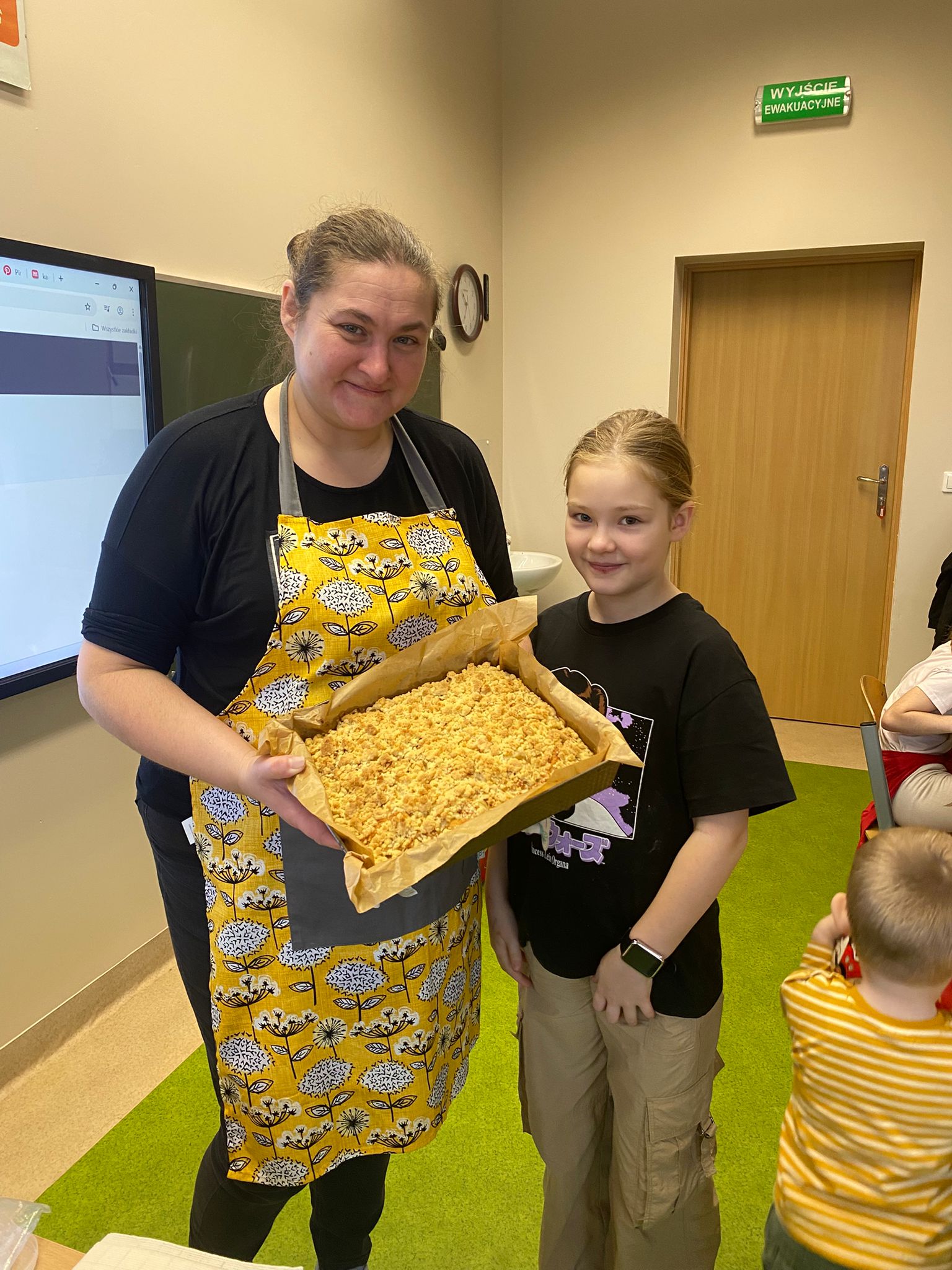 Pani Agnieszka wspólnie z uczniami przygotowała ciasto jogurtowe od podstaw – dzieci otrzymały przepis i samodzielnie wykonywały wszystkie kroki, poznając przy tym kulinarne tajniki. 👩🍳🧁