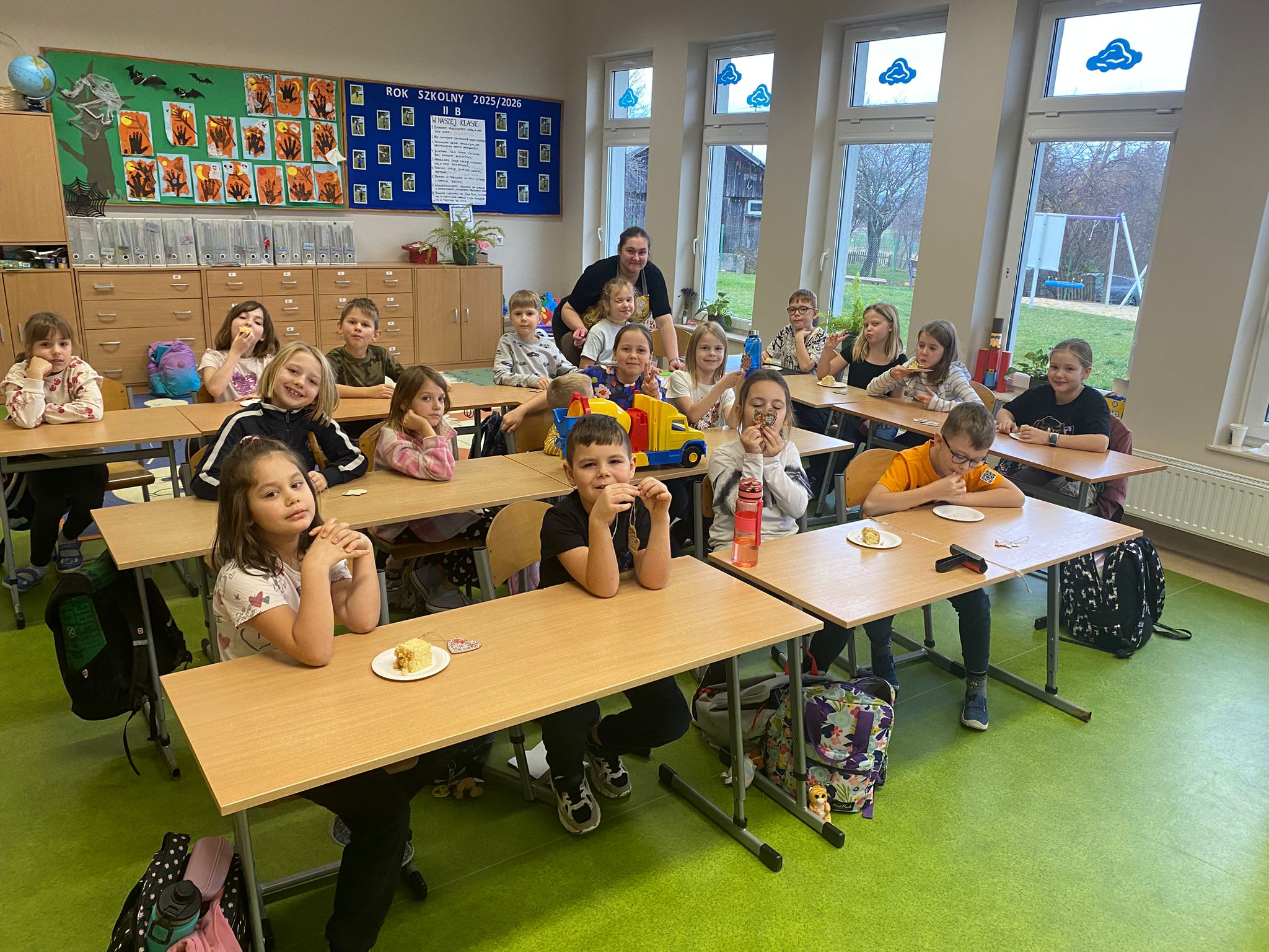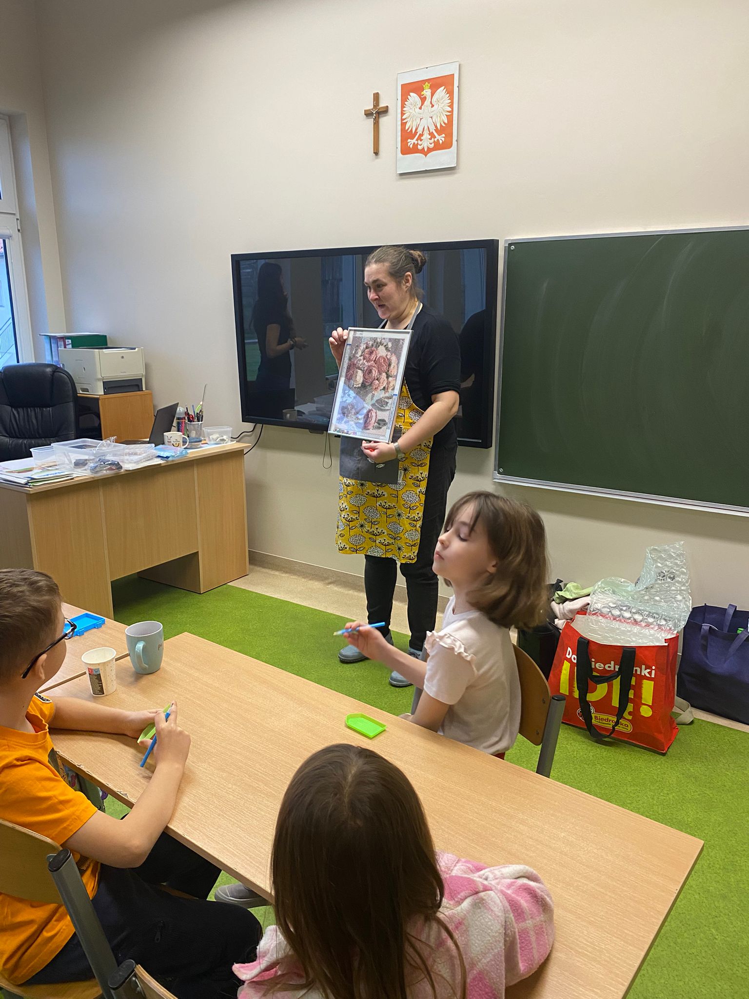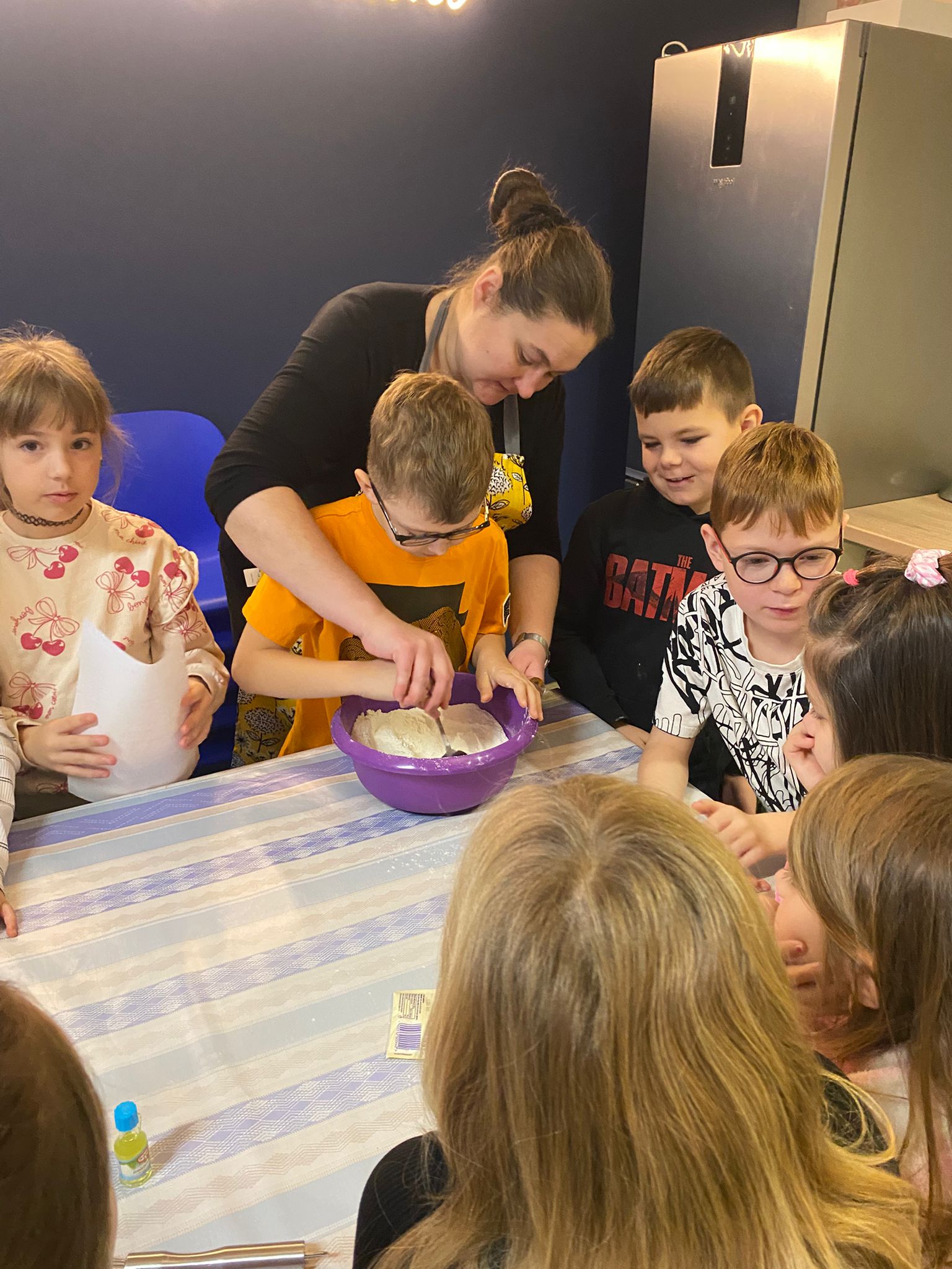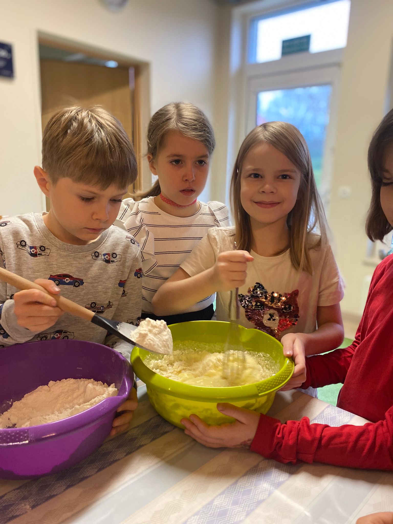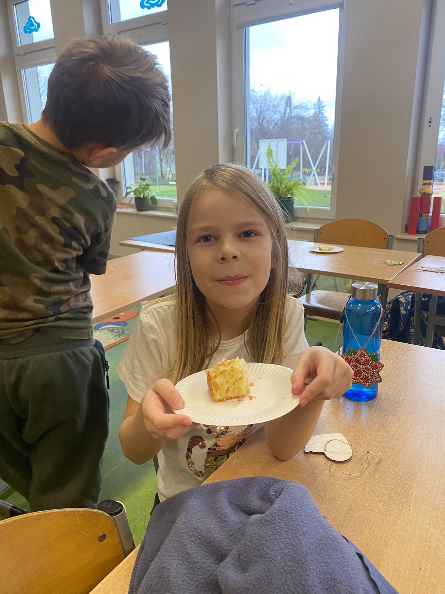 Pani Agnieszka wspólnie z uczniami przygotowała ciasto jogurtowe od podstaw – dzieci otrzymały przepis i samodzielnie wykonywały wszystkie kroki, poznając przy tym kulinarne tajniki. 👩🍳🧁