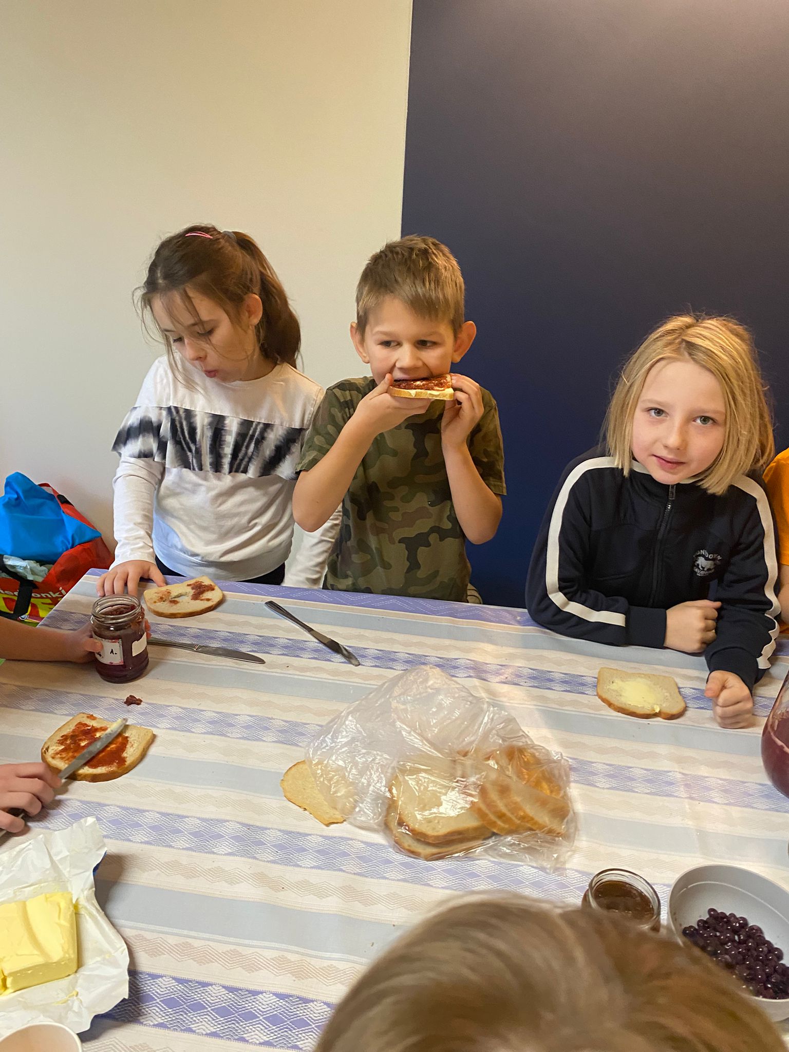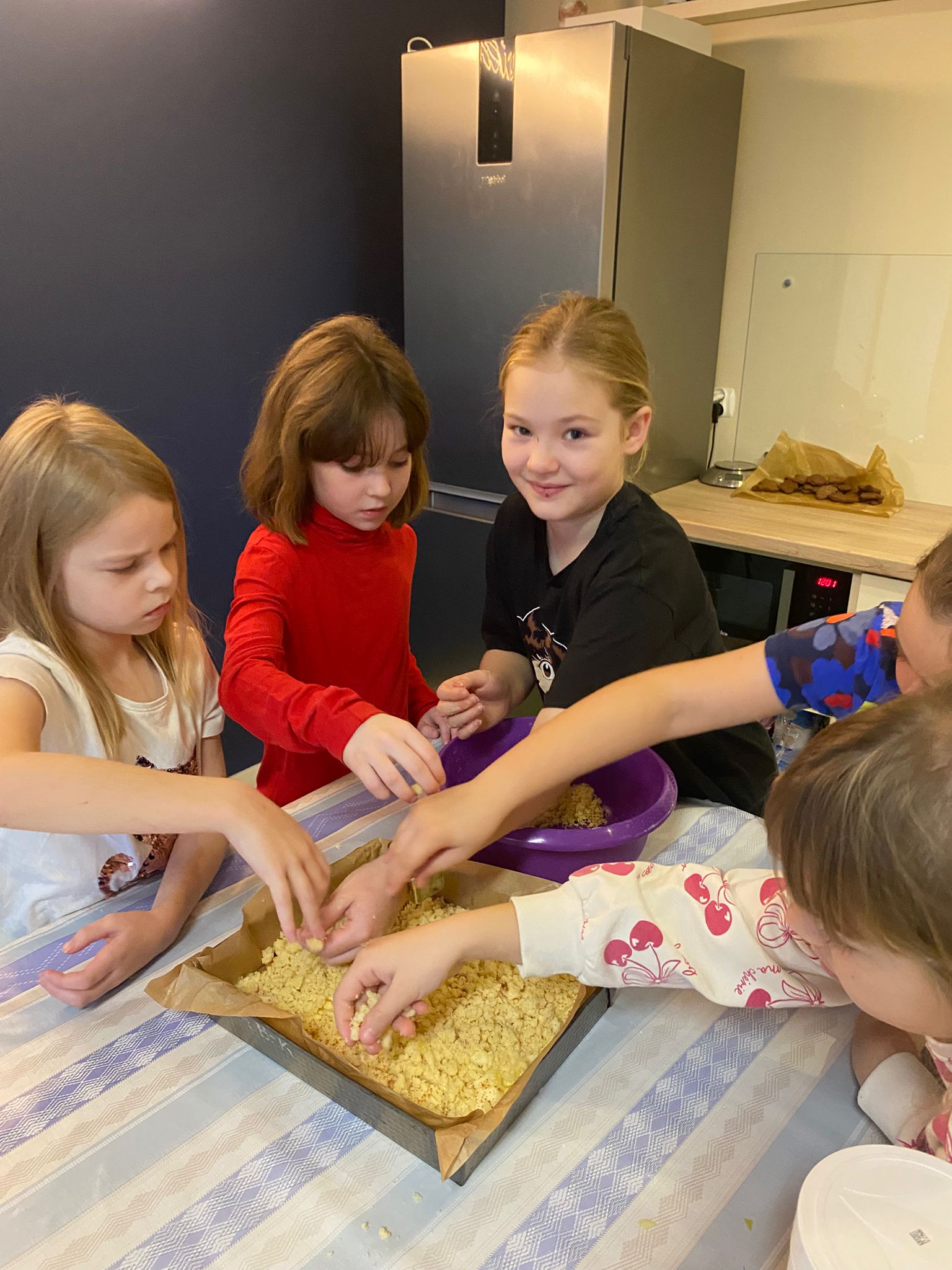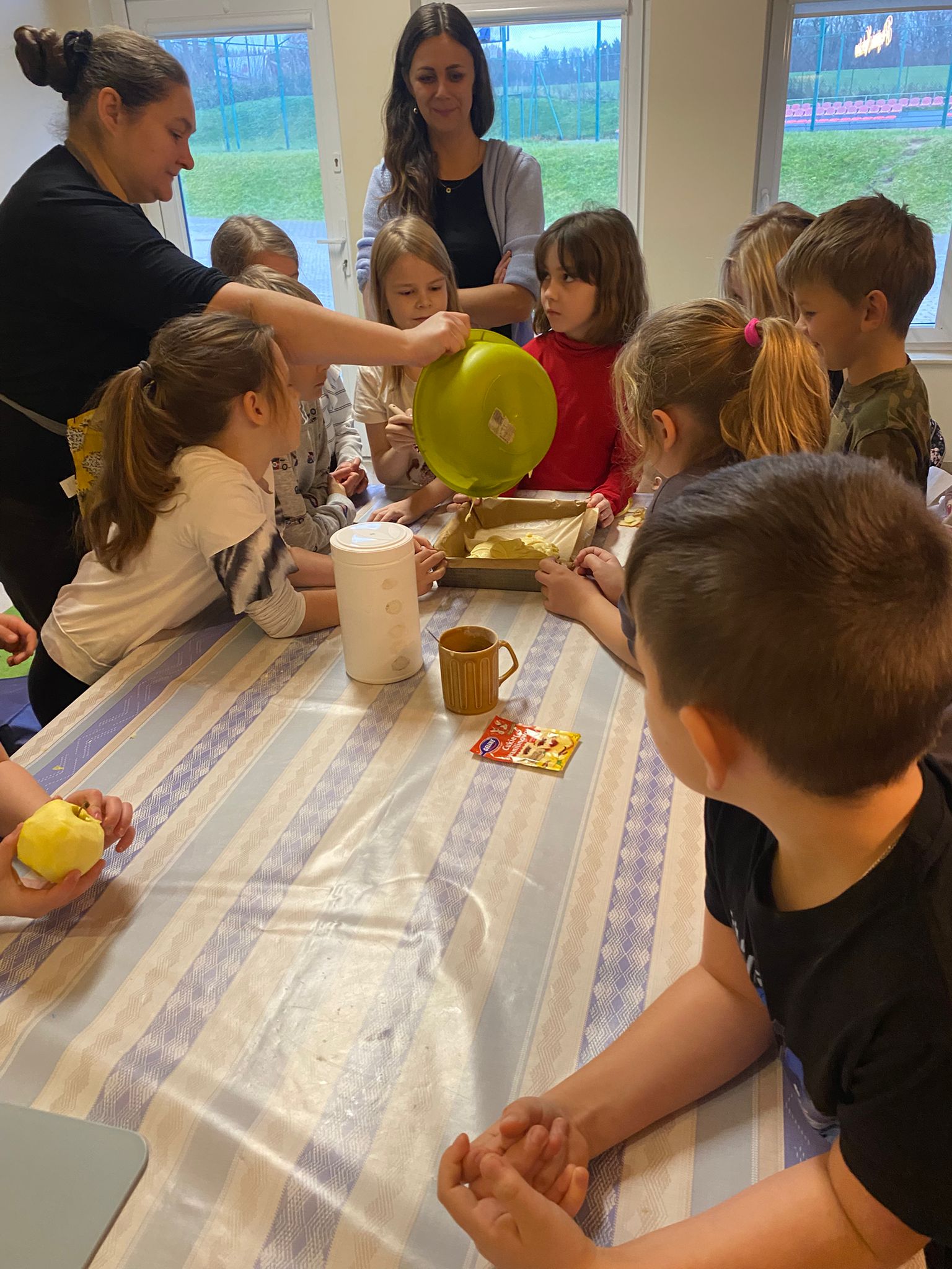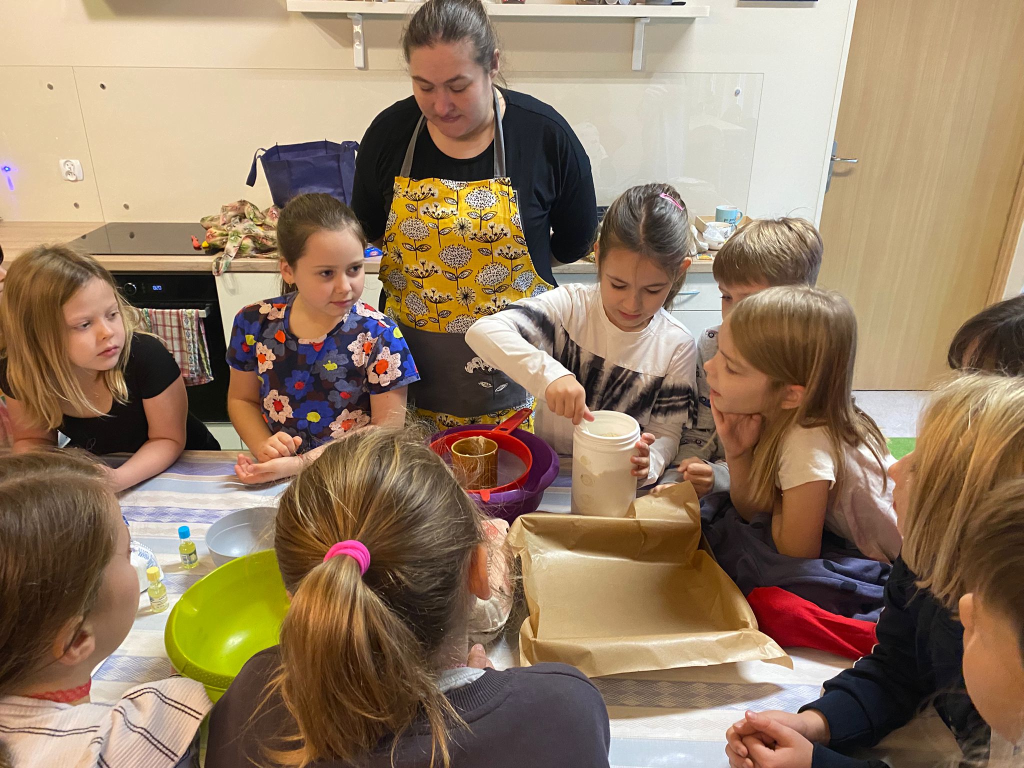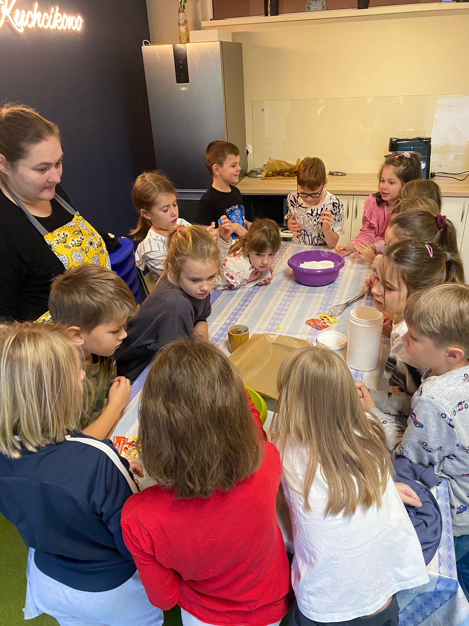 Pani Agnieszka wspólnie z uczniami przygotowała ciasto jogurtowe od podstaw – dzieci otrzymały przepis i samodzielnie wykonywały wszystkie kroki, poznając przy tym kulinarne tajniki. 👩🍳🧁