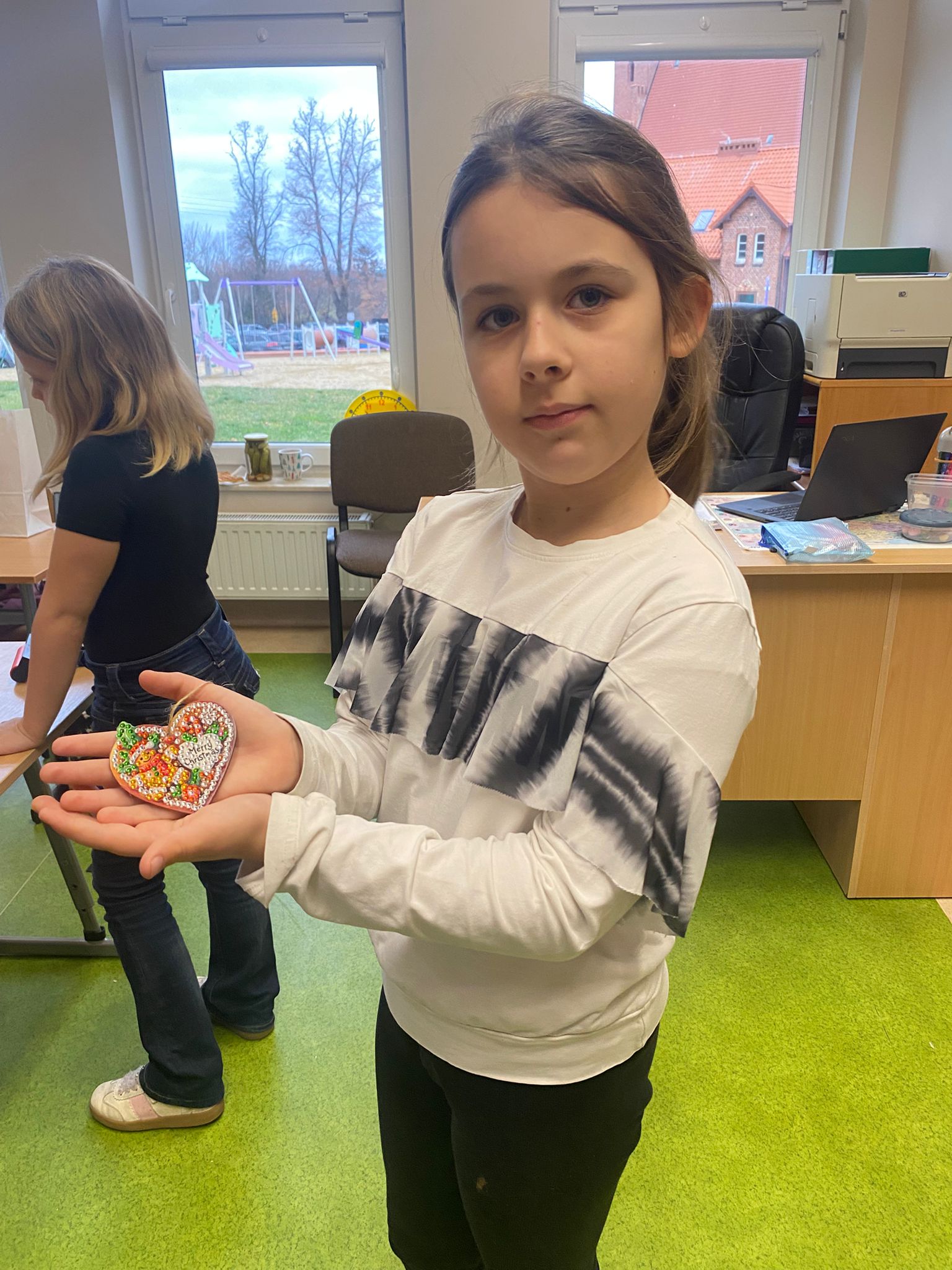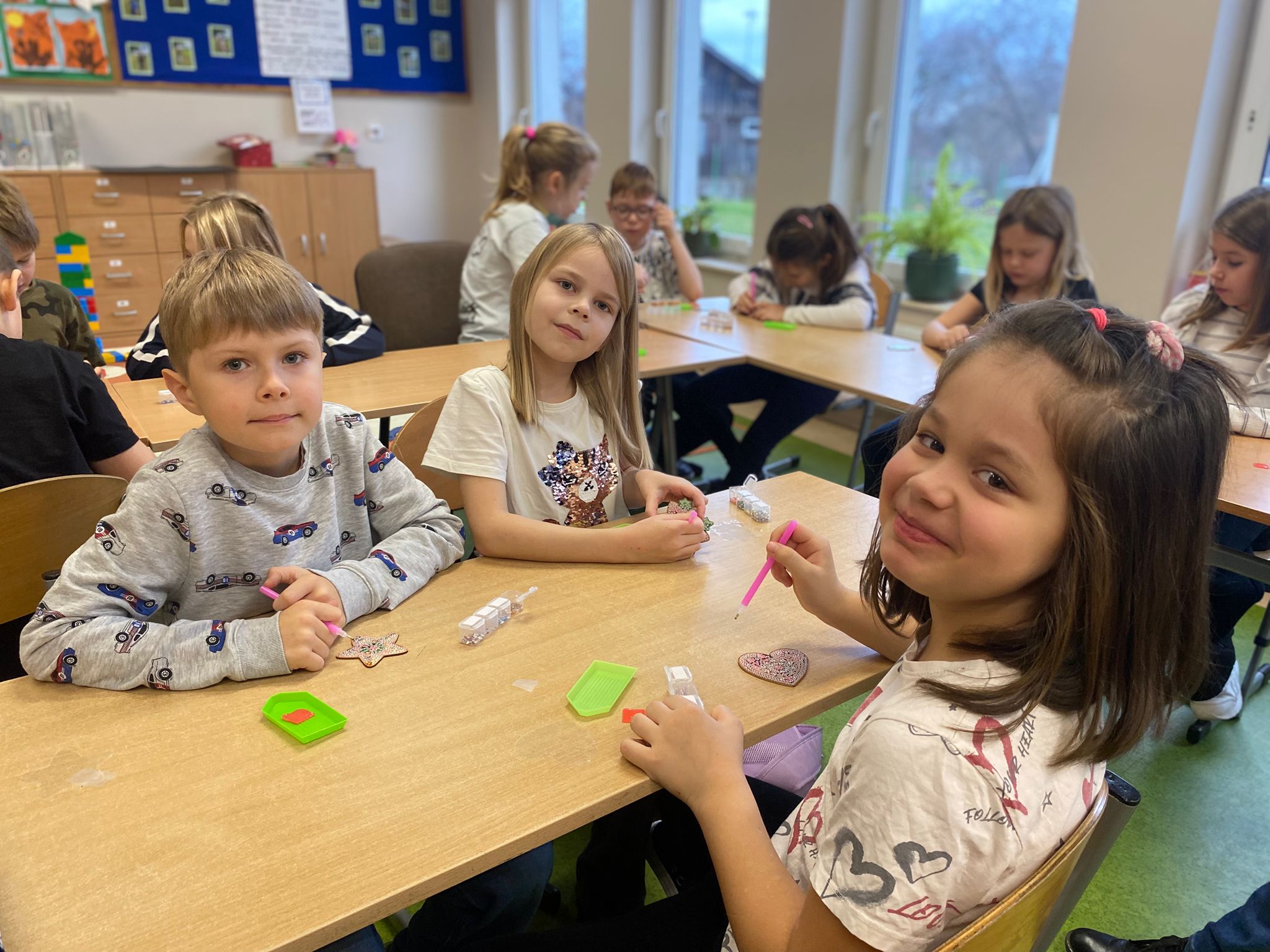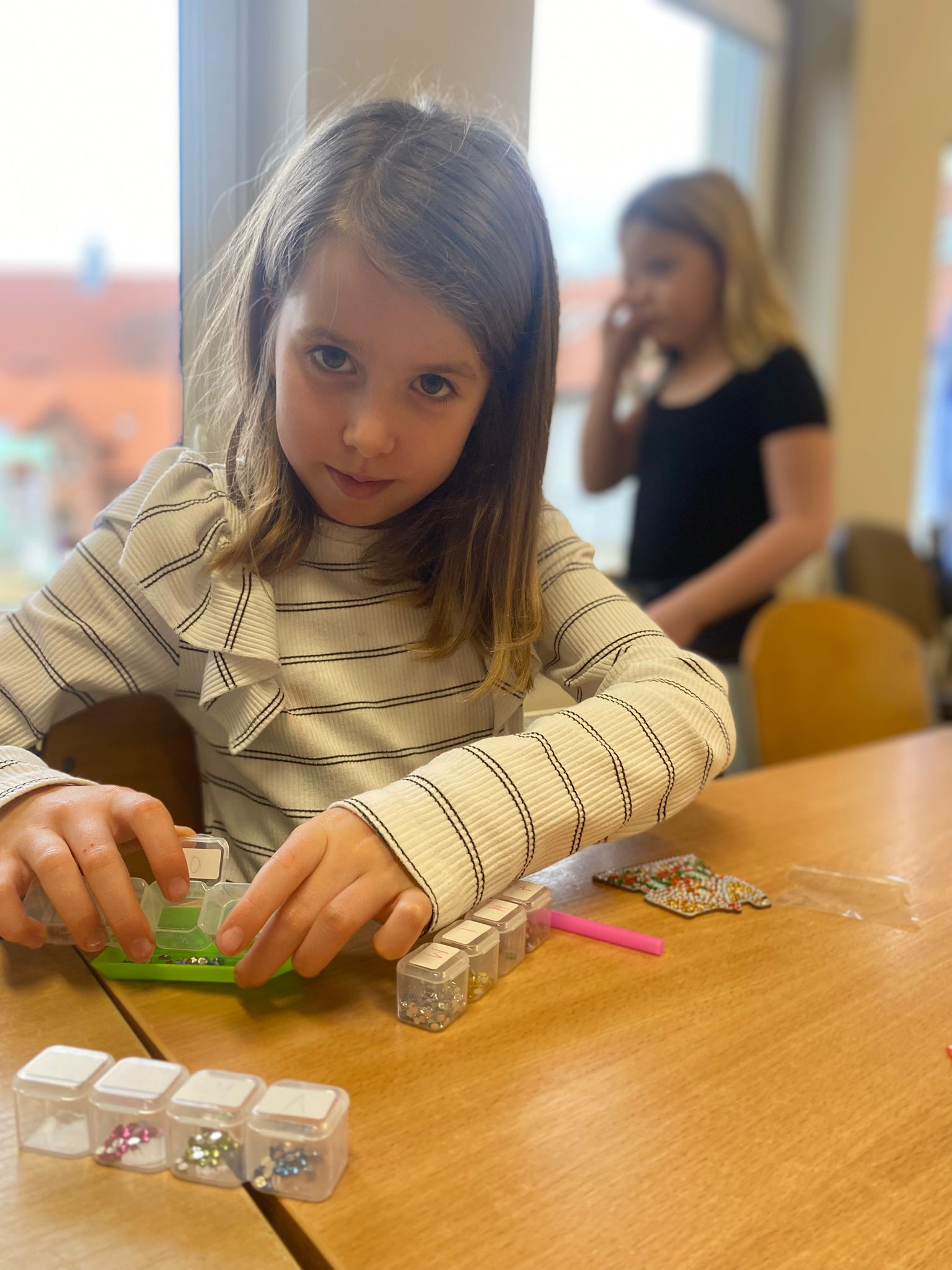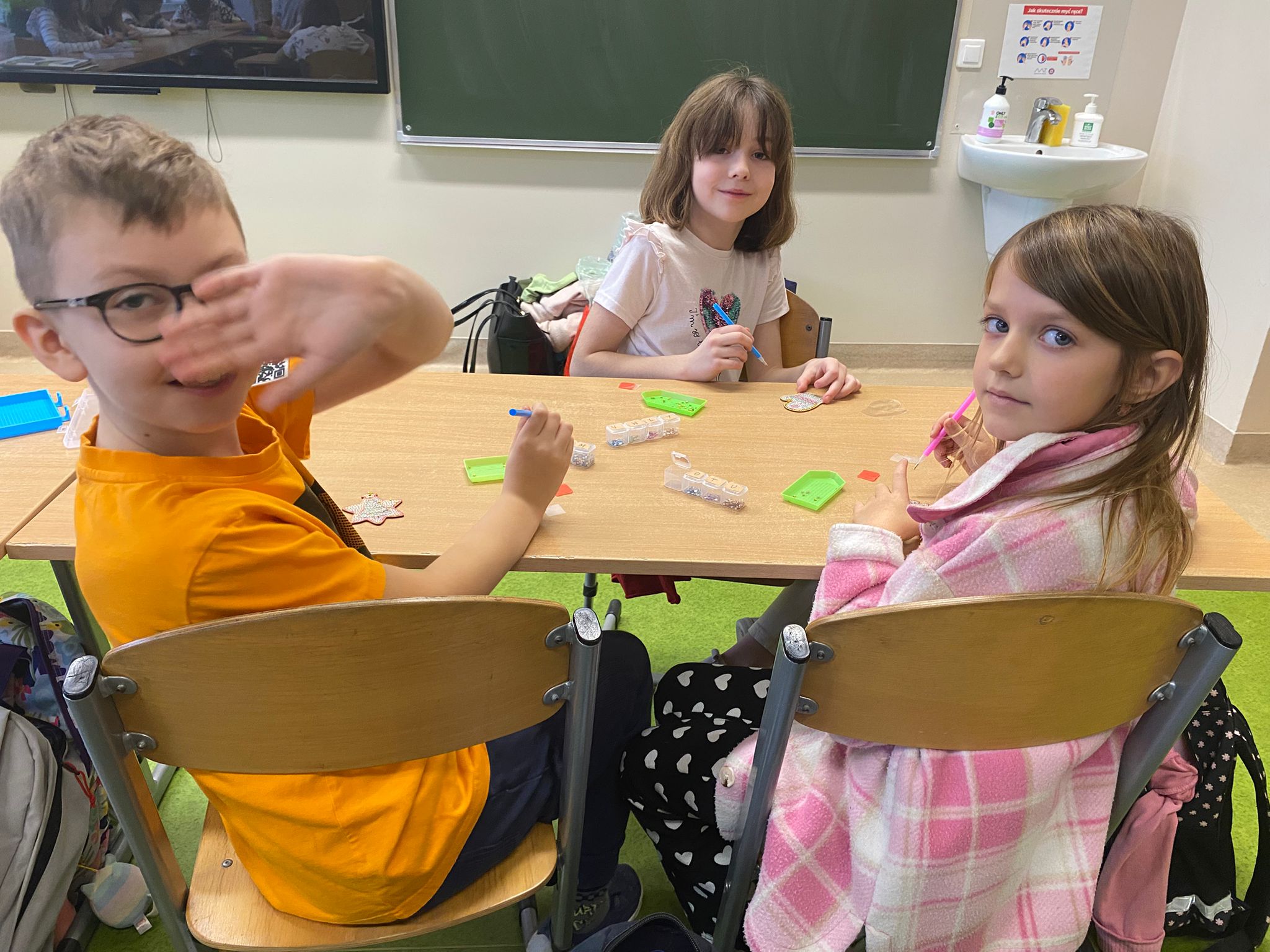 Na zakończenie pani Agnieszka podzieliła się kolejną pasją – haftem diamentowym. Każdy uczeń mógł spróbować swoich sił i stworzyć własną, błyszczącą ozdobę. ✨💎
