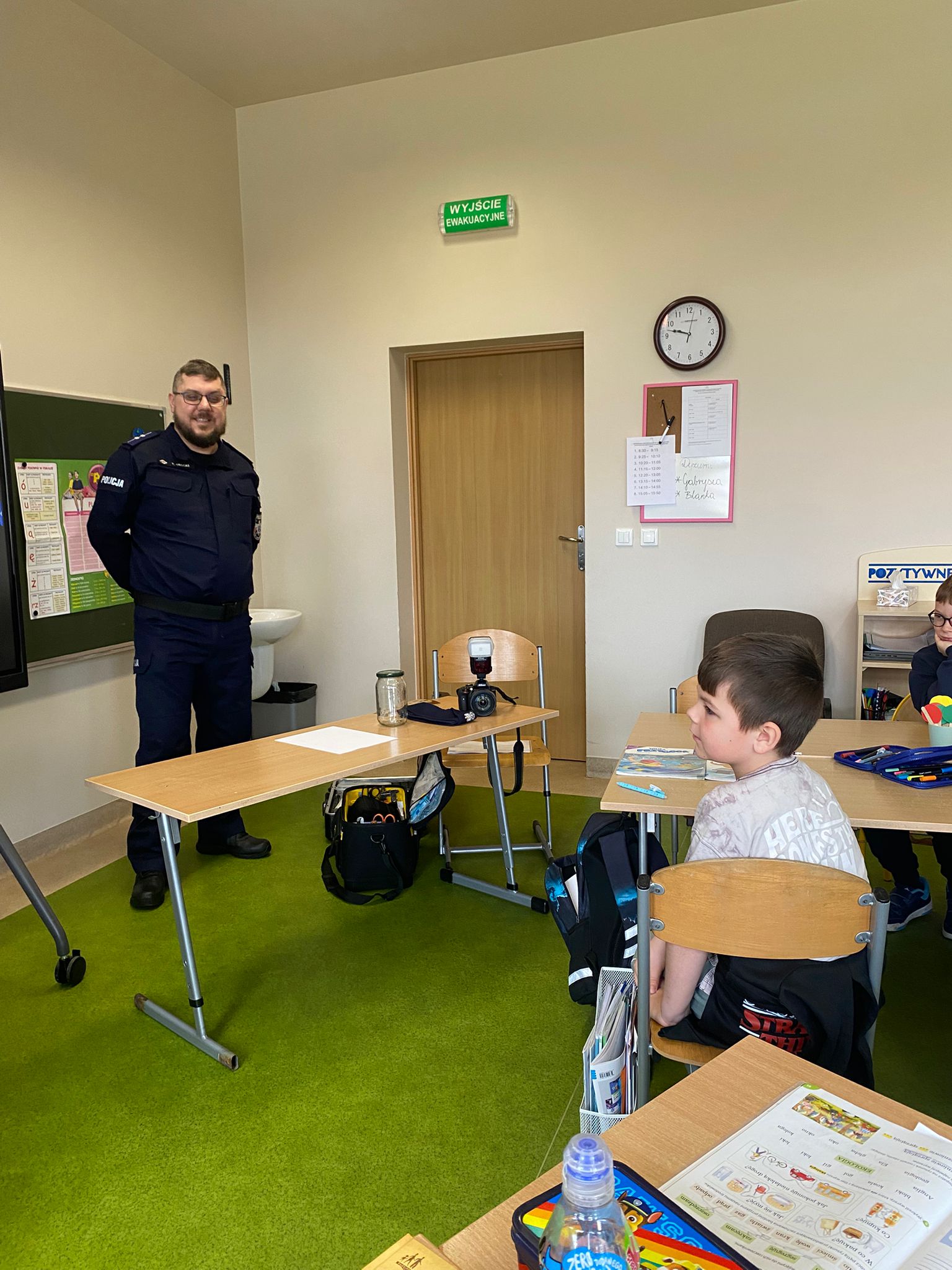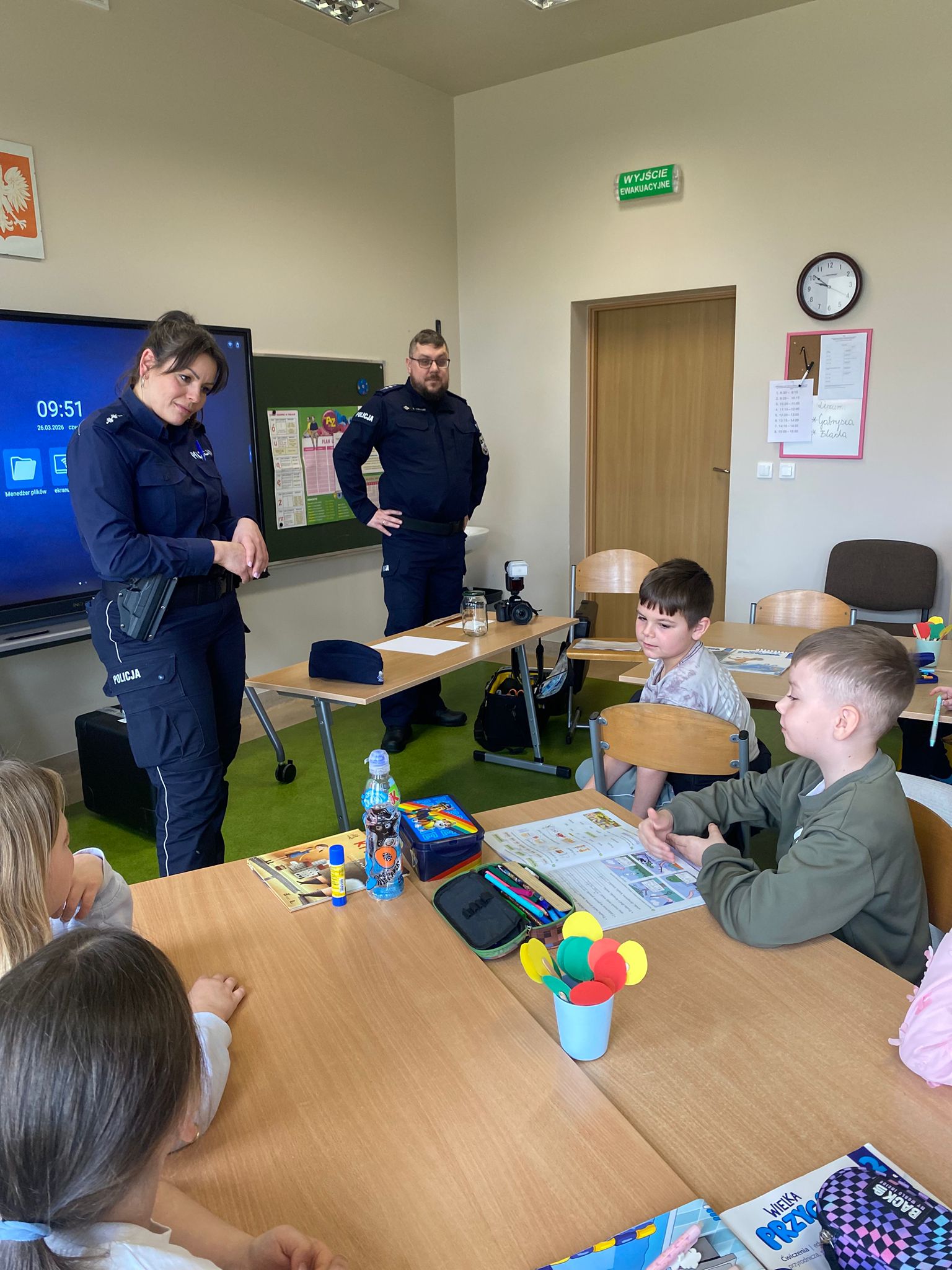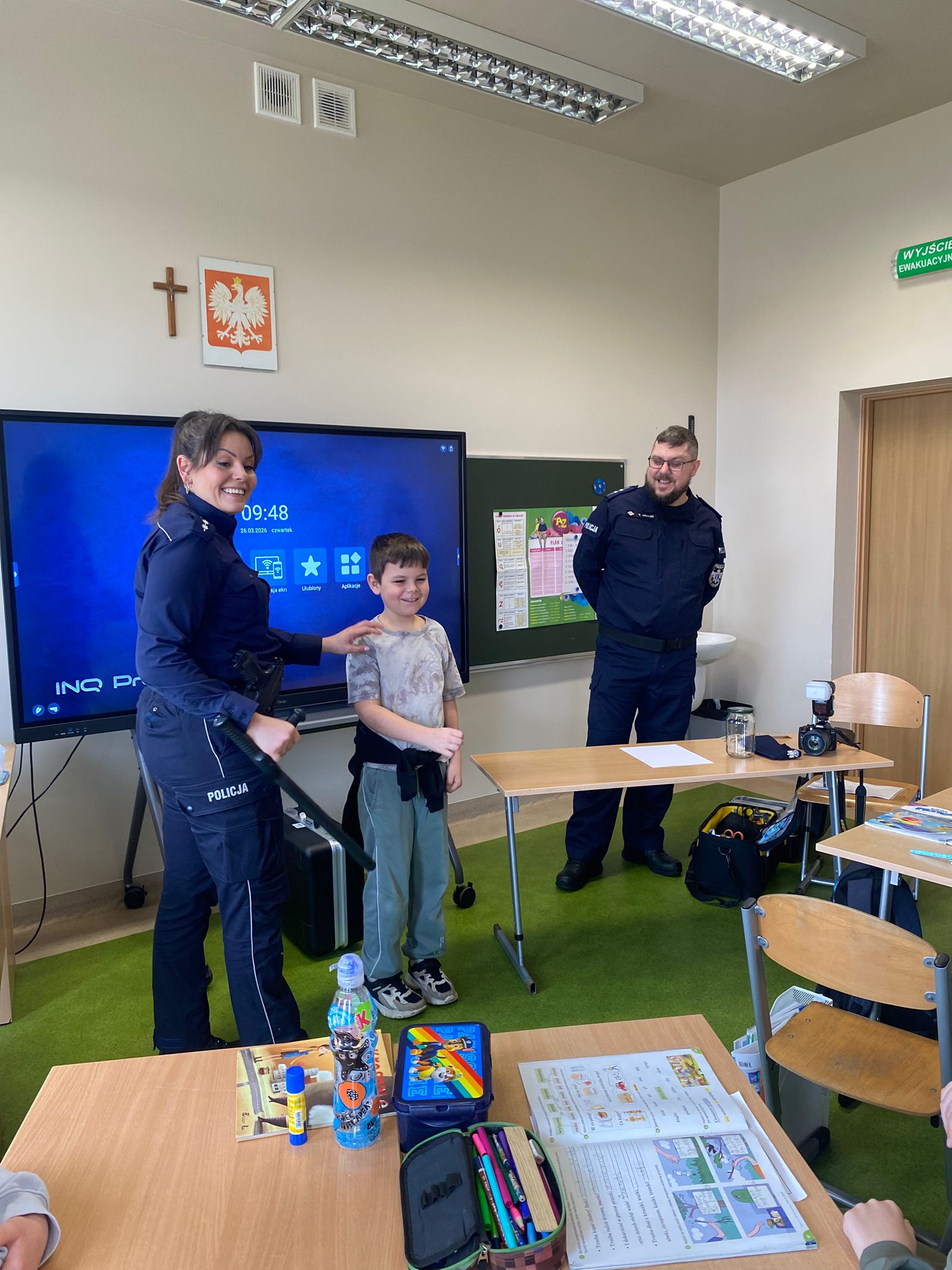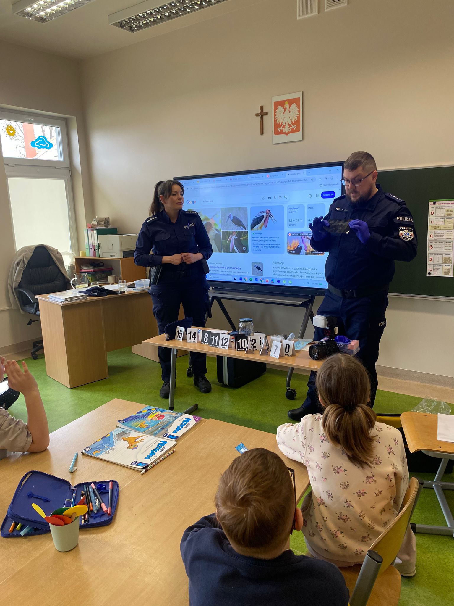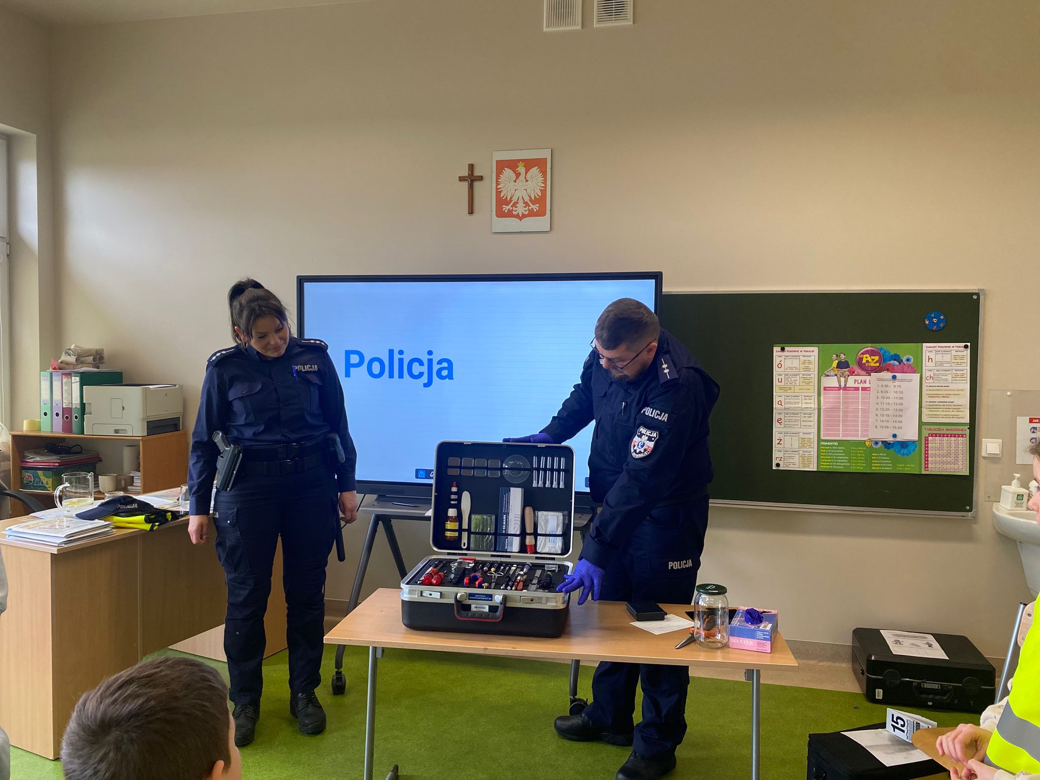 👮♀️🚓 W ramach realizacji projektu edukacyjnego „Mój rodzic, jego zawód, a pasja i zainteresowania” uczniowie klasy 2b mieli przyjemność gościć st.asp. Joannę Kosecką - Kierownik Ogniwa Prewencji Komisariatu Policji w Krokowej oraz asp. Tomasza Trockiego - Technik kryminalistyki Zespołu Techniki Kryminalistycznej Wydziału Dochodzeniowo-Śledczego Komendy Powiatowej Policji w Pucku, a prywatnie tatę naszego ucznia Tomka.😊
