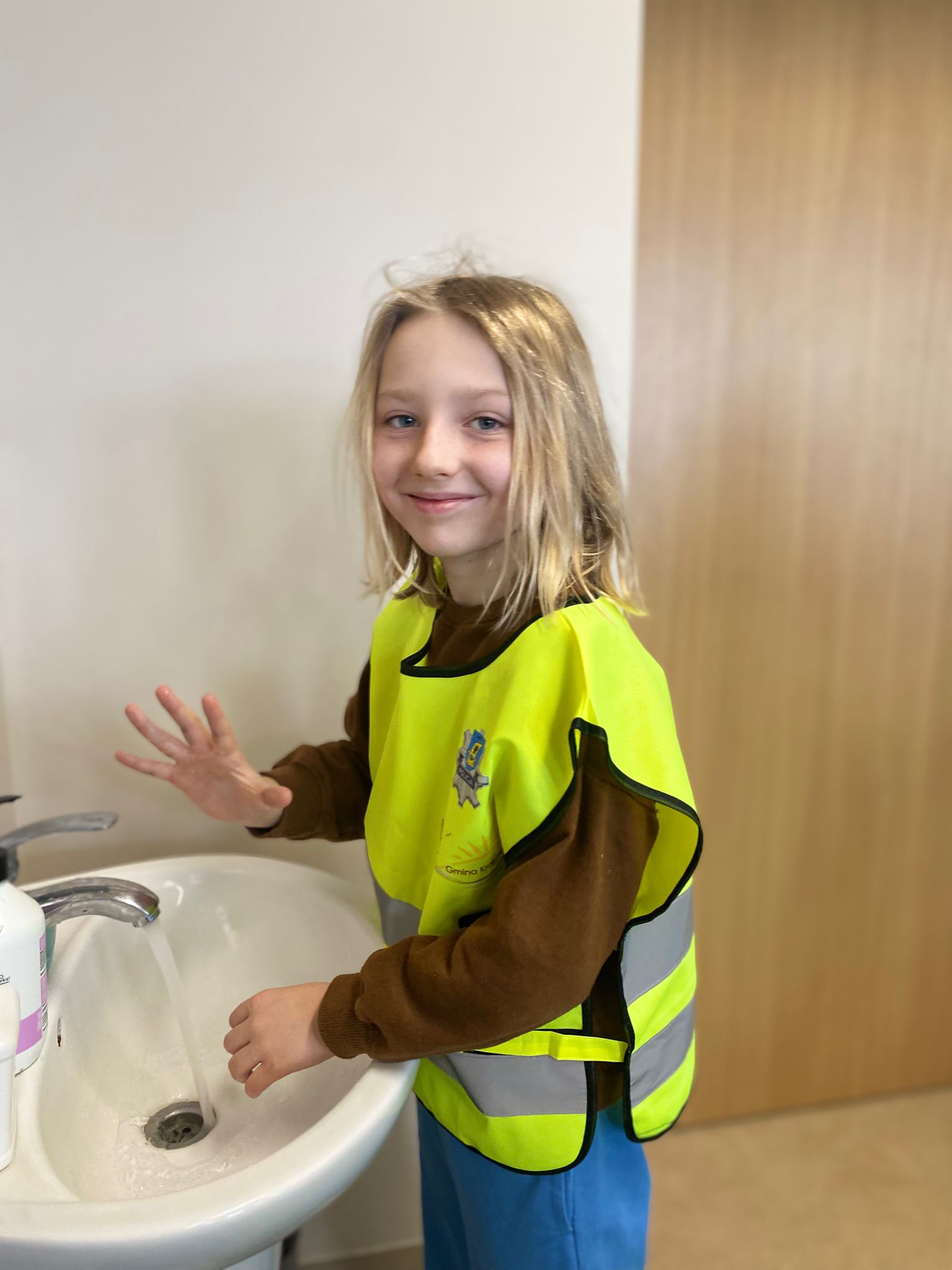 🚦👂 Na początku Pani Joanna opowiedziała dzieciom o swojej pracy jako policjantki 👮🏻♀️. Następnie przeprowadziła z uczniami rozmowę na temat bezpieczeństwa – dzieci dowiedziały się, jak prawidłowo poruszać się po drodze 🚸, z kim i gdzie można jeździć na rowerze 🚴♂️ oraz jak należy się do tego odpowiednio przygotować. Szczególną uwagę Pani Policjantka zwróciła na konieczność noszenia kasku. ⛑️🧠