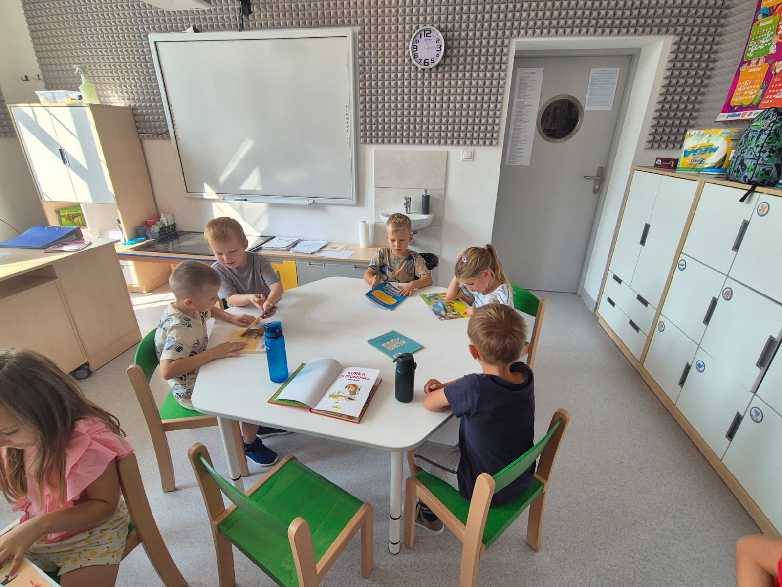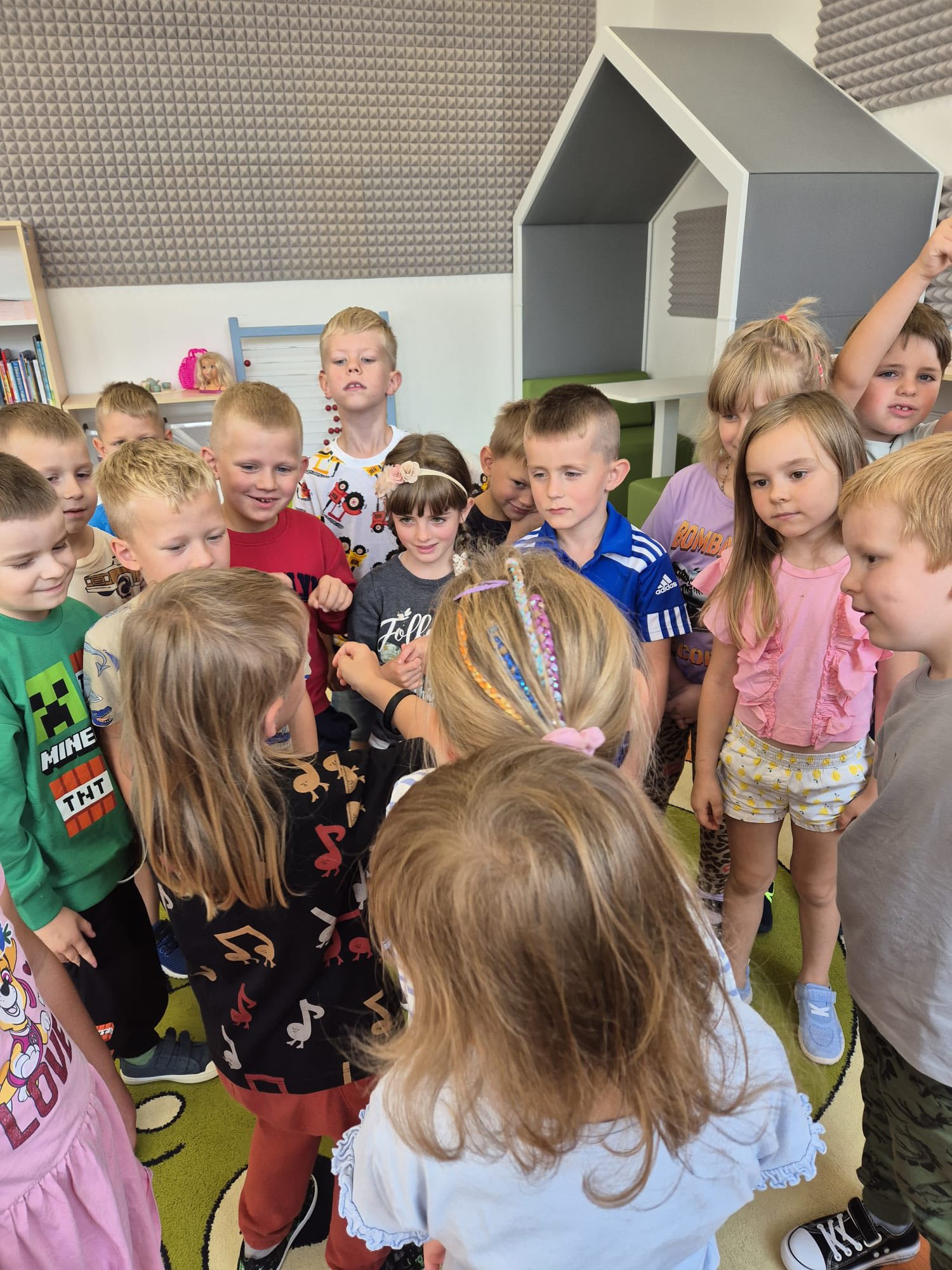 Dzieci wspaniale odnalazły się w nowych salach, poznały kolegów i koleżanki, wspólnie bawiły się, śpiewały, tańczyły i tworzyły pierwsze prace plastyczne 🎨🎶.