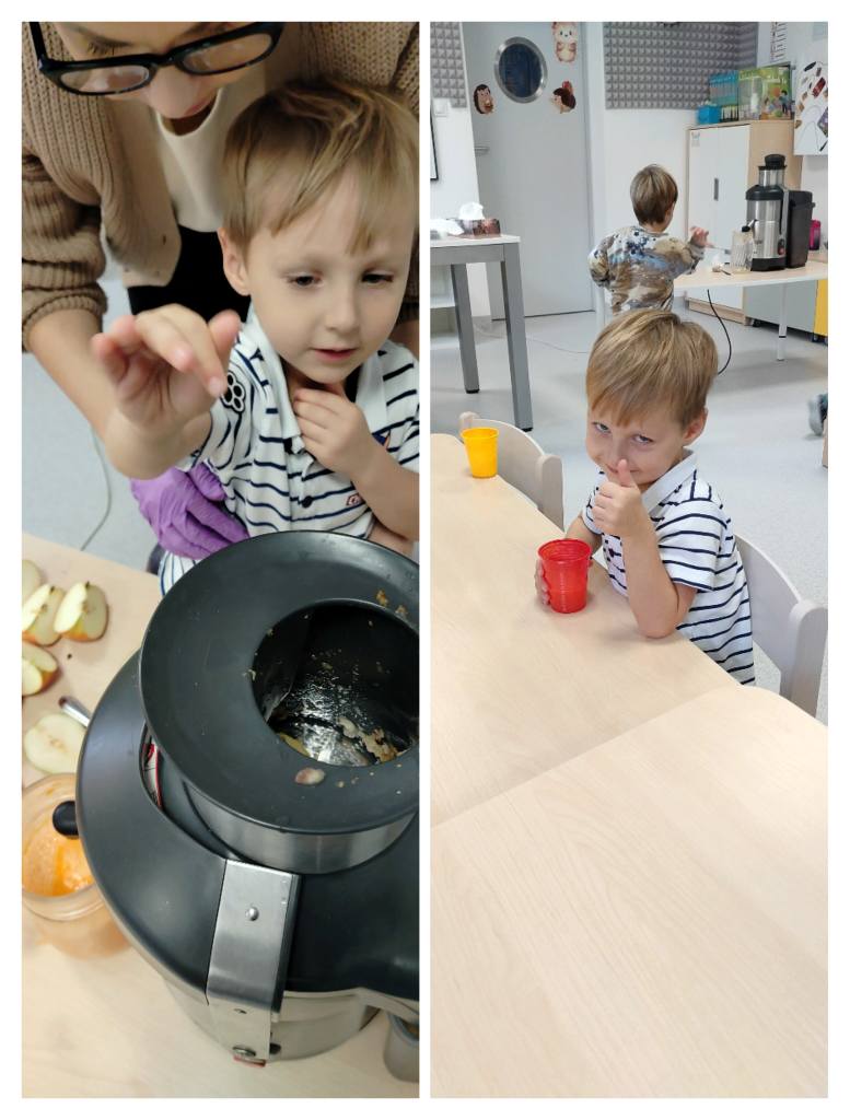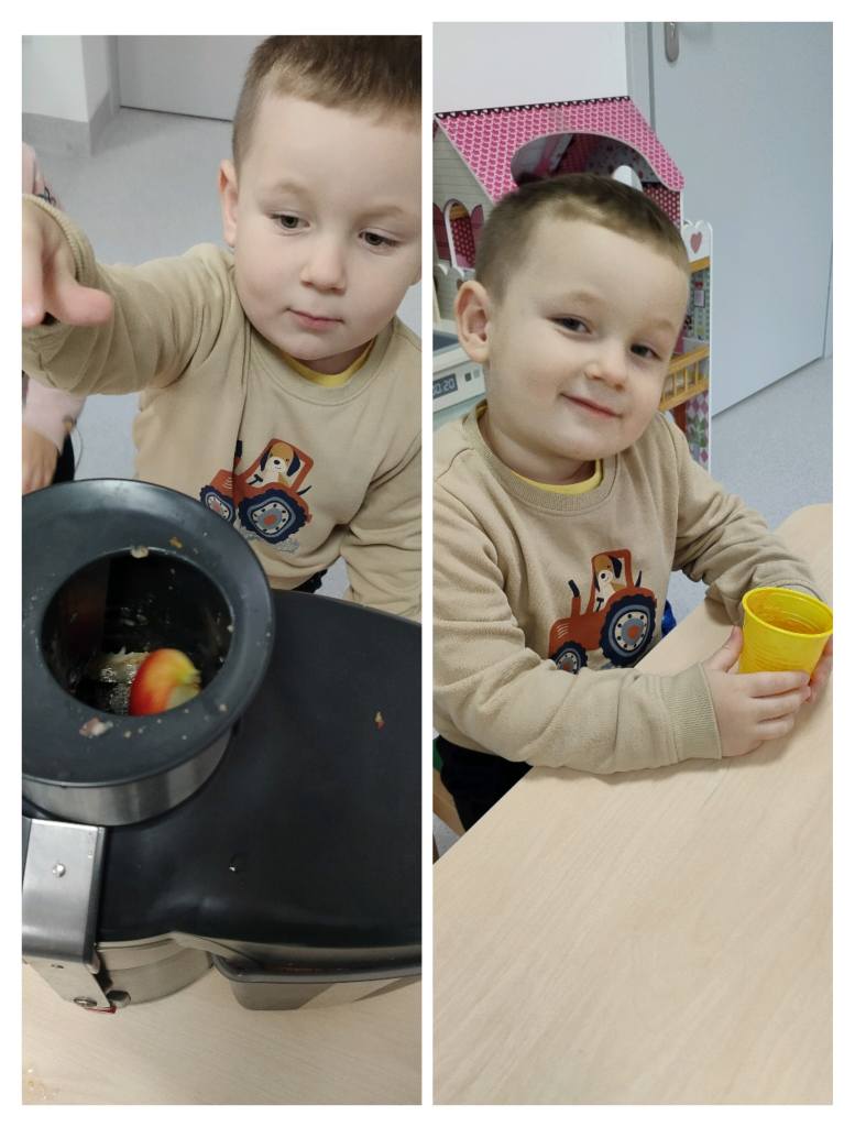 Przedszkolaki z grupy „Jeżyki” przygotowały podczas zajęć pyszny, zdrowy sok owocowy – pełen witamin, kolorów i uśmiechów!