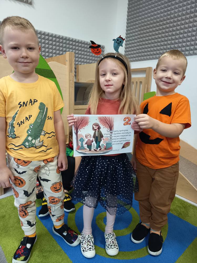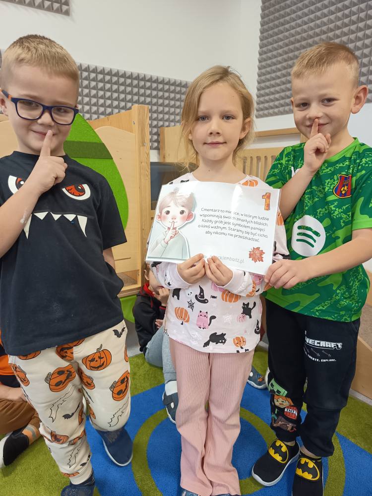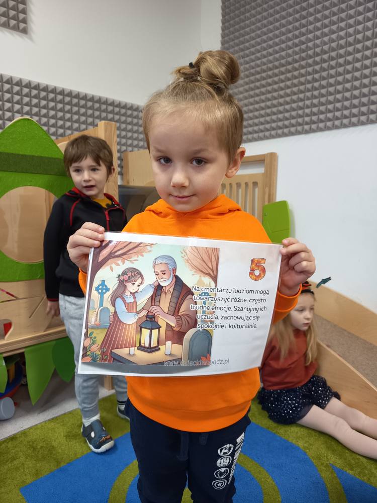 Ze wzgdędu na jutrzejsze święto, przedszkolaki w grupie Żabek utrwalały dzisiaj zasady zachowania na cmentarzu.
