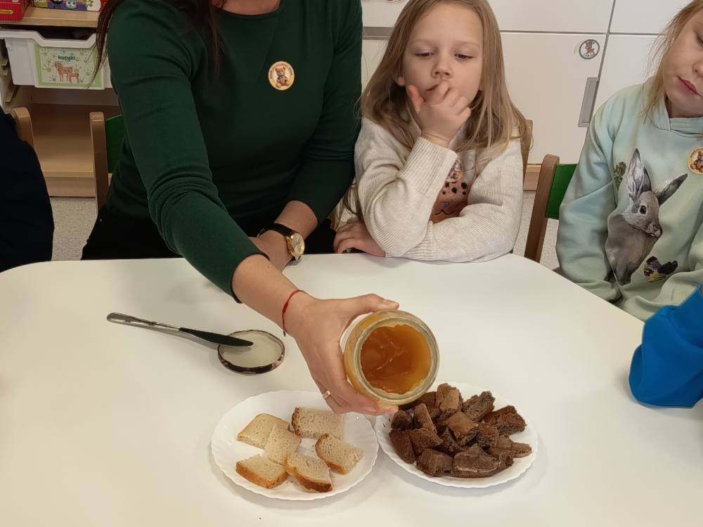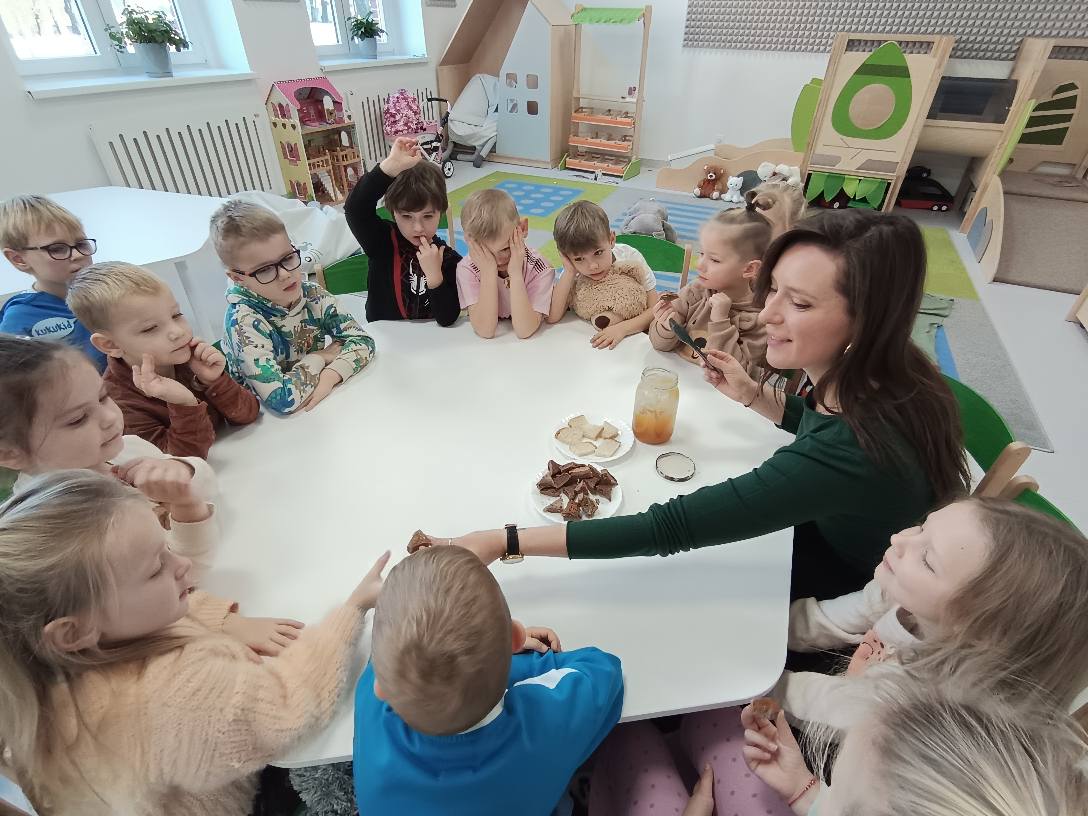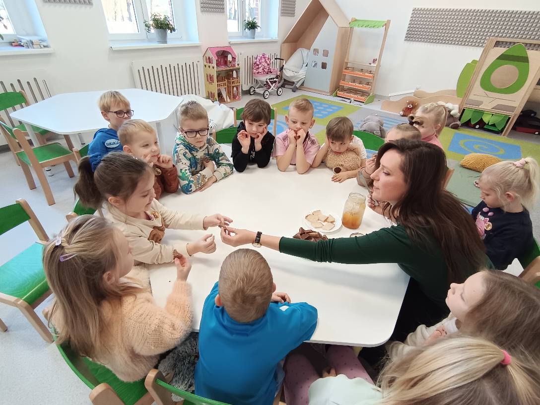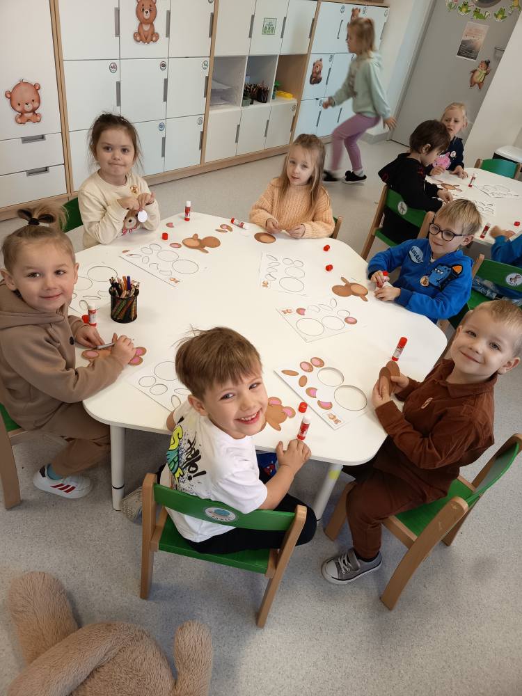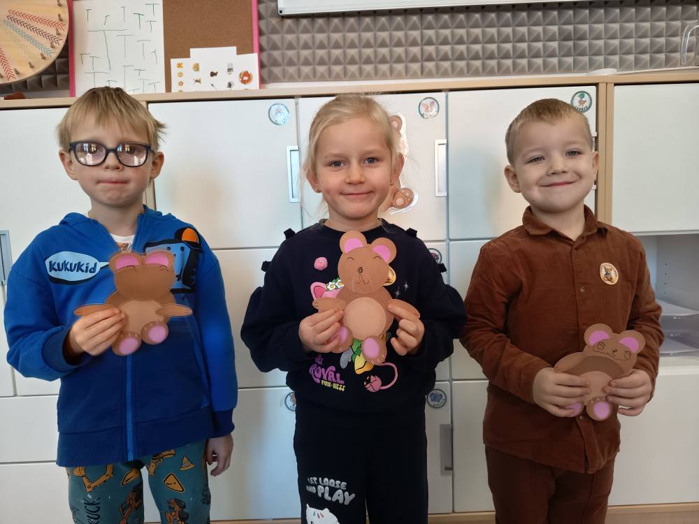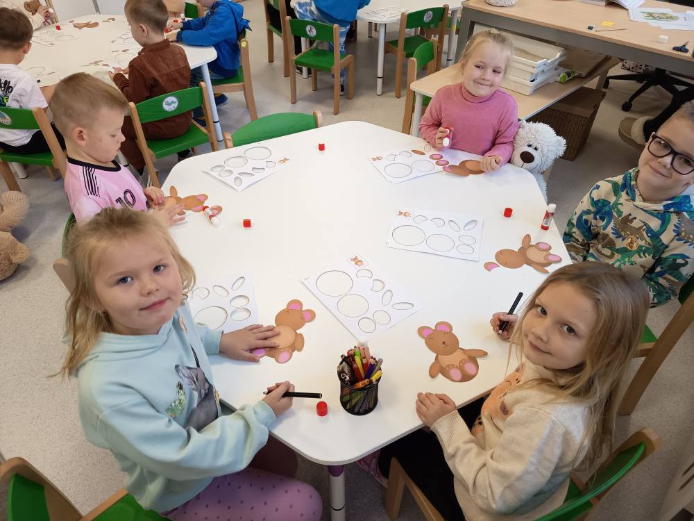 Dzisiaj Żabki rozpoczęły dzień od gimnastyki z Pluszowym Misiem, następnie czekały na nie zagadki obrazkowe ze sławnymi misiami. Po całej zabawie mały głodek zaspokoiły misiowym przysmakiem - miodkiem. Każde z dzieci otrzymało "Certyfikat Przyjaciela Pluszowego Misia". To był bardzo intensywny dzień z mnóstwem śmiechu.