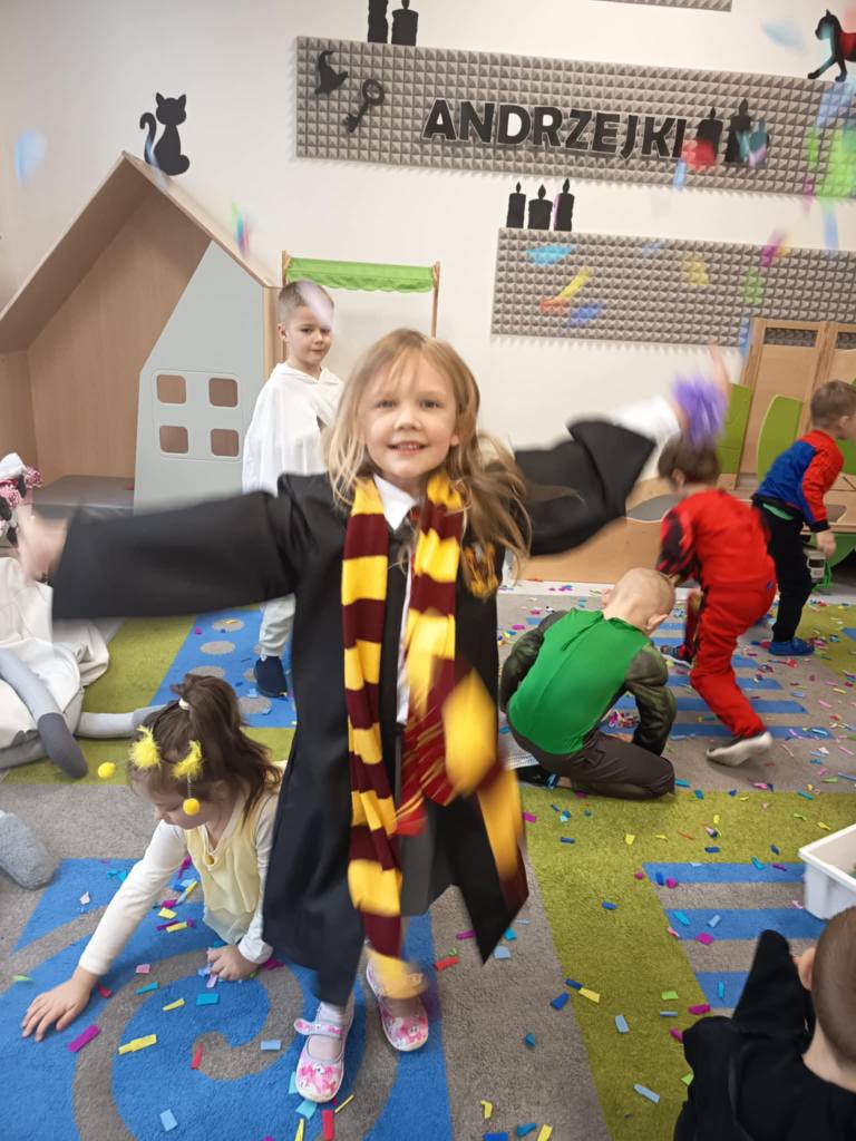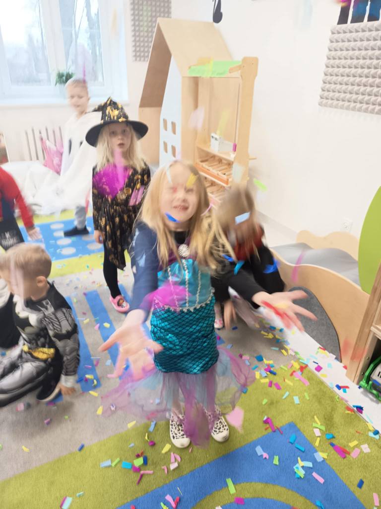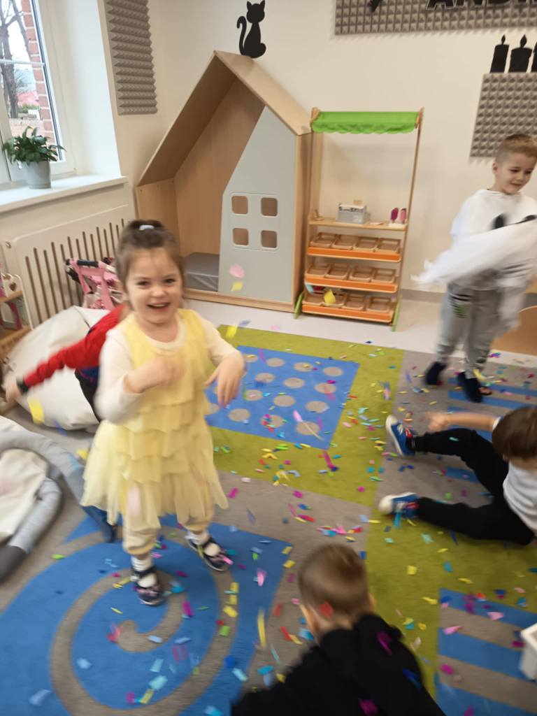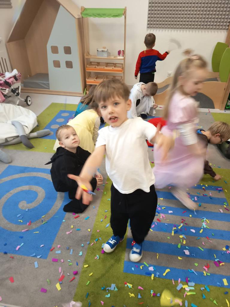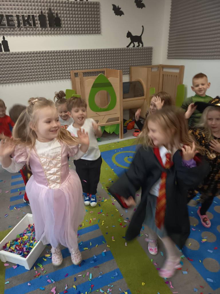 Dzisiaj dzieci z grupy Żabek przeniosły się w magiczny świat wróżb. Następnie muzyka porwała wszystkich do tańca, a bibułowe konfetti zapewniło świetną zabawę i wiele radości.