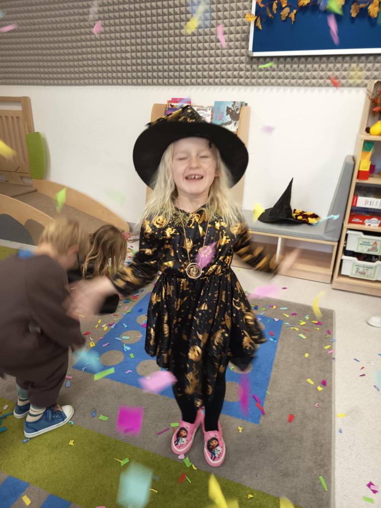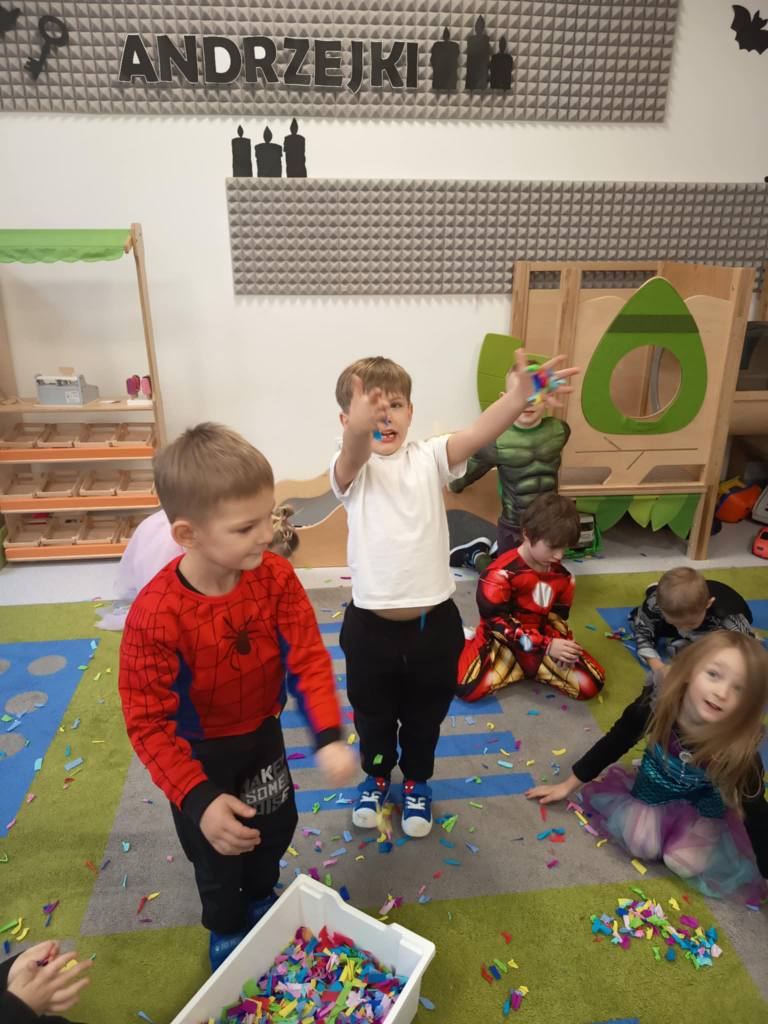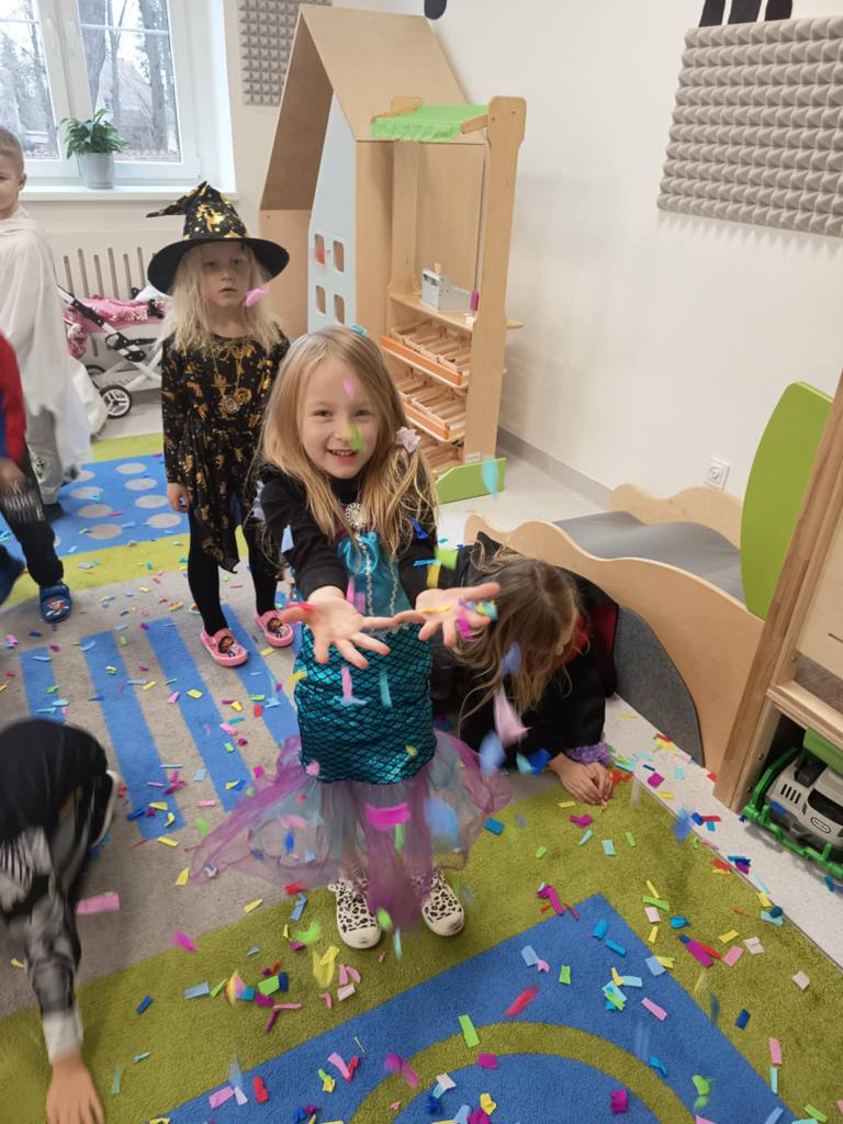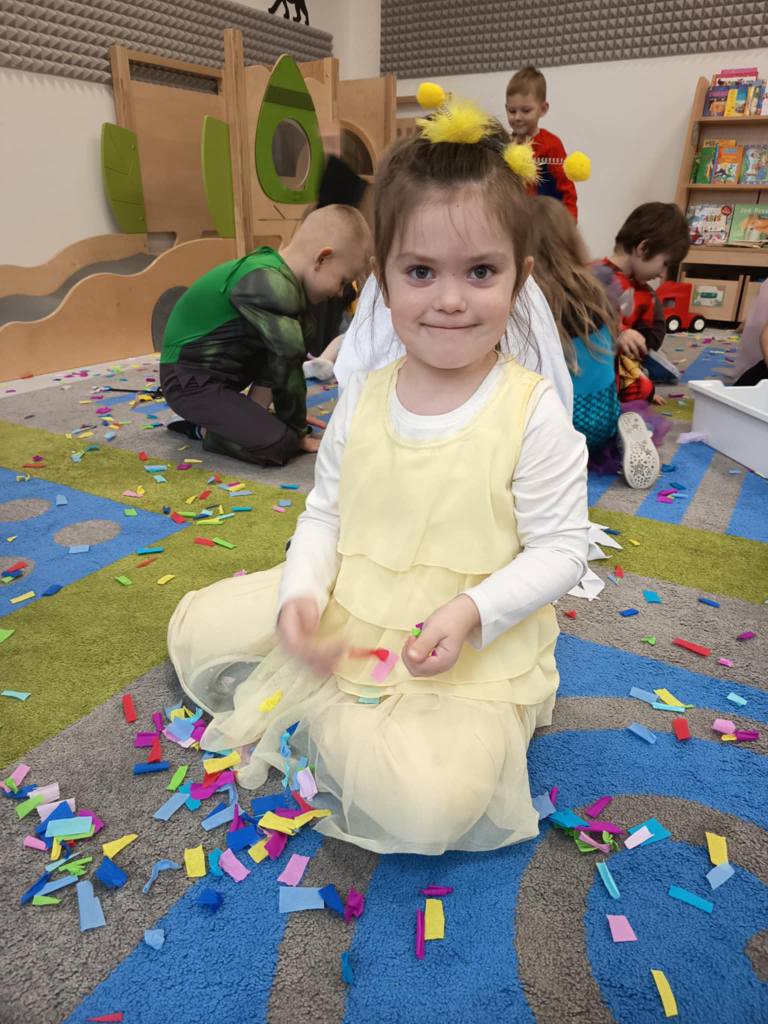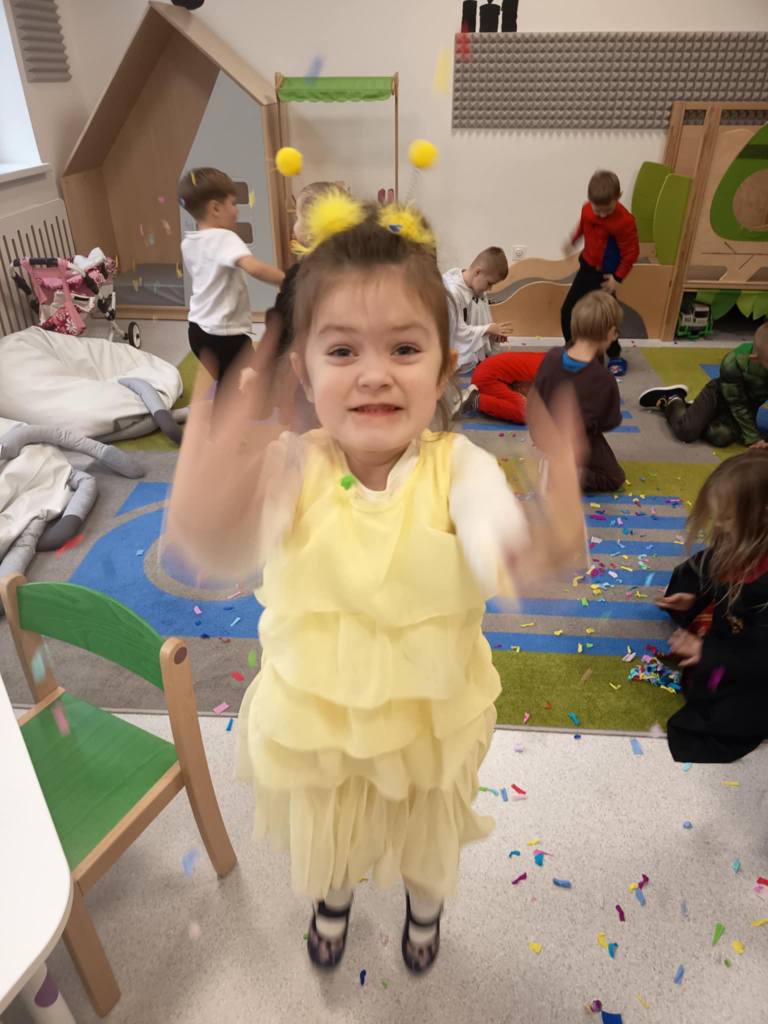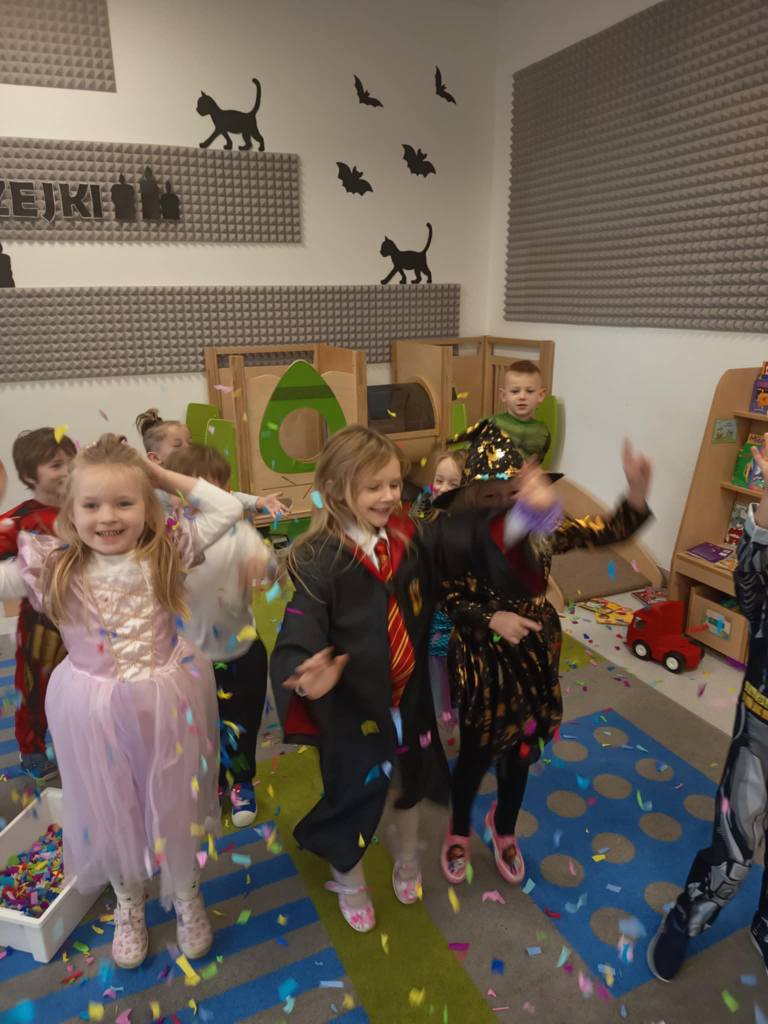 Dzisiaj dzieci z grupy Żabek przeniosły się w magiczny świat wróżb. Następnie muzyka porwała wszystkich do tańca, a bibułowe konfetti zapewniło świetną zabawę i wiele radości.