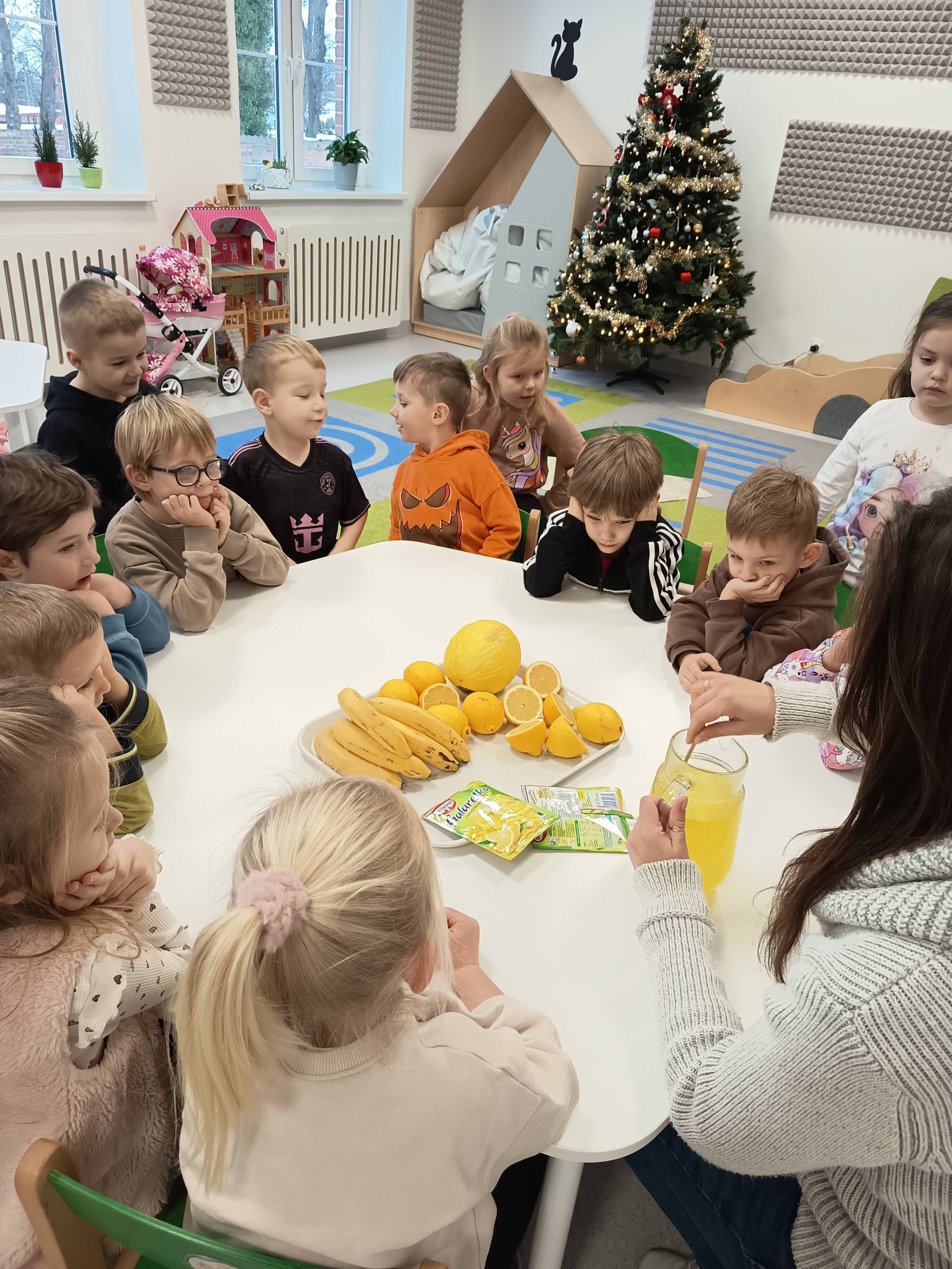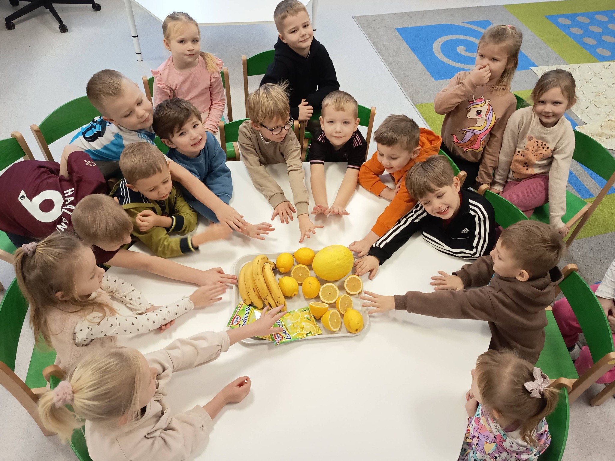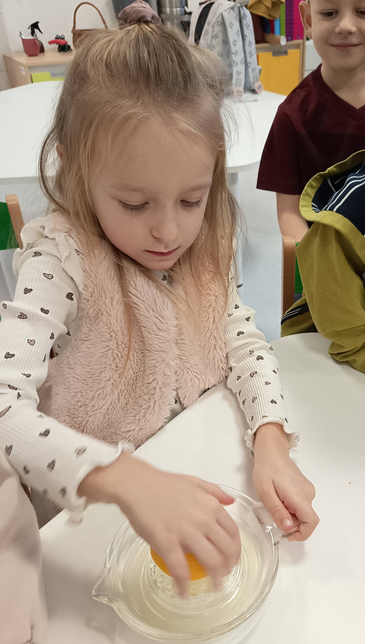 🍋Kwaśne minki od cytrynki🍋. Dzisiaj dzieci z grupy Żabek sensorycznie badały kolor żółty 💛. Węchem porównywały zapach żółtych owoców, wspólnie zrobiłyśmy galaretkę cytrynową oraz pyszną lemoniadę🍋! Każde z dzieci wyciskało sok, co okazało się ciężka pracą. Kolor żółty pięknie pachniał👃🏻, bardzo nam smakował👅 i miał ciekawą teksturę🖐🏻😉