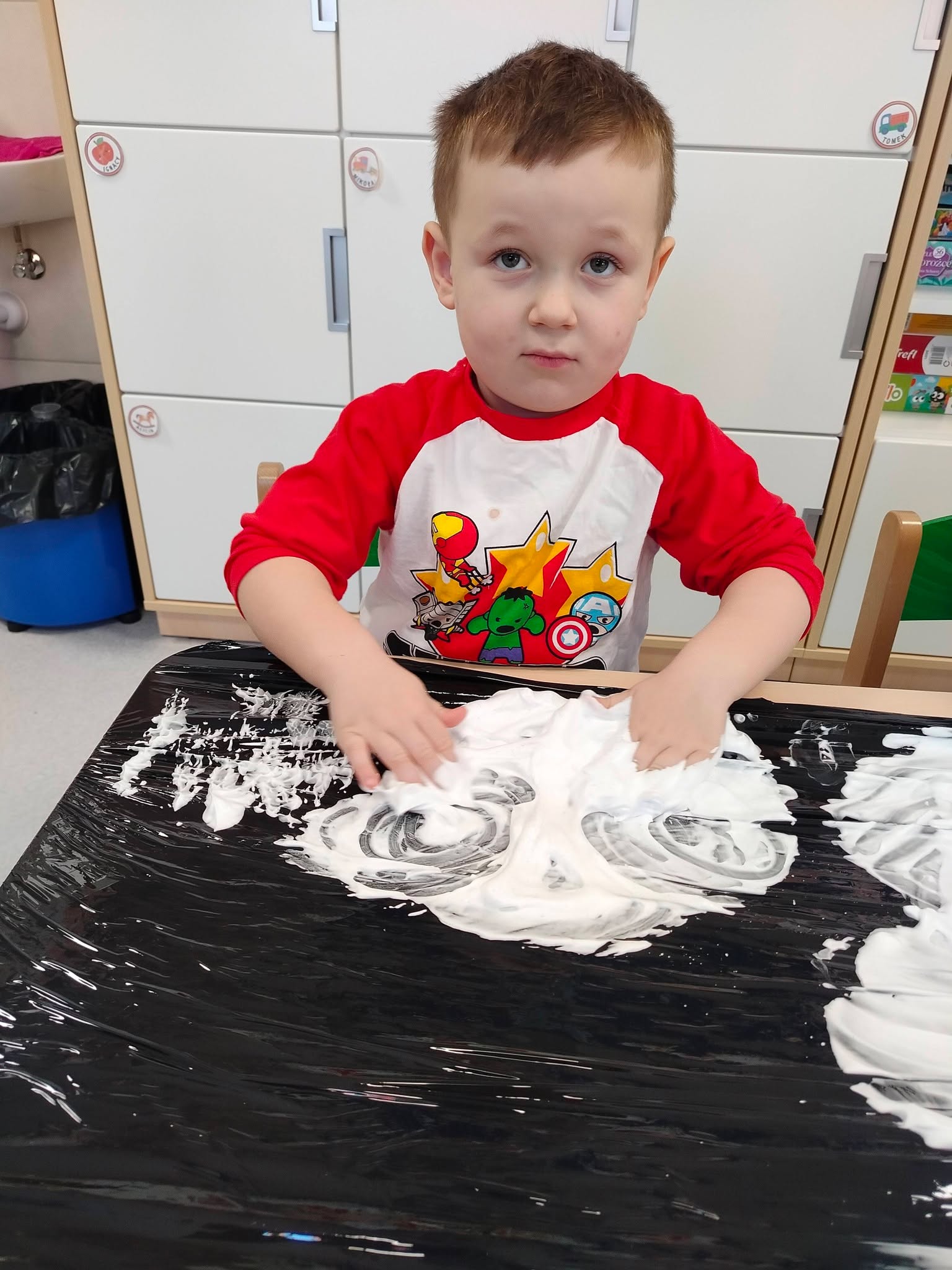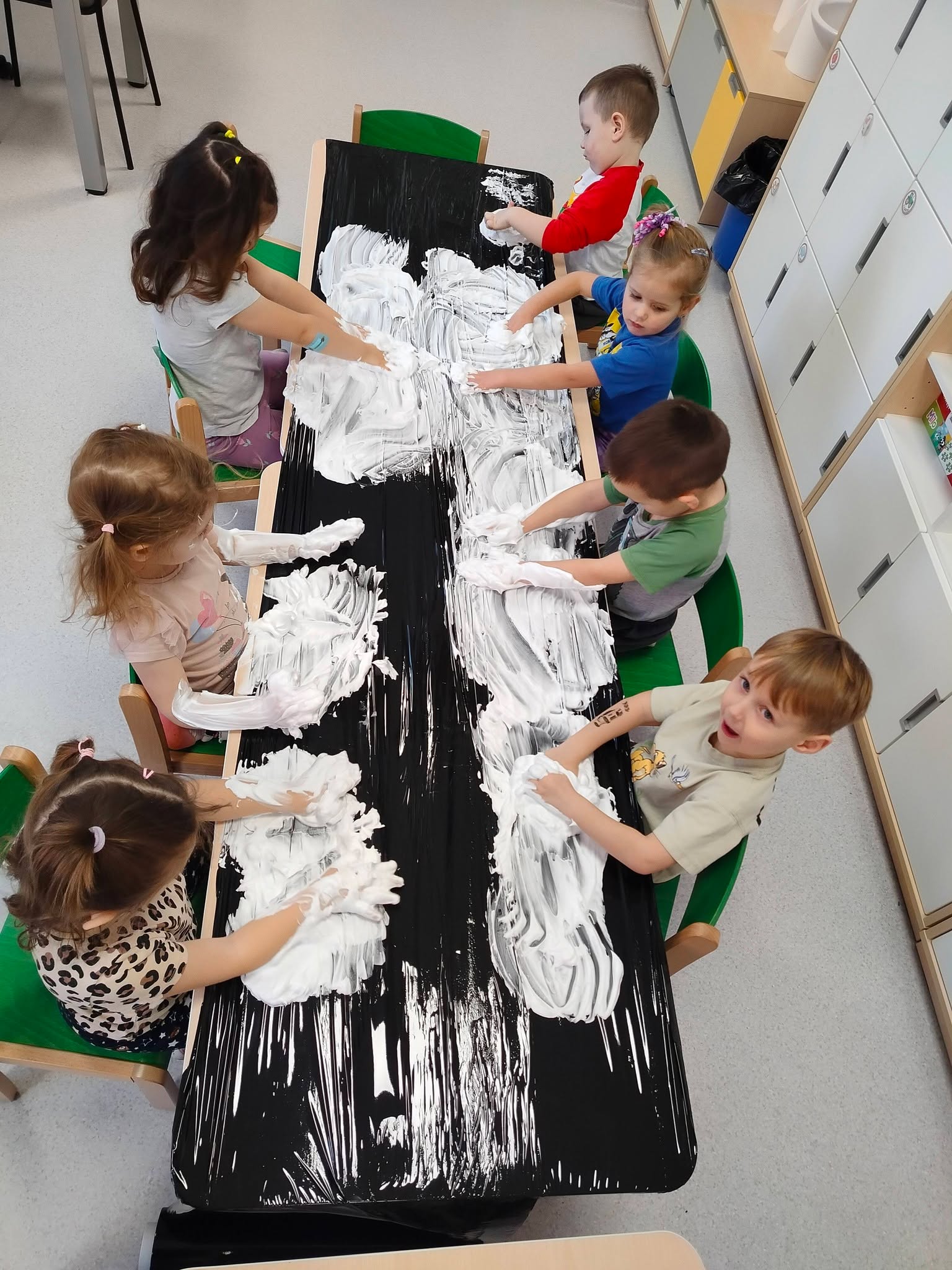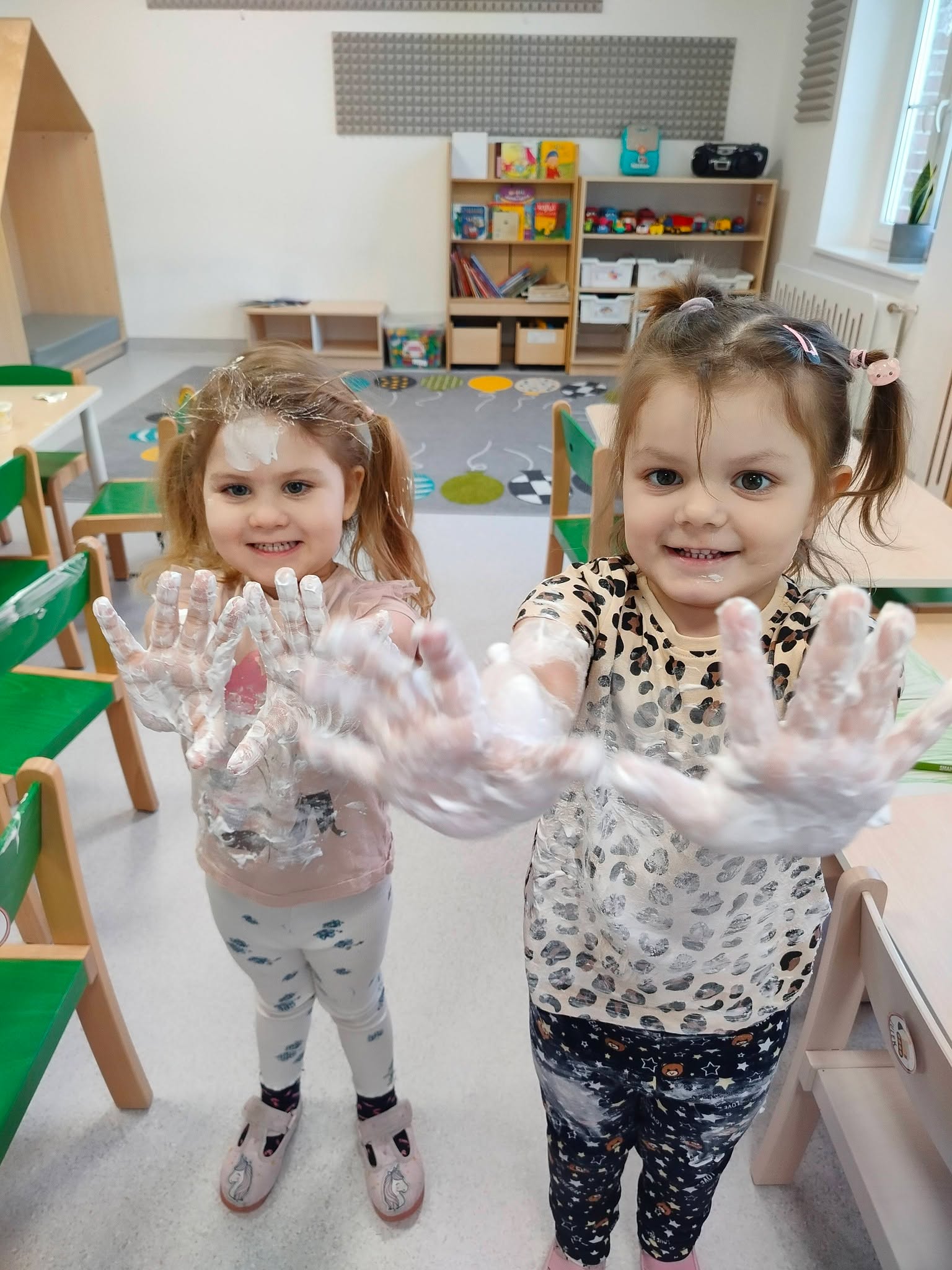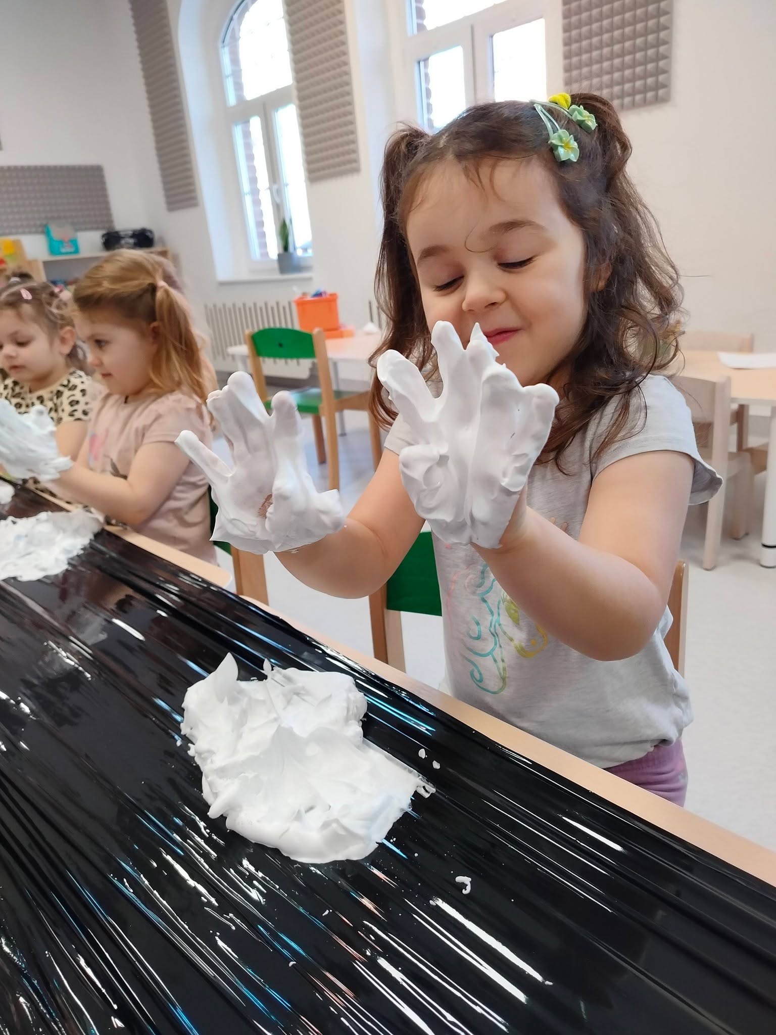 Dziś było sensorycznie i zimowo ❄️😄 Najpierw piankowe szaleństwo w sali – mazanie, ugniatanie i mnóstwo śmiechu, a potem wyjście na śnieg 🤩🌨️❄️
