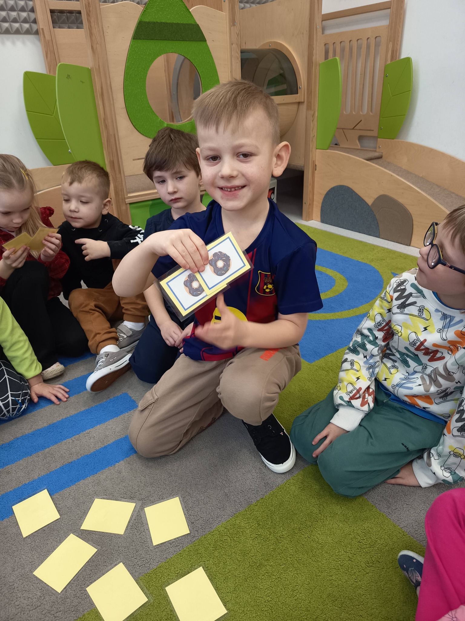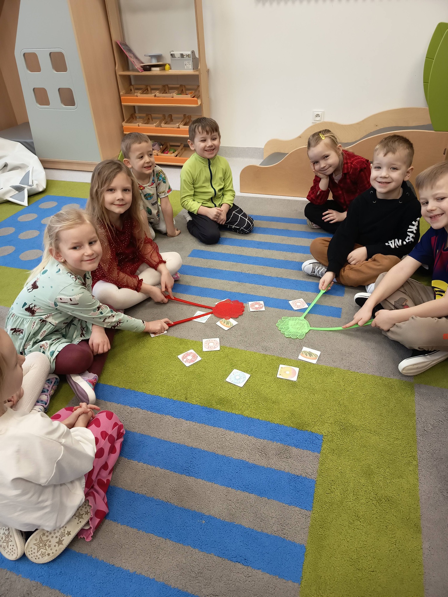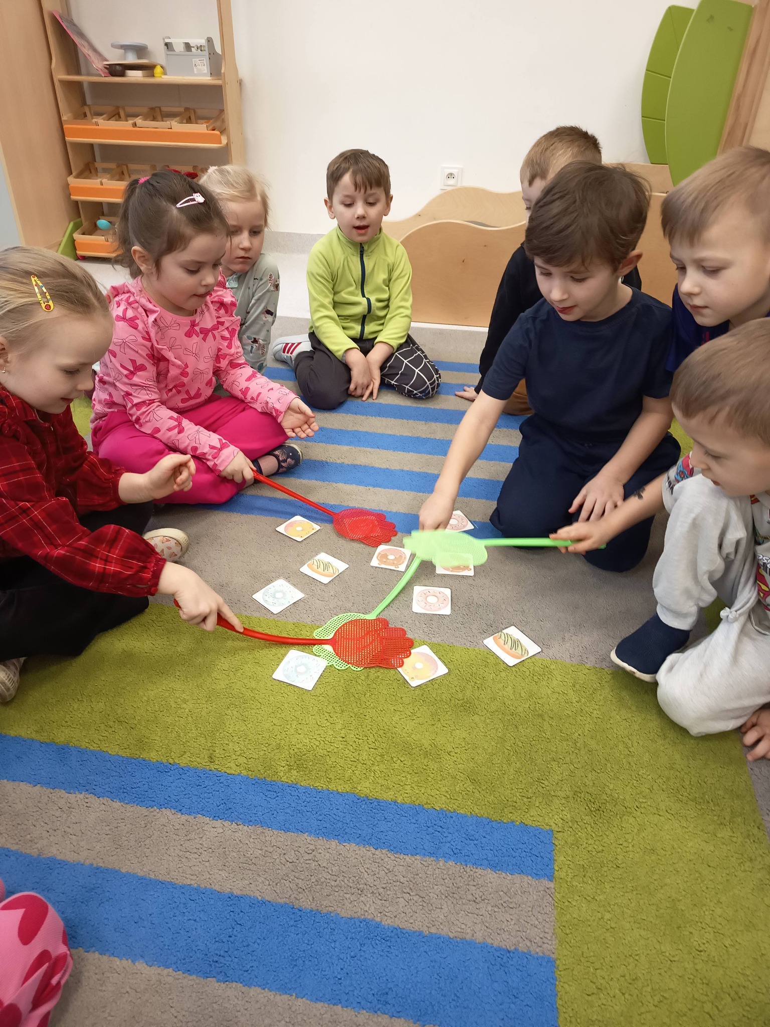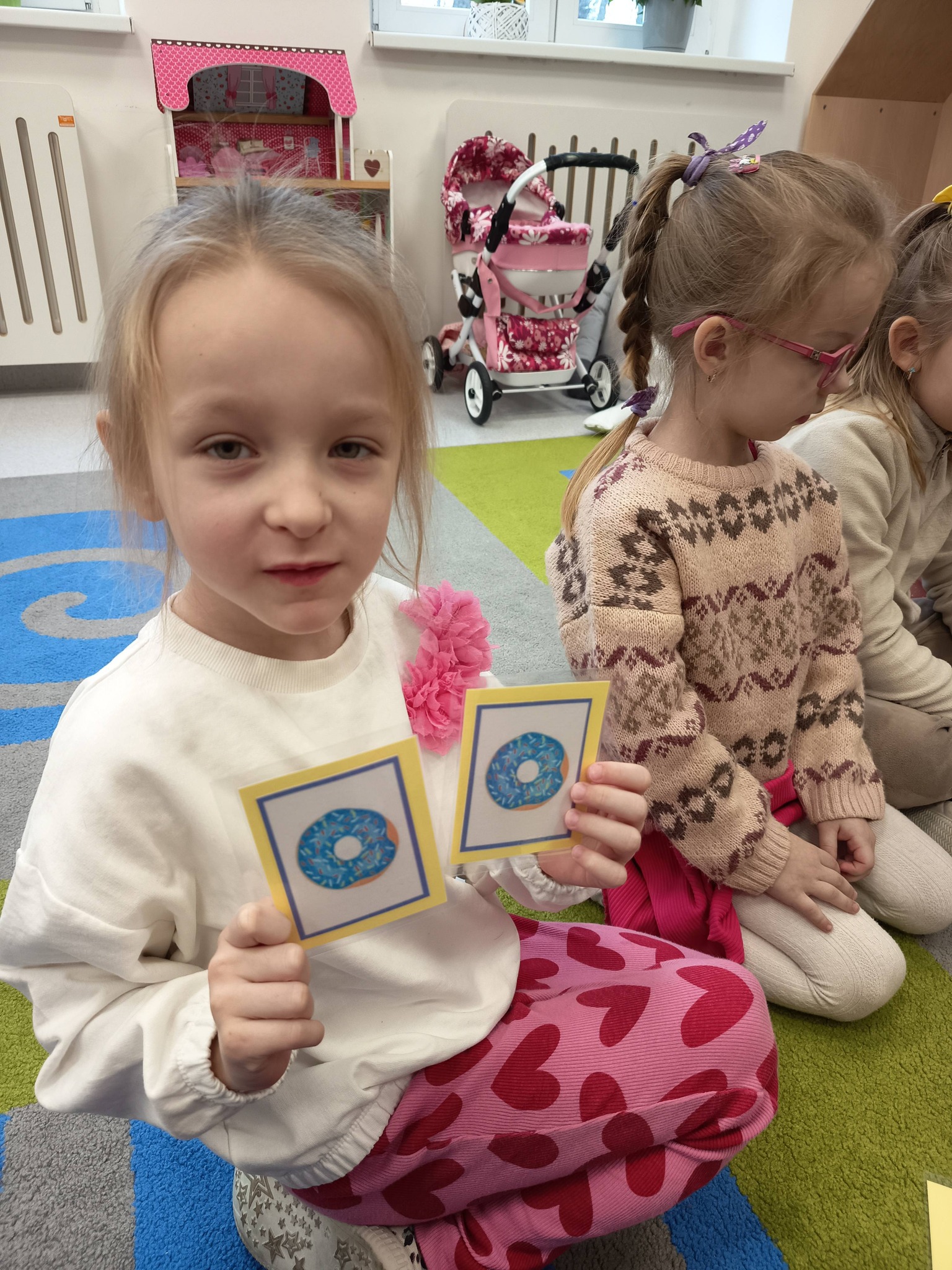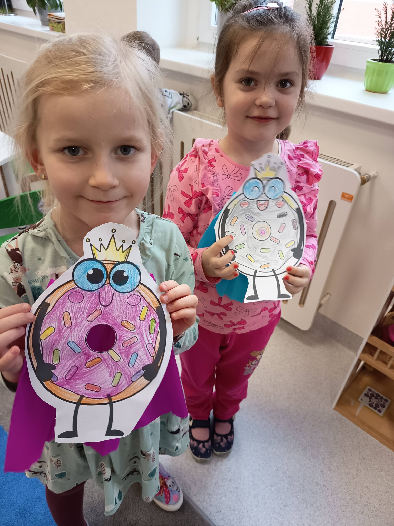 Nie zabrakło także działań twórczych – mali artyści wykonali pracę plastyczną „Jego Wysokość Pączek”, a następnie z entuzjazmem uczestniczyli w tematycznych grach dydaktycznych 🎨🎲