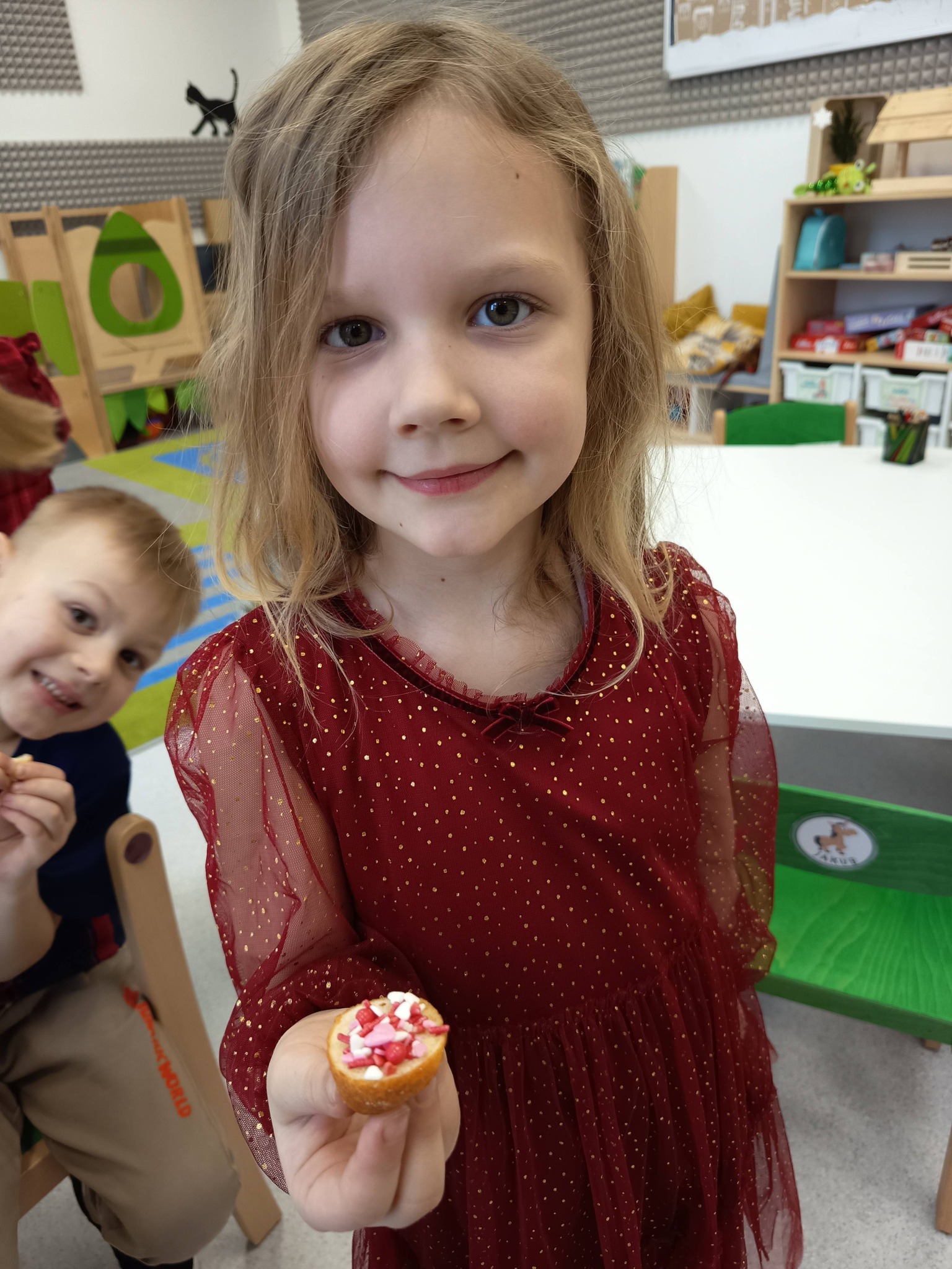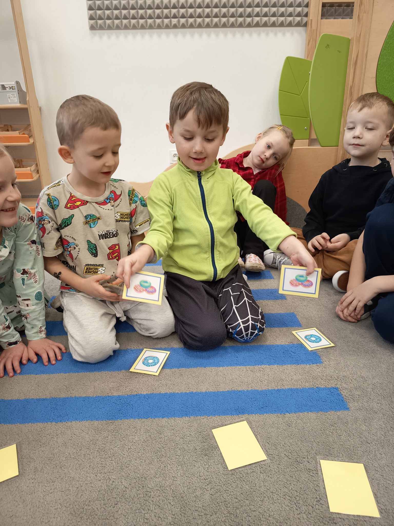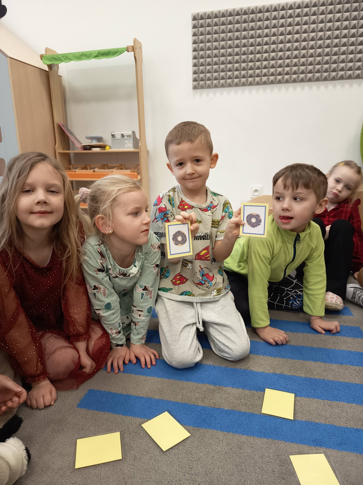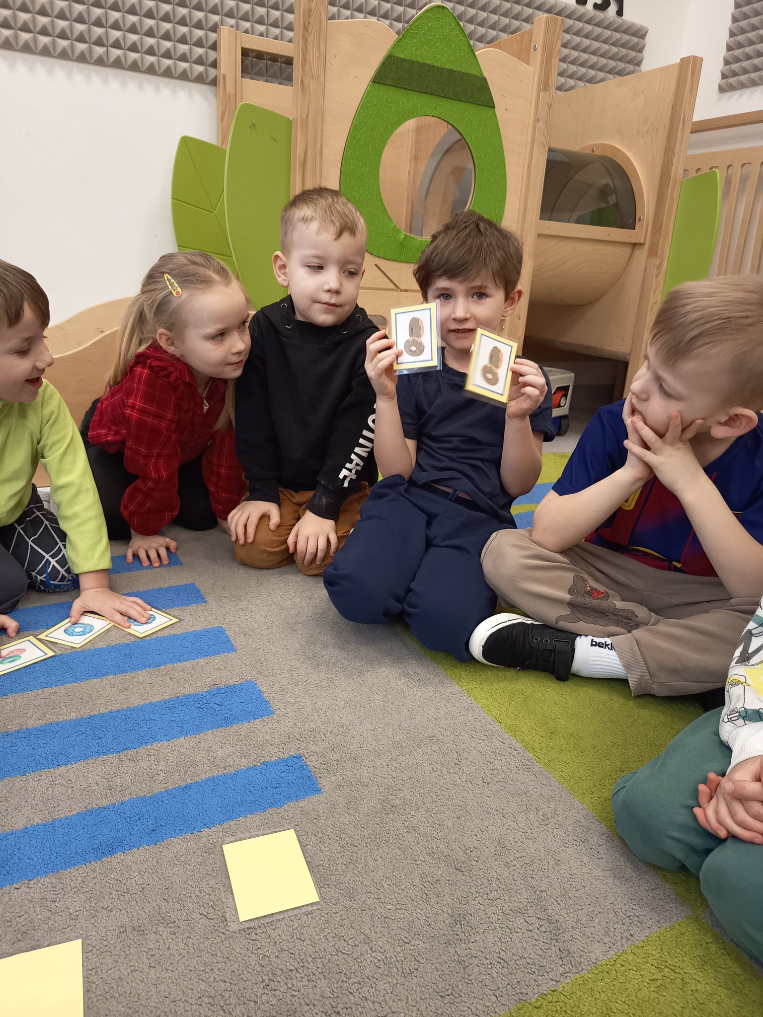 Nie zabrakło także działań twórczych – mali artyści wykonali pracę plastyczną „Jego Wysokość Pączek”, a następnie z entuzjazmem uczestniczyli w tematycznych grach dydaktycznych 🎨🎲