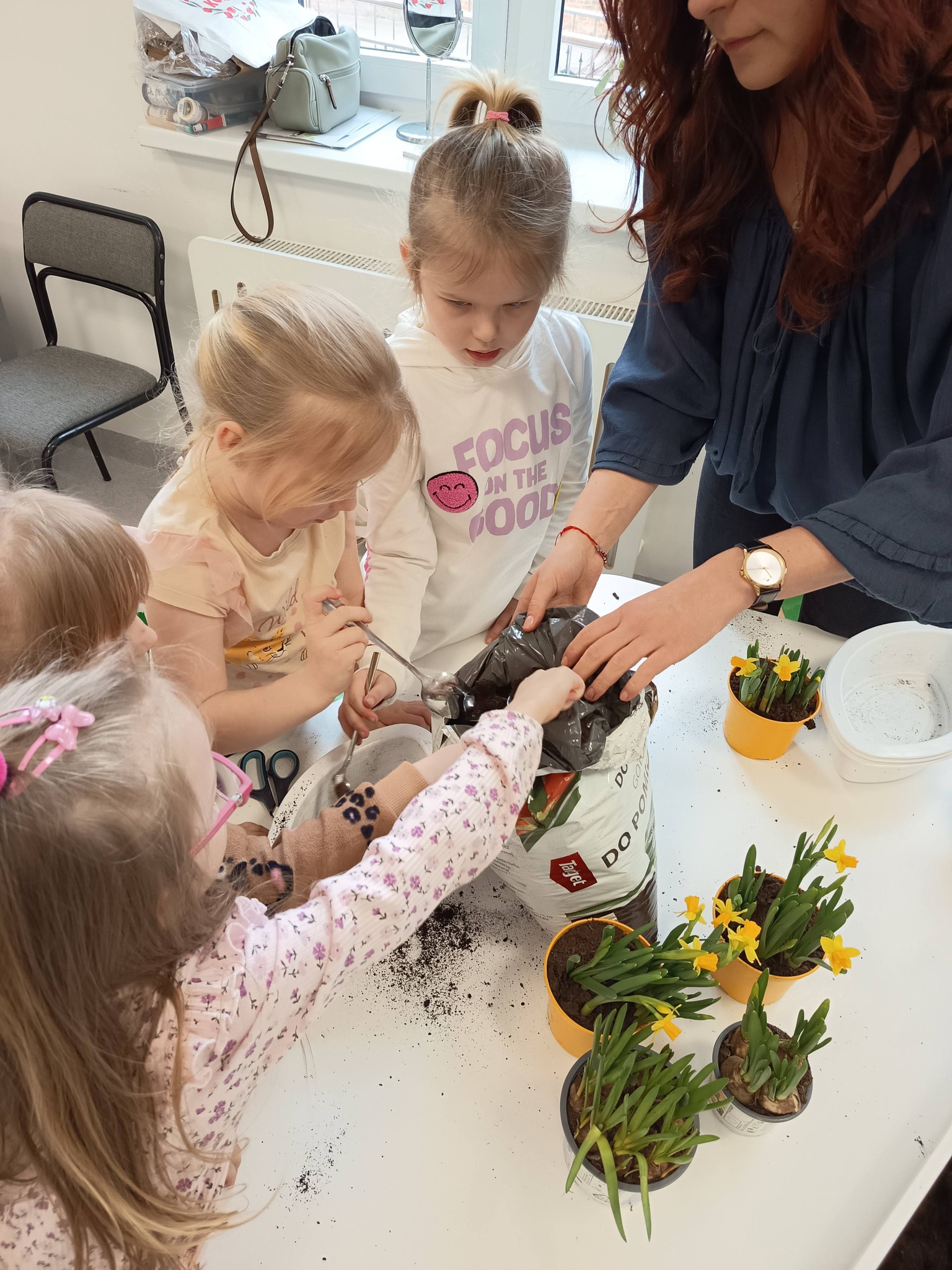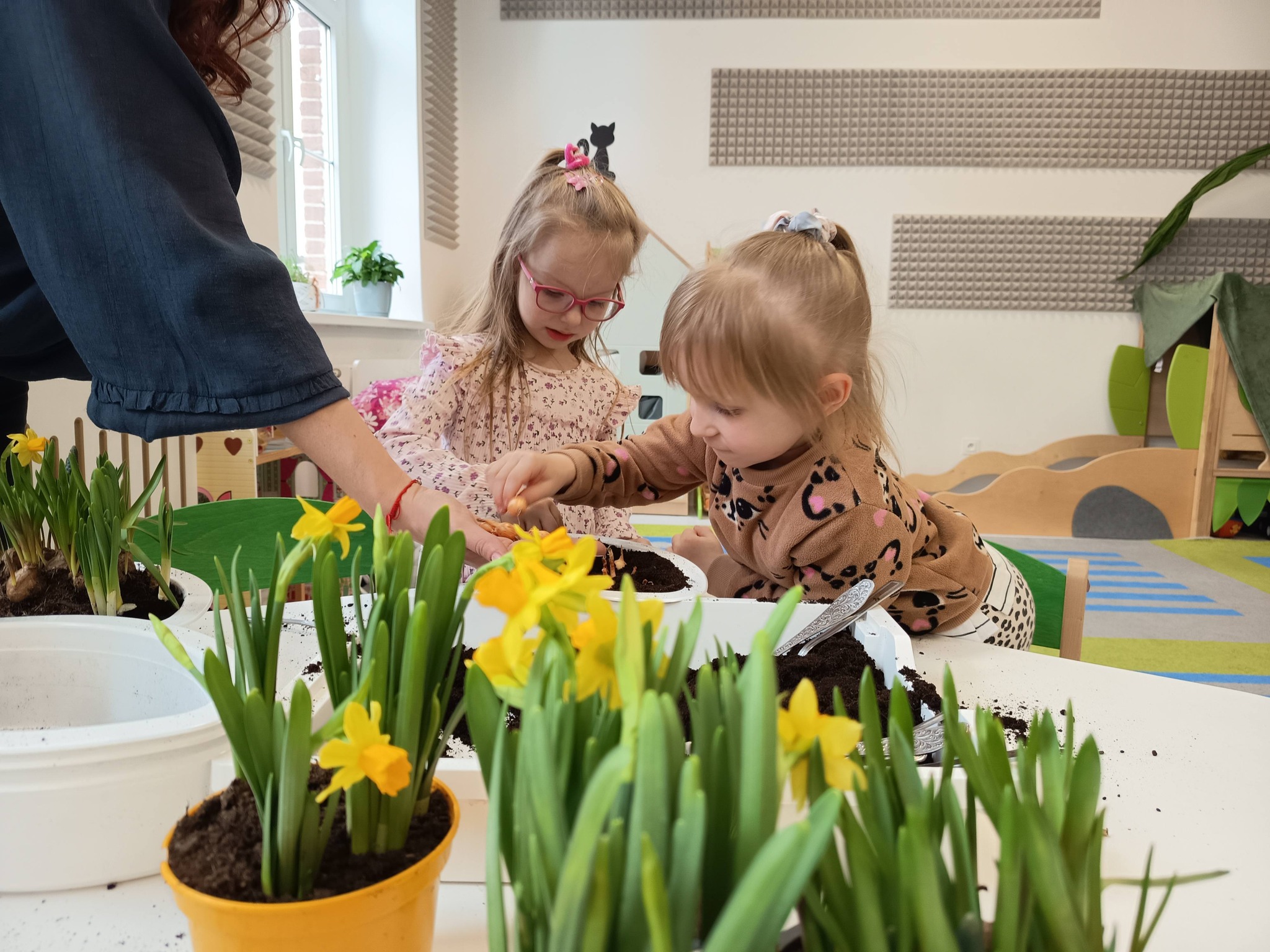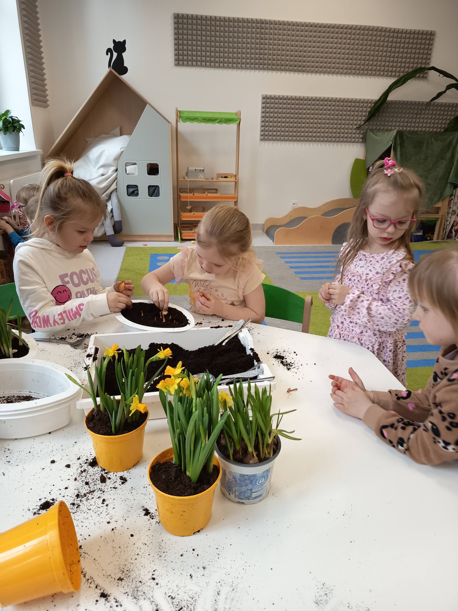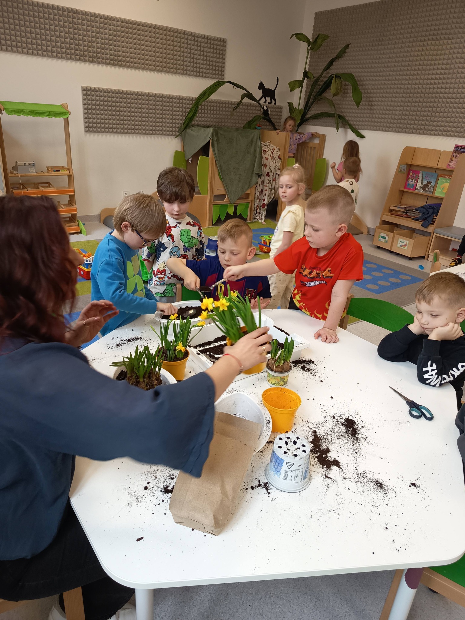 Nasze przedszkolaki z grupy Żabki zamieniły się dziś w małych ogrodników! 🌼 Dzieci z wielkim zaangażowaniem sadziły wiosenne kwiatki do doniczek. Było dużo radości, ziemi na rączkach i uśmiechów na twarzach. 😊