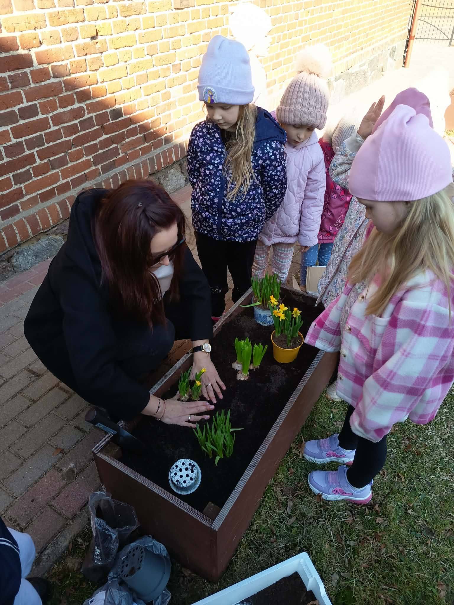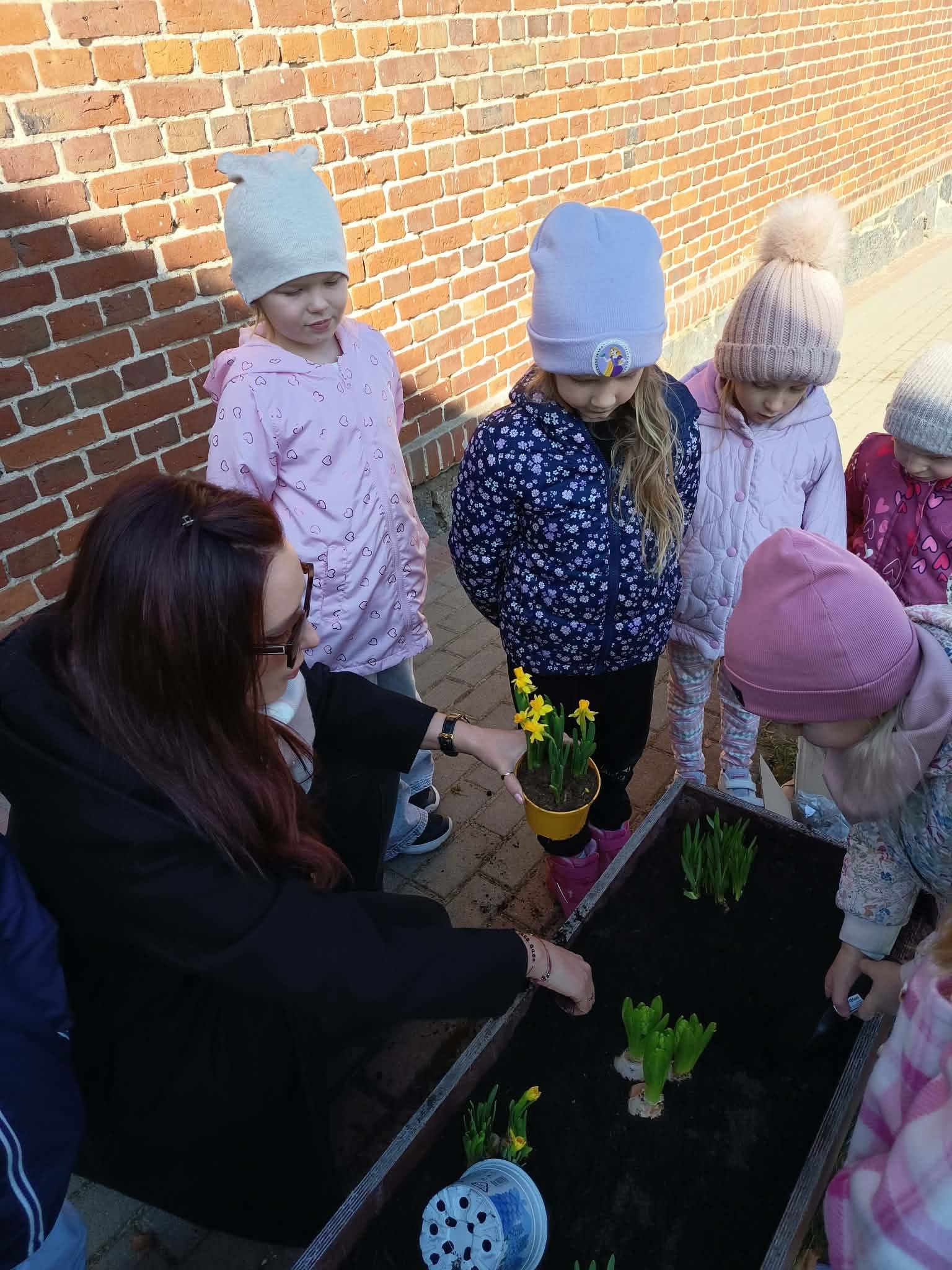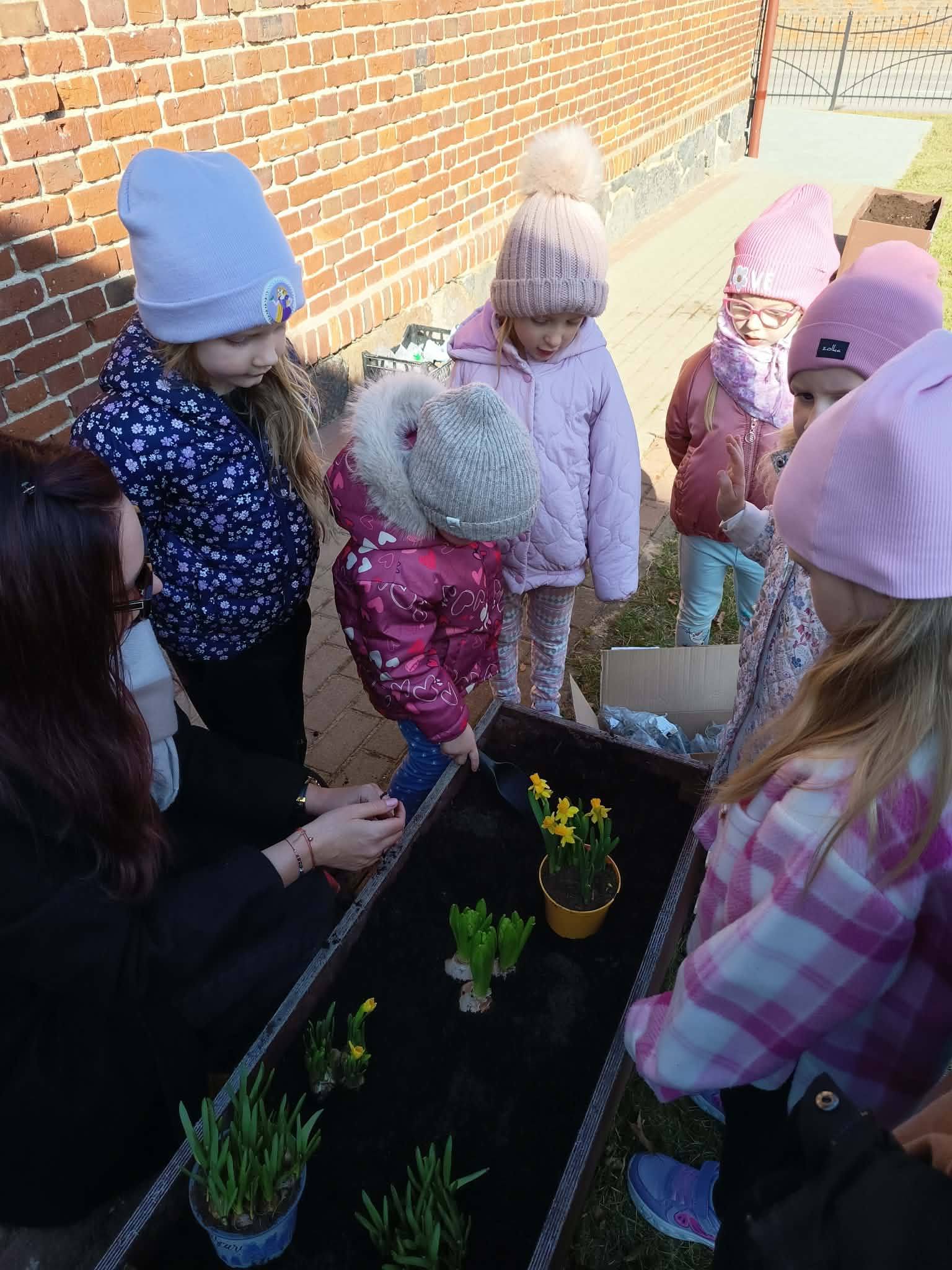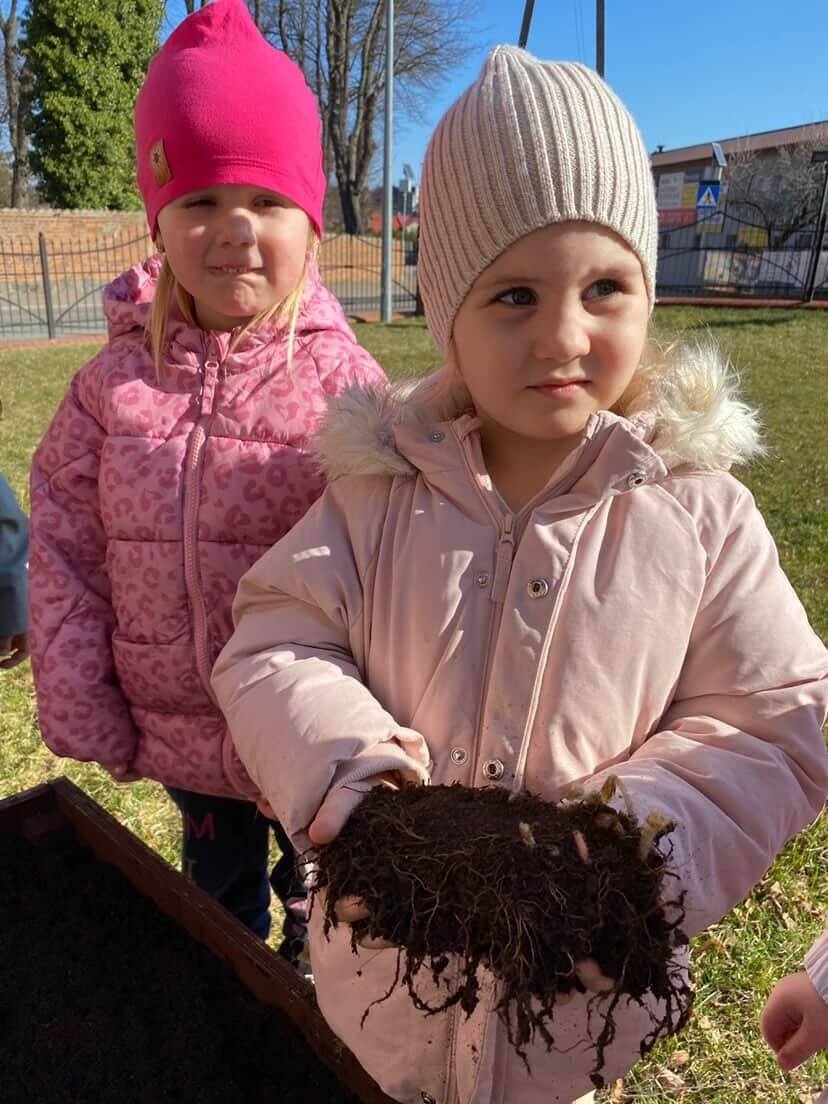 Z wielkim zaangażowaniem zasadziły cebulki kwiatów oraz piękne kwiaty, ucząc się przy tym troski o przyrodę i współpracy 🌿💚