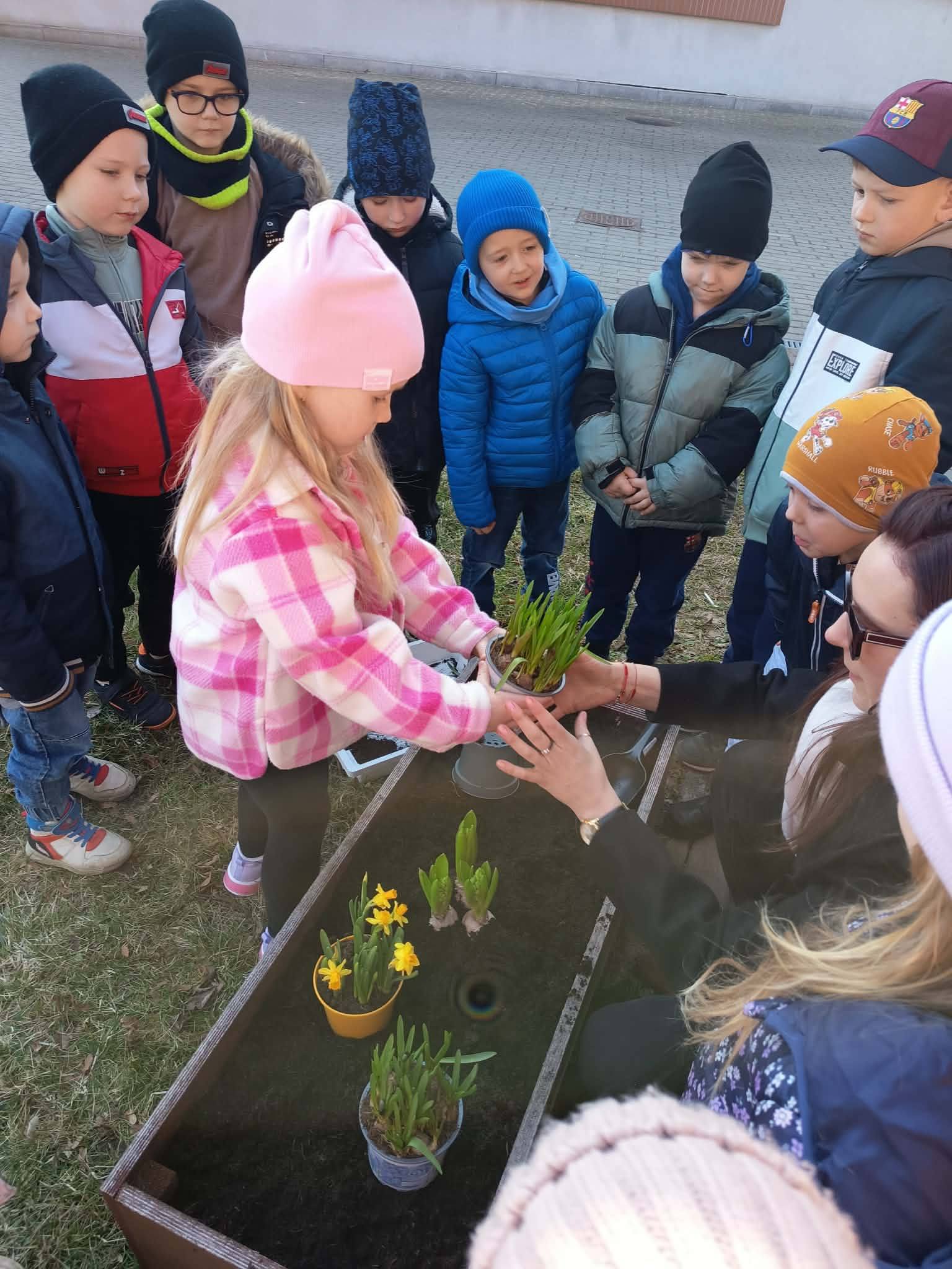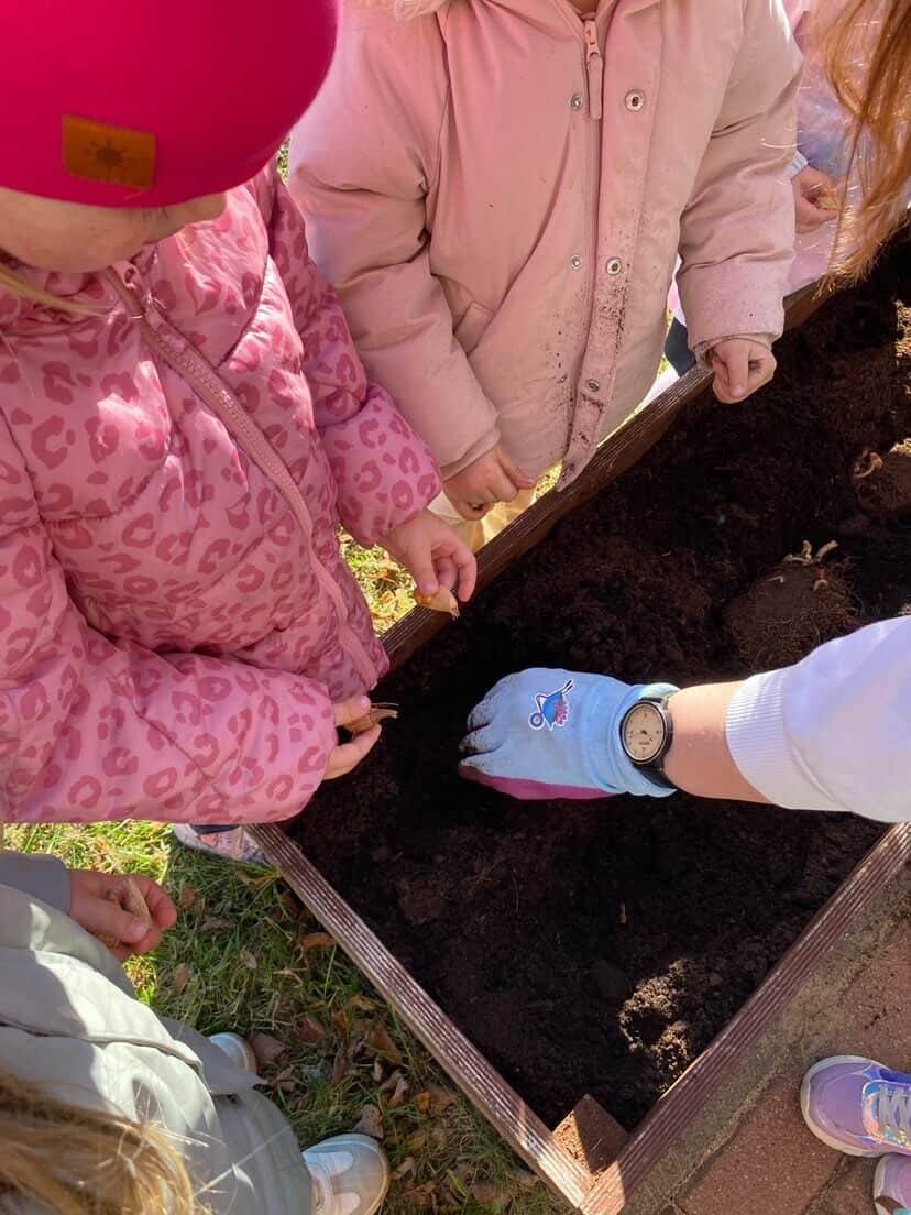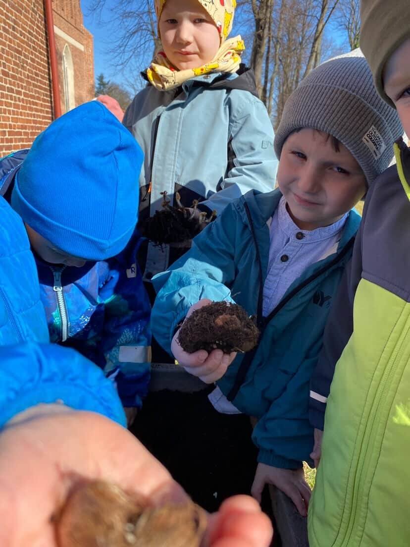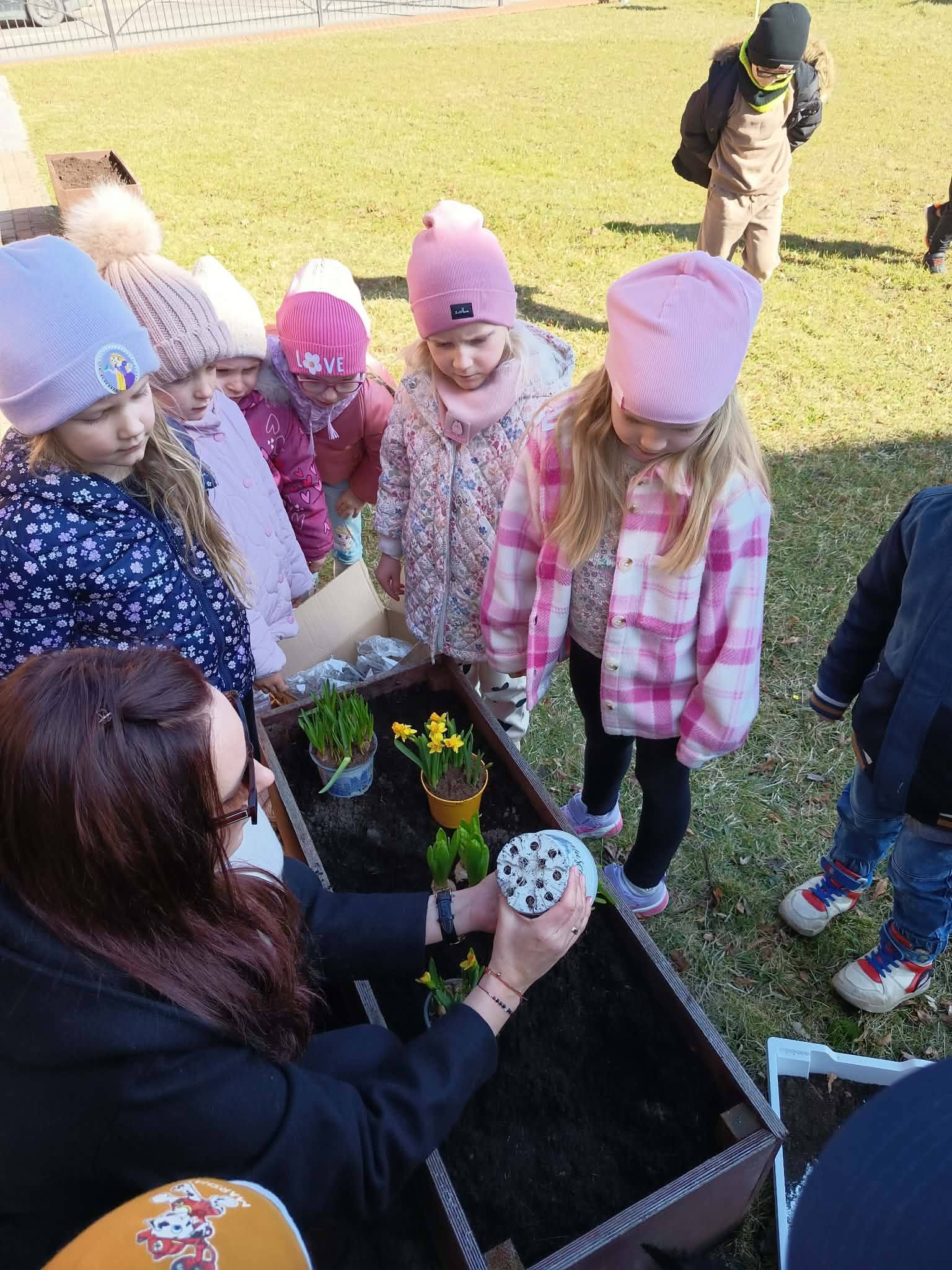 Z wielkim zaangażowaniem zasadziły cebulki kwiatów oraz piękne kwiaty, ucząc się przy tym troski o przyrodę i współpracy 🌿💚