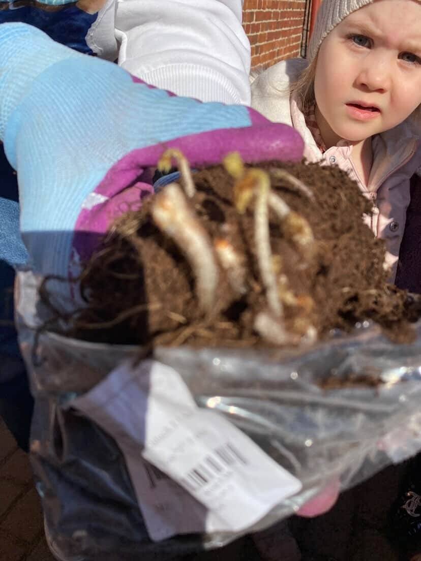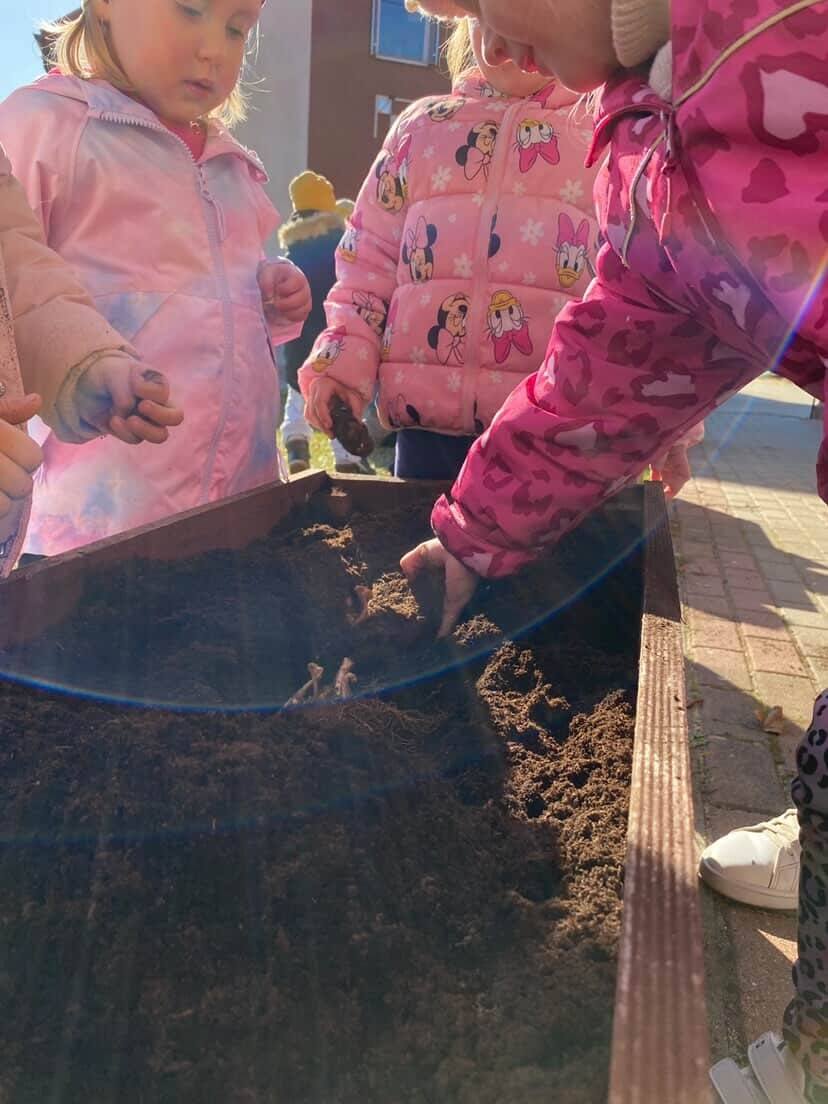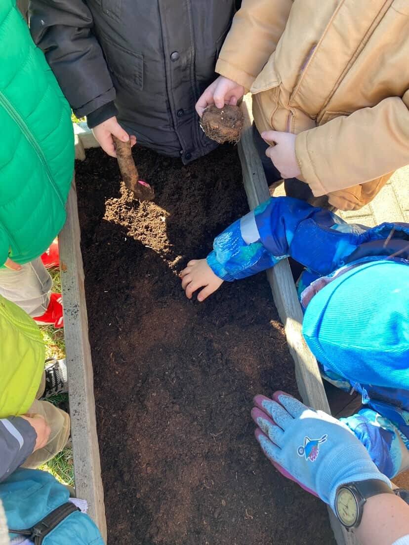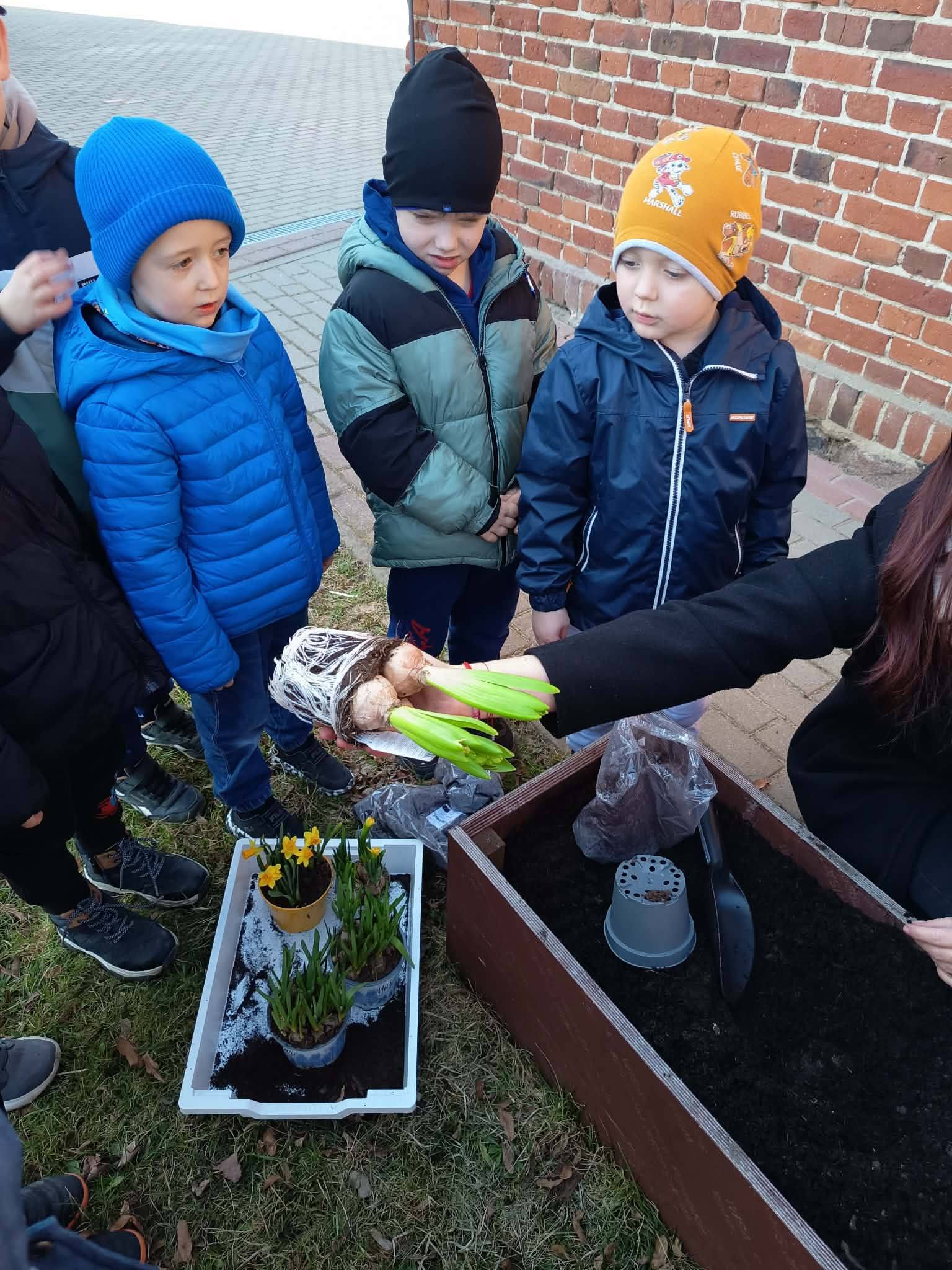 Z wielkim zaangażowaniem zasadziły cebulki kwiatów oraz piękne kwiaty, ucząc się przy tym troski o przyrodę i współpracy 🌿💚