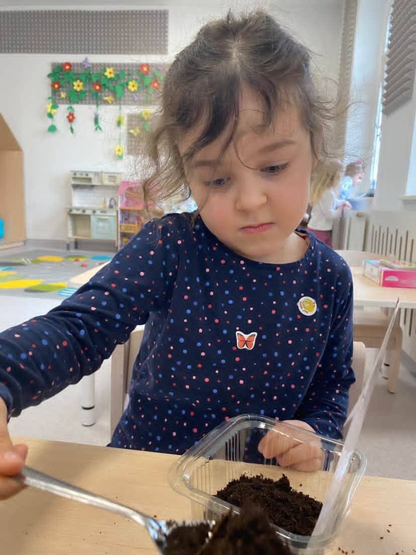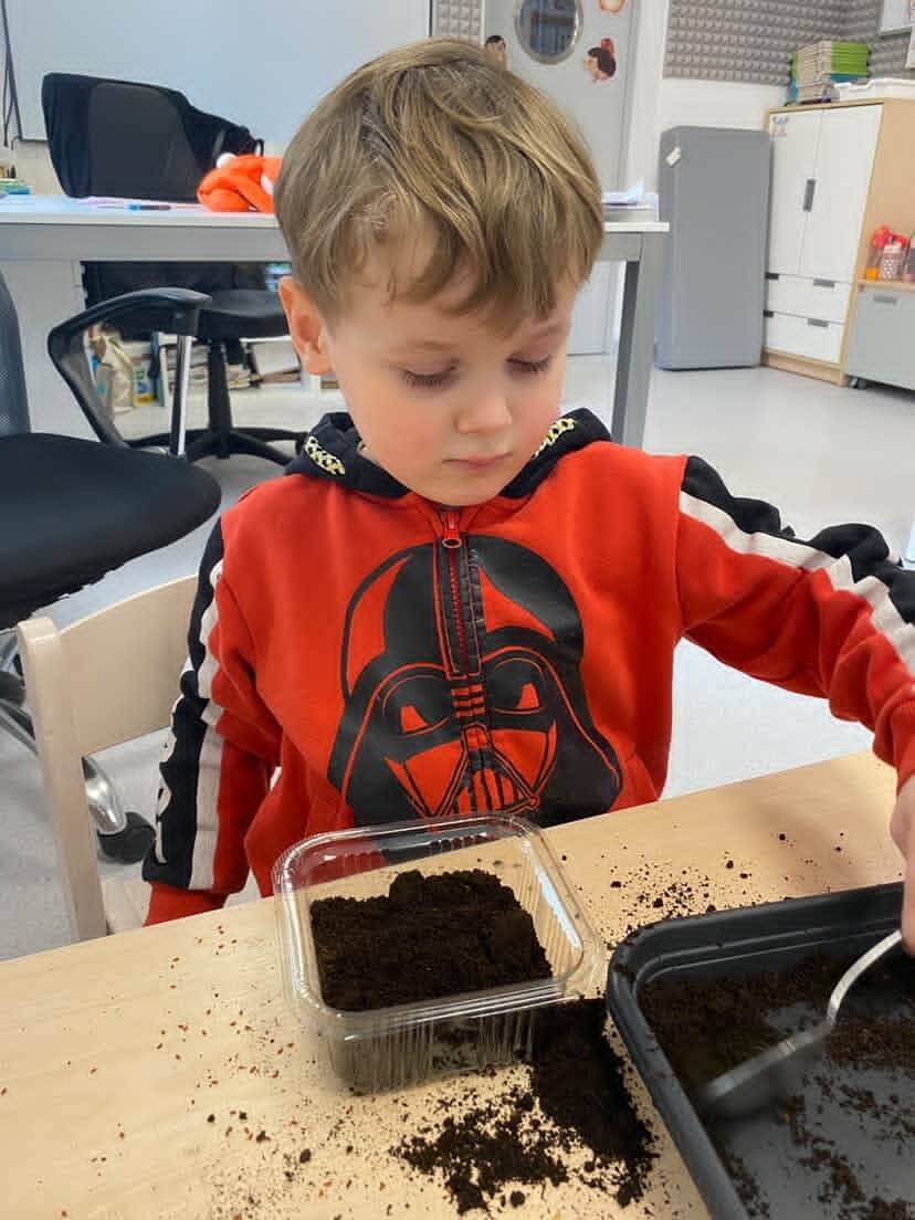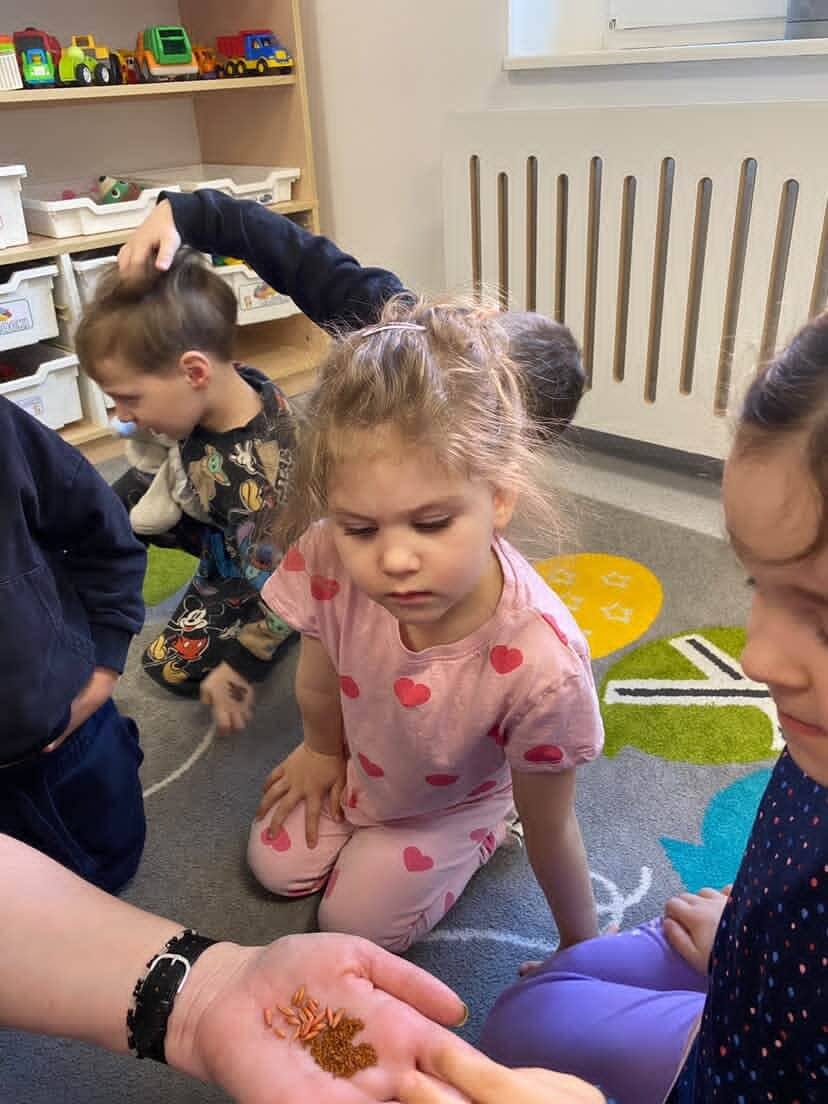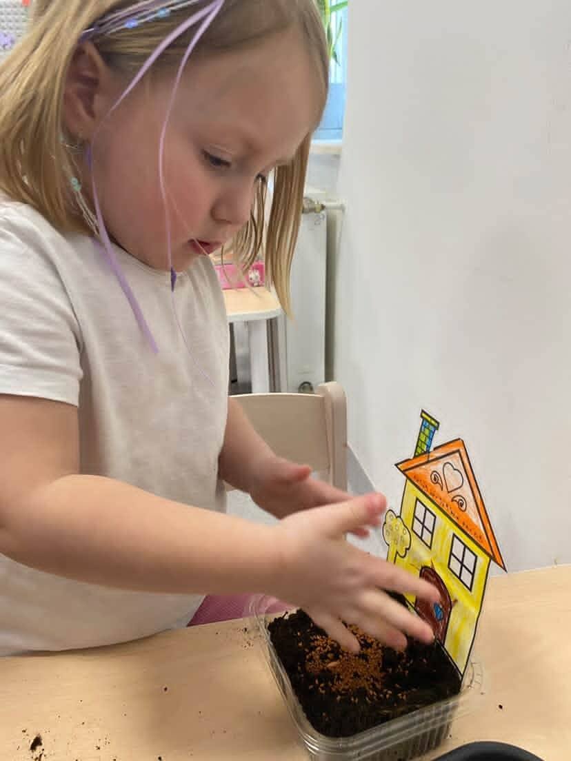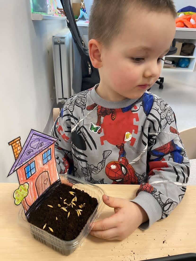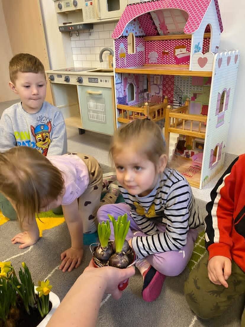 Podczas zajęć dzieci poznały tajemnice świata roślin – dowiedziały się, co jest potrzebne, aby rośliny mogły rosnąć i pięknie się rozwijać. Rozmawialiśmy o wodzie, słońcu, powietrzu i ziemi, a także o tym, że rośliny mogą wyrastać z nasionek i cebulek. Nasi mali ogrodnicy z wielkim zaangażowaniem sadzili cebulki lub nasiona 🌼 Każdy z dumą stworzył swój mały ogródek. Było dużo radości, ciekawości i świetnej zabawy!