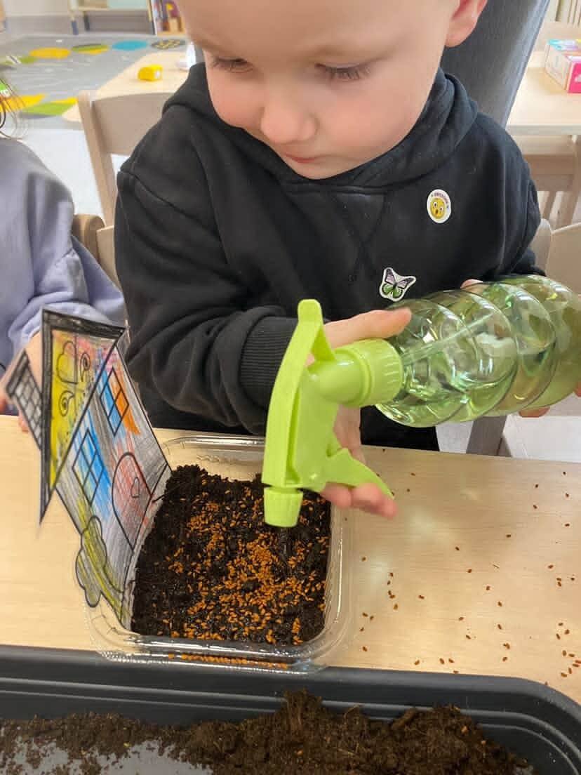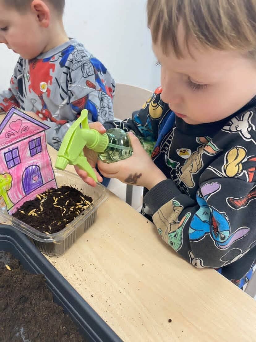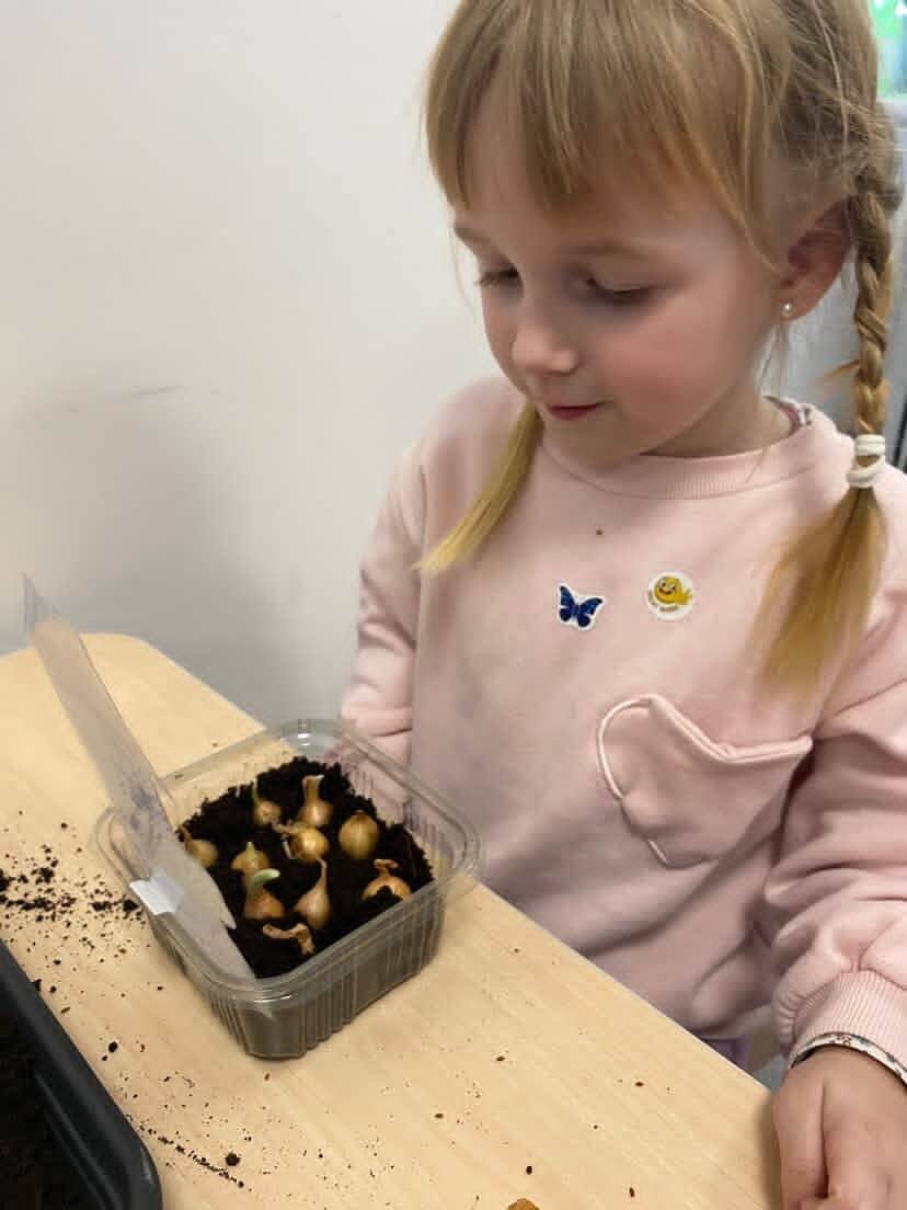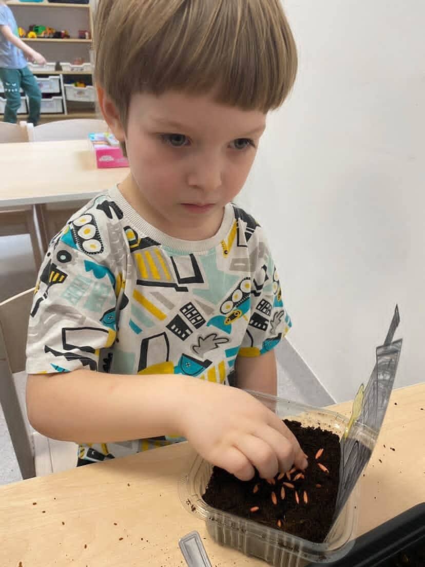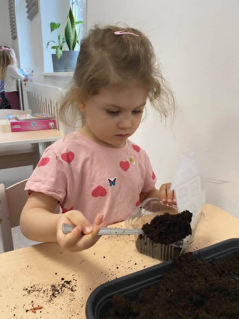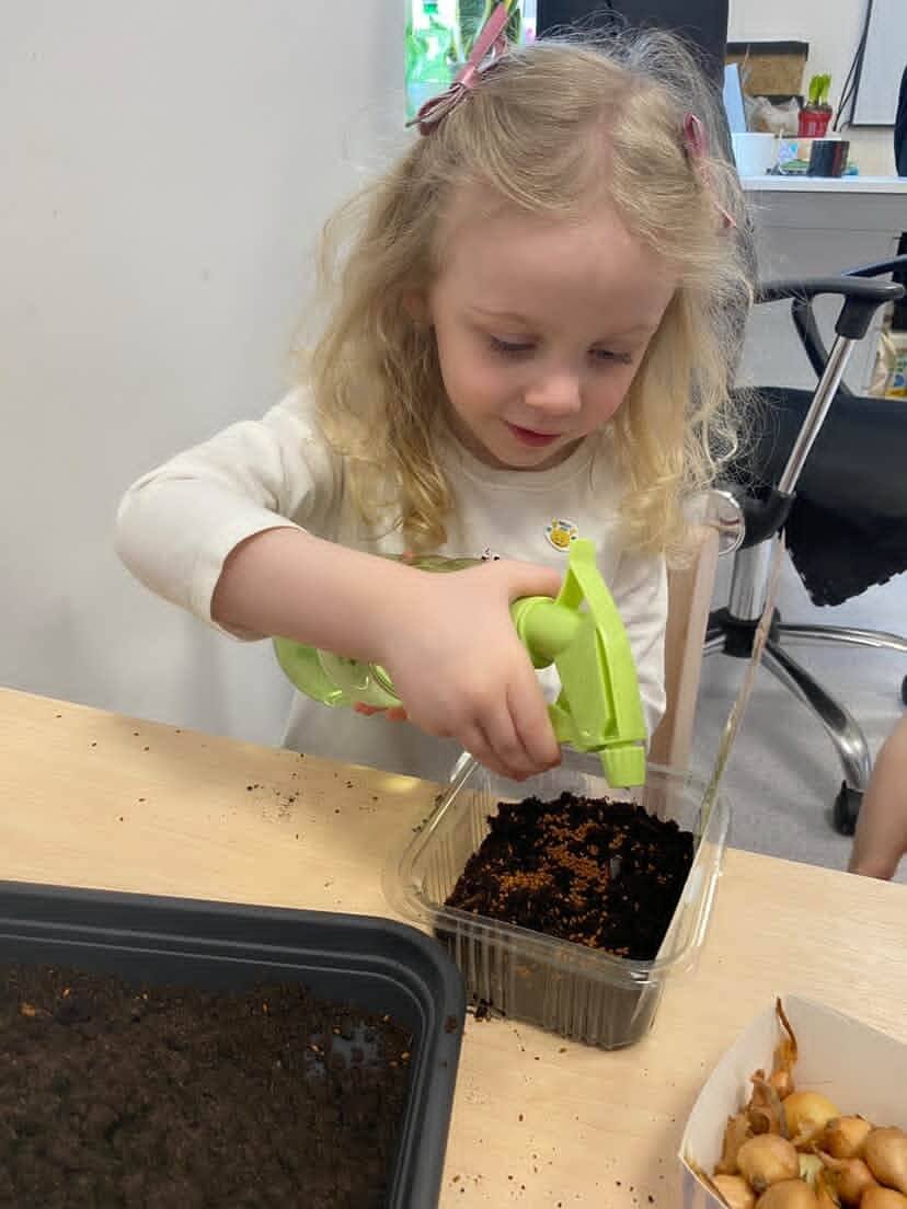 Podczas zajęć dzieci poznały tajemnice świata roślin – dowiedziały się, co jest potrzebne, aby rośliny mogły rosnąć i pięknie się rozwijać. Rozmawialiśmy o wodzie, słońcu, powietrzu i ziemi, a także o tym, że rośliny mogą wyrastać z nasionek i cebulek. Nasi mali ogrodnicy z wielkim zaangażowaniem sadzili cebulki lub nasiona 🌼 Każdy z dumą stworzył swój mały ogródek. Było dużo radości, ciekawości i świetnej zabawy!