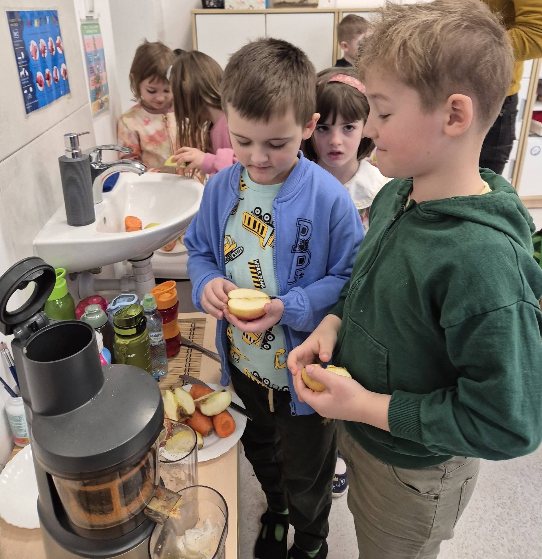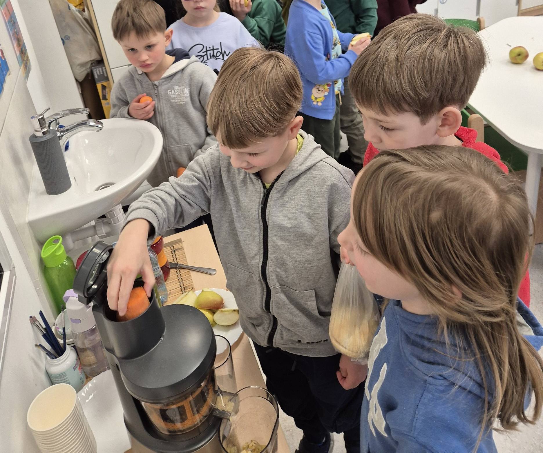 Były prace ogrodowe- sadzenie, sianie i podlewanie roślin. Niezabrakło witaminek, ponieważ dzieci zrobiły i wypiły sok 🥕🥕🍏🍎🥕🍏🥕
