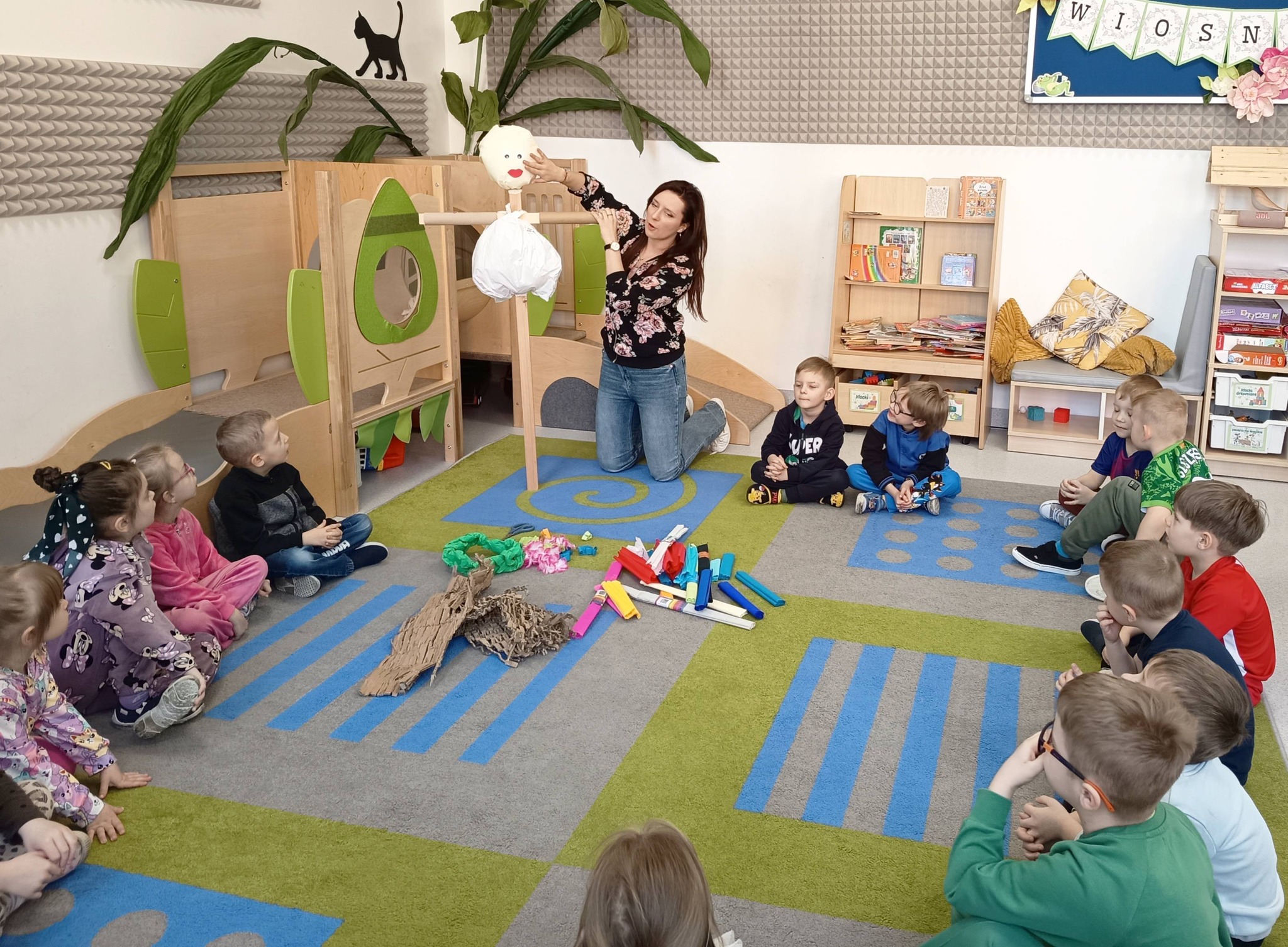 Pod koniec minionego tygodnia w naszej grupie przedszkolnej „Żabki” odbyło się wyjątkowe wydarzenie! 🌼 Razem stworzyliśmy piękną Marzannę, symbol pożegnania zimy i powitania wiosny. 🌷