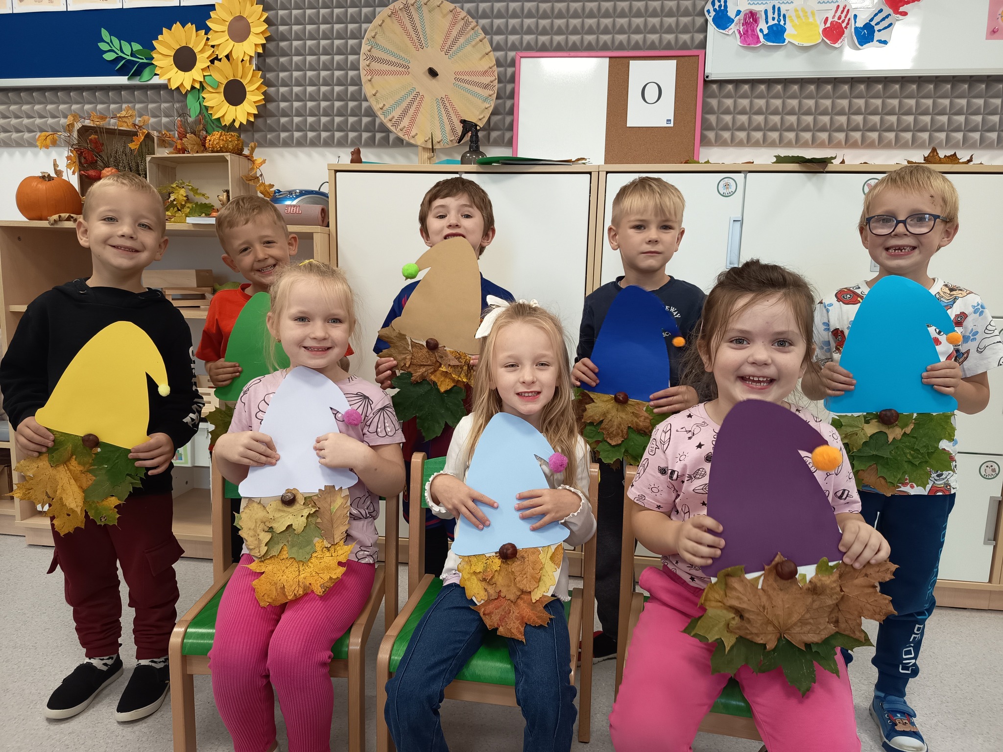 Jesienne skrzaty w lesie pilnują, Czy dzieci cicho się zachowują. Bo las lubi ciszę i spokój lubi, Każdy to wie i tym się chlubi. Zdolne Żabki wykonały dziś jesienne skrzaty.