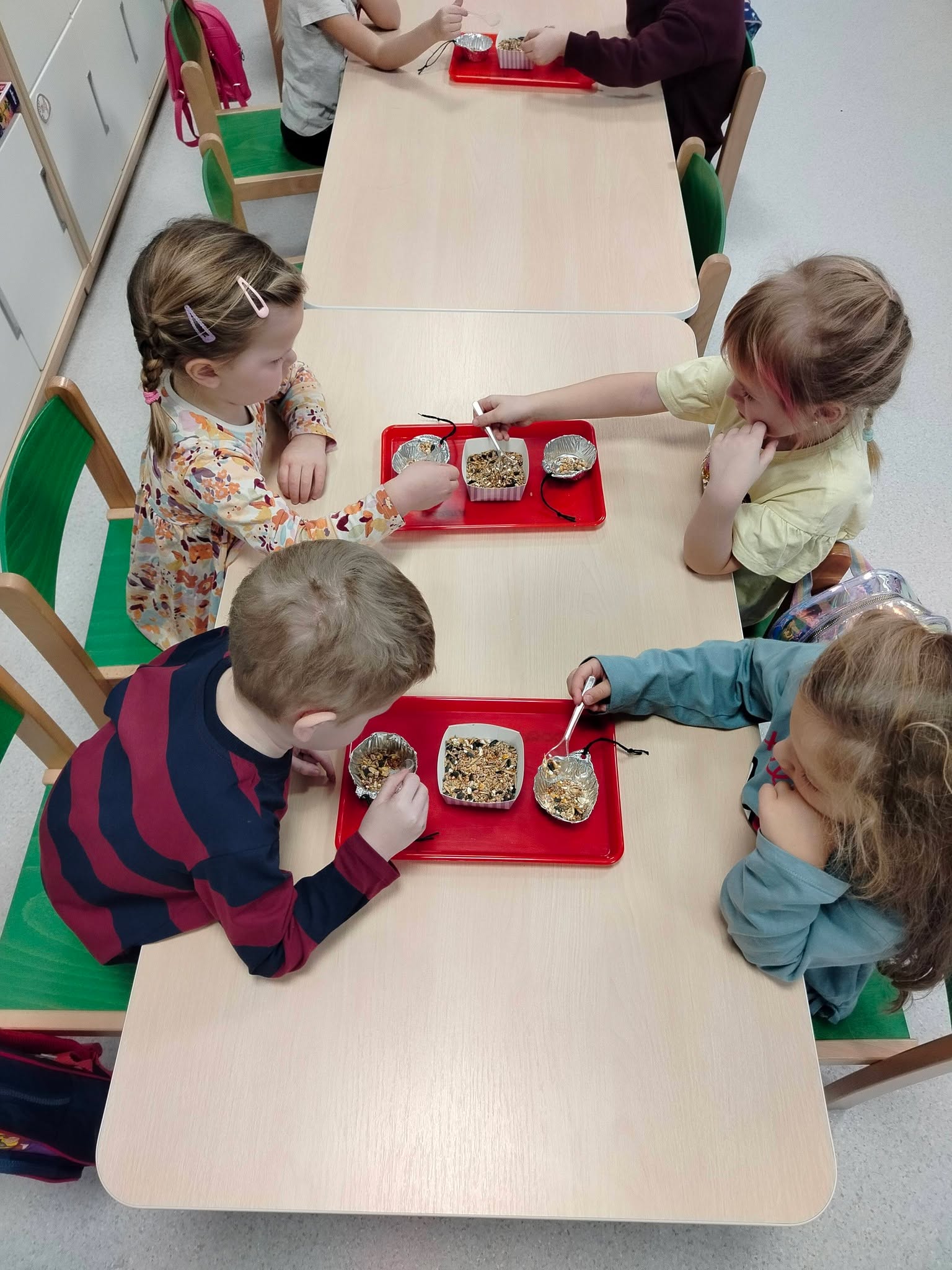 🦔🐦 Jeżyki w akcji! Nasze Jeżyki przygotowały pyszne smakołyki dla ptaków, a potem rozwiesiły jedzonko wokół przedszkola. Było trochę bałaganu, dużo radości i jeszcze więcej dobrego serca 💚 Teraz z okien przedszkolnych dzieci mogą obserwować ptaki przylatujące do karmnika – nauka i radość prosto z natury 🥰