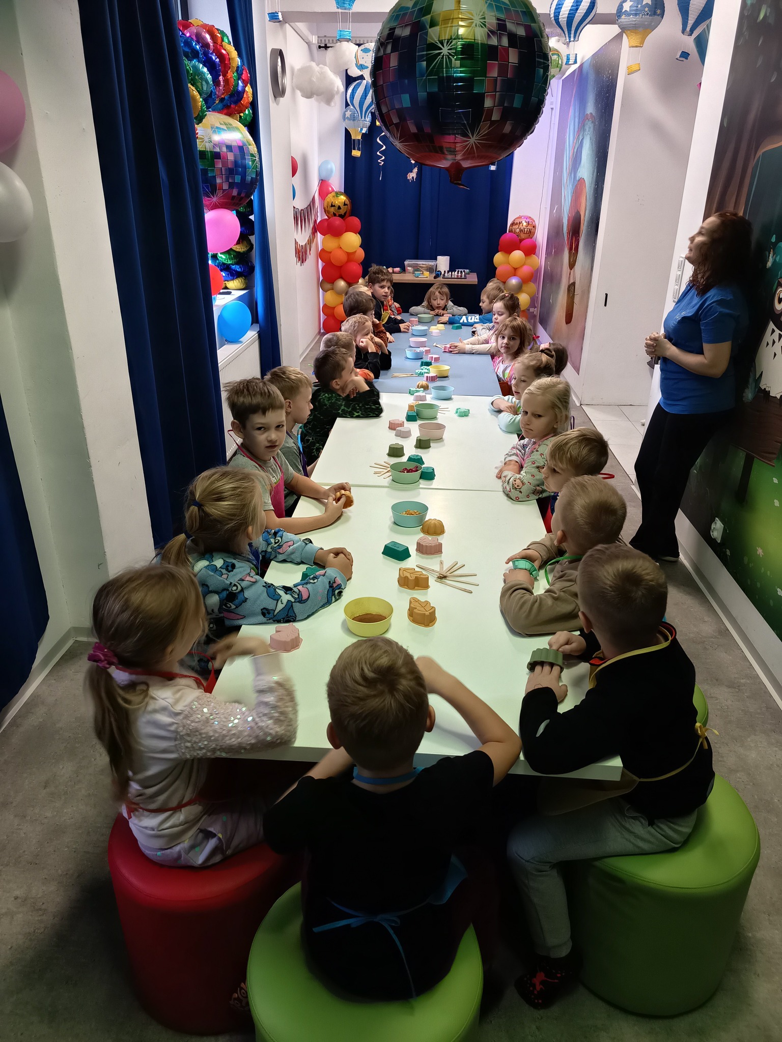 Przedszkolaki brały dzisiaj udział w warsztatach z robienia mydełek, a po ciężkiej 😉pracy, czekała na nie świetna zabawa na sali zabaw.
