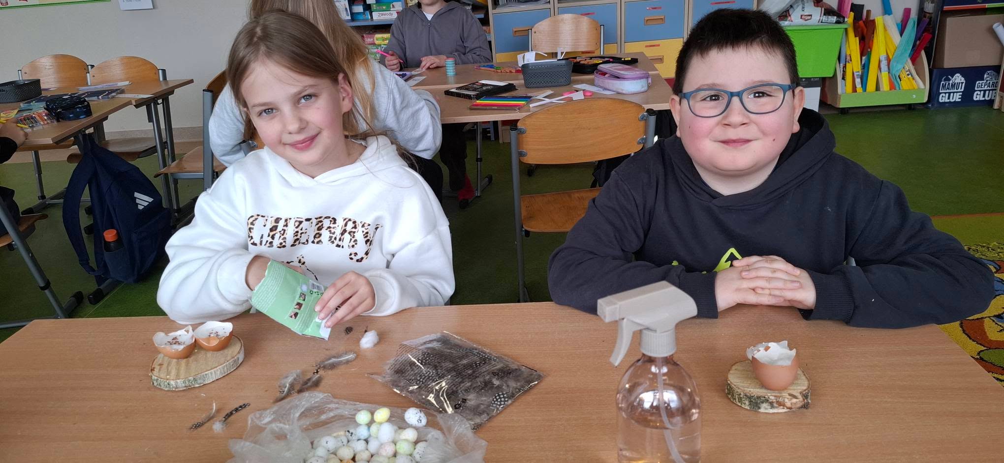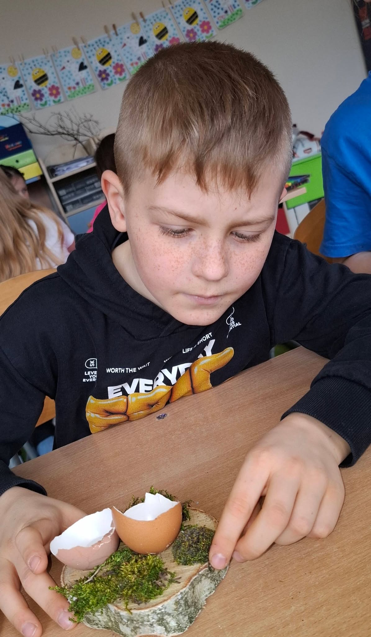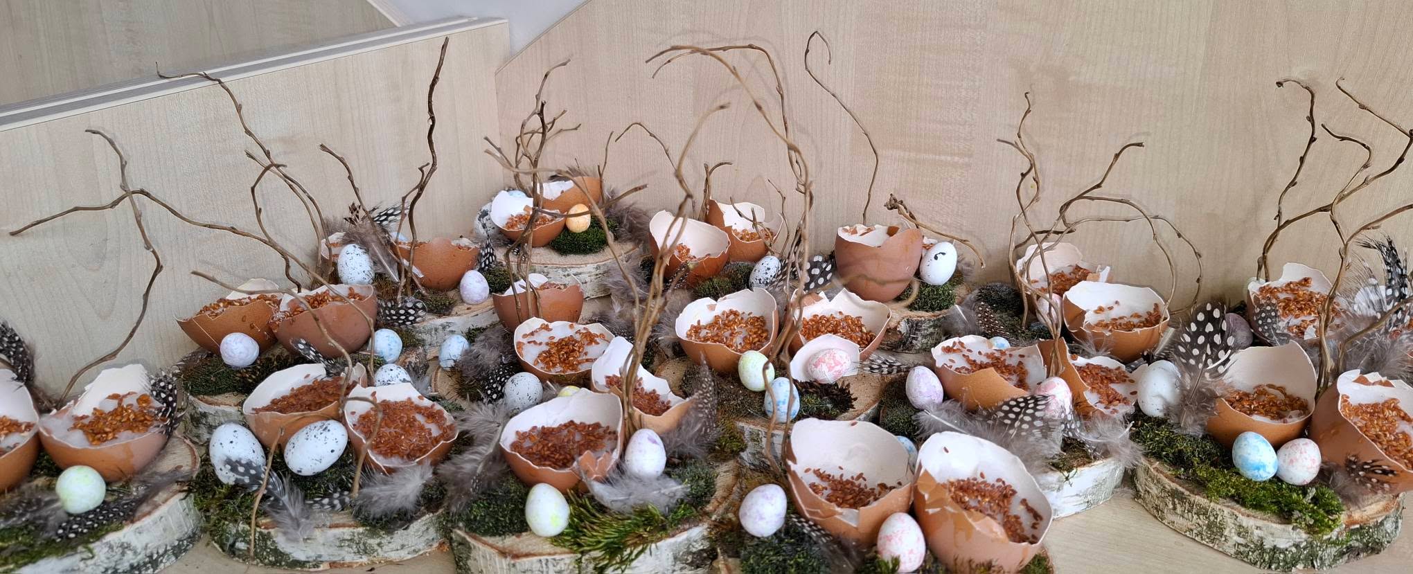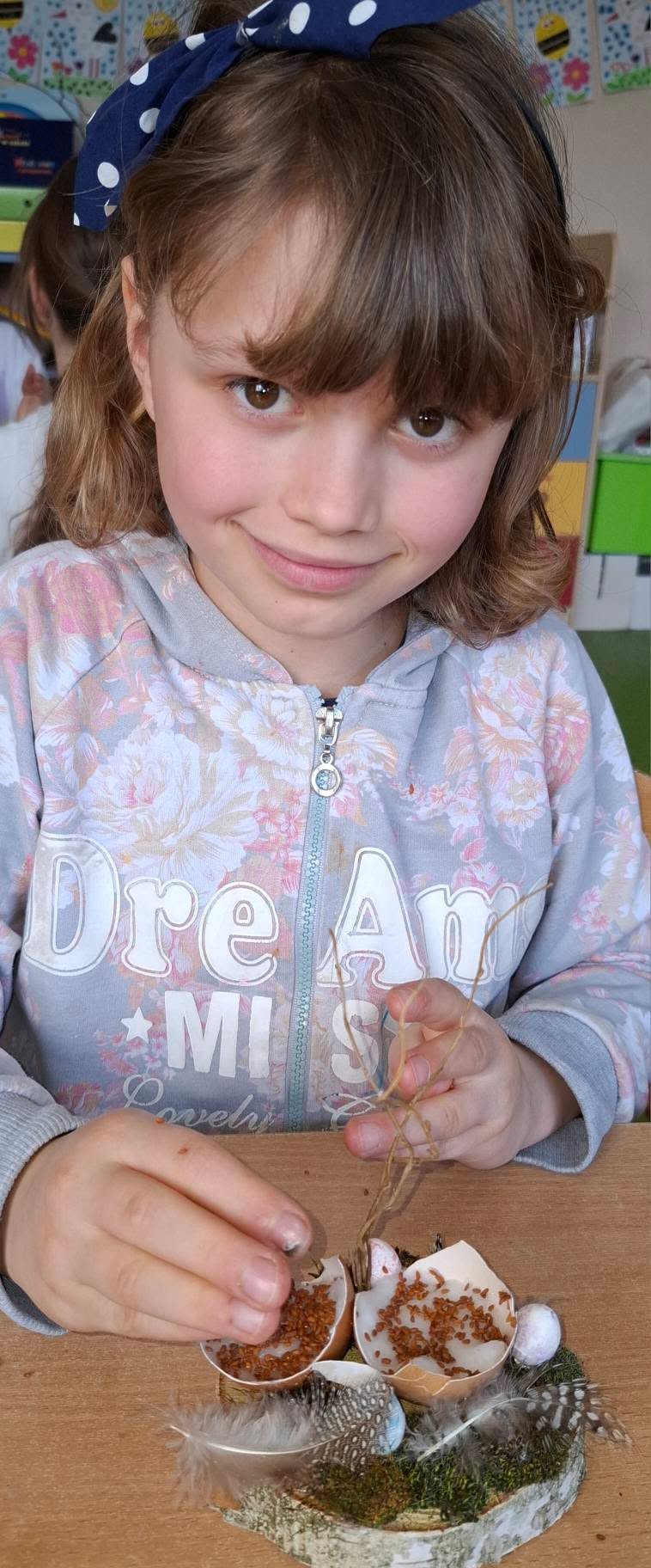 Uczniowie klasy 2A przygotowywali się do Wielkanocy, wykonując piękne i pomysłowe stroiki świąteczne 🌸🐰. W swoich pracach wykorzystali przede wszystkim materiały przyrodnicze – mech, gałązki, kawałki drewna oraz skorupki jajek 🌱🪵🥚. Stroiki zostały ozdobione rzeżuchą, delikatnymi piórkami i kolorowymi jajeczkami, co nadało im wyjątkowy, wiosenny charakter 🌼✨.
