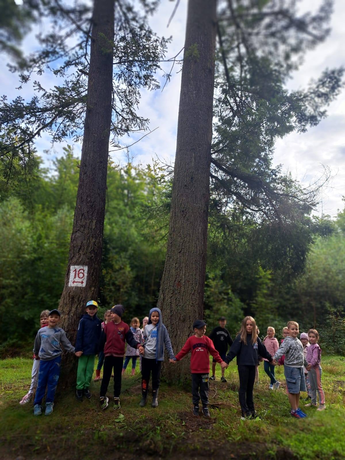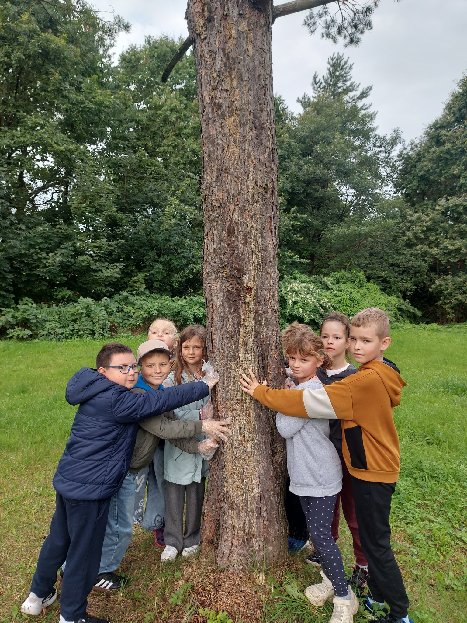 Uczniowie naszej szkoły wzięli udział w ogólnopolskiej akcji „PRZYTUL SIĘ DO DRZEWA” 👭🌳, zorganizowanej przez Strażników Polskich Lasów.