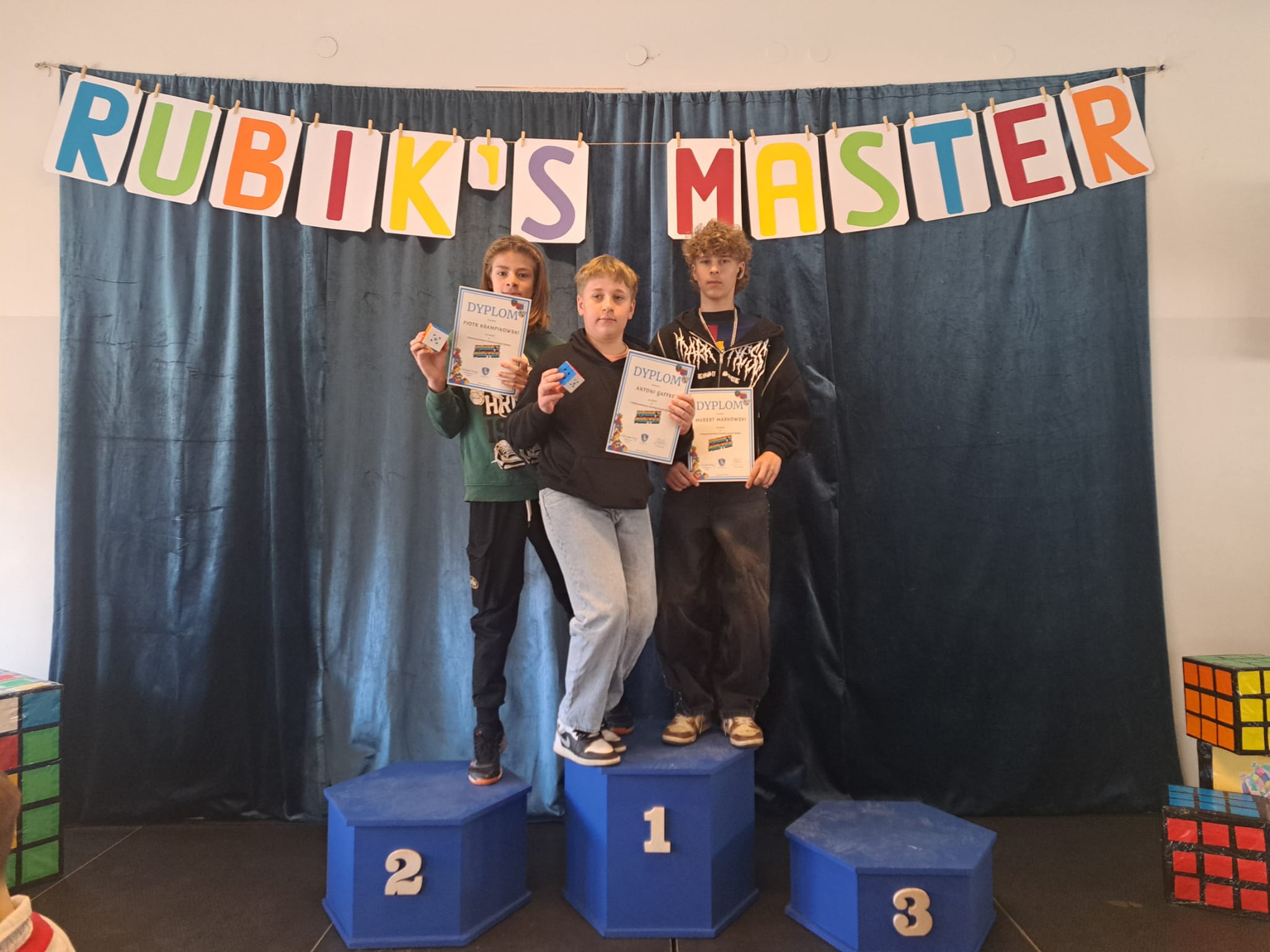 Trzej uczniowie naszej szkoły: Antoni Gaffke, Piotr Krampikowski i Hubert Markowski wzięli udział w Międzyszkolnym Konkursie „RUBIK'S MASTER”, zorganizowanym przez Szkołę Podstawową nr 8 w Gdyni. Podczas wydarzenia mieli okazję sprawdzić swoje umiejętności w układaniu na czas kostki 3x3. W zawodach uczestniczyło aż 54 zawodników z całego województwa, co sprawiło, że rywalizacja była bardzo wymagająca.