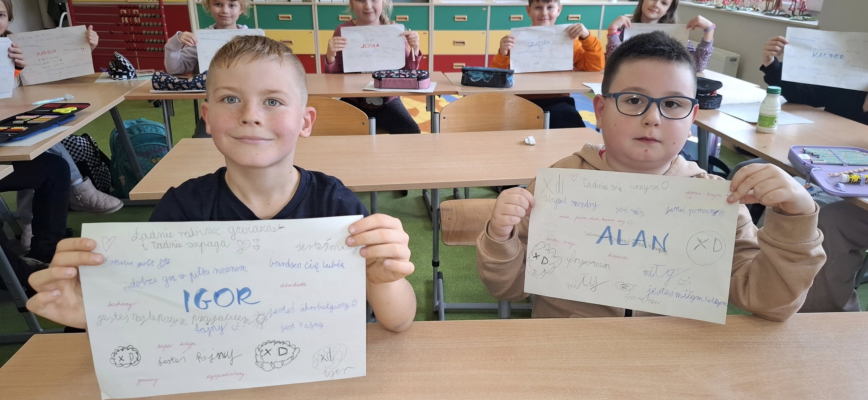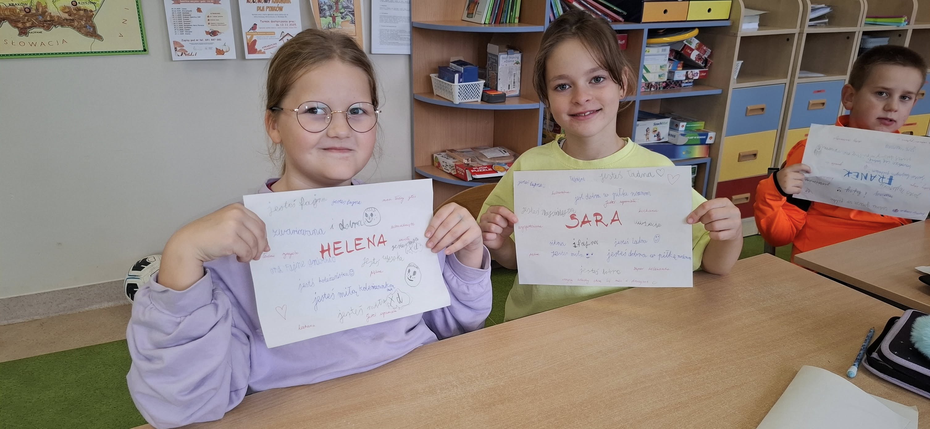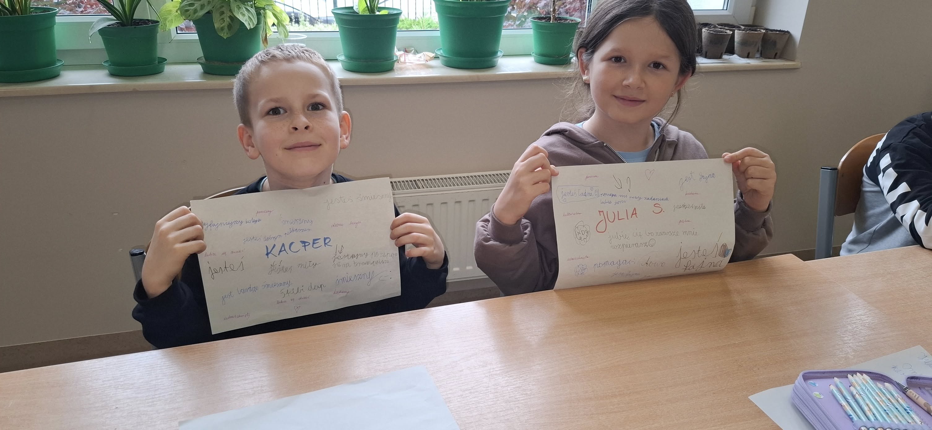 Dziś uczniowie klasy 2a przekonali się na własnej skórze, jak wielki wpływ mogą mieć słowa — te dobre i te mniej przyjemne. Podczas zajęć wspólnie odkrywali, że czasem wystarczy jedno zdanie, jeden gest, jedno słowo, by poprawić komuś dzień lub… przeciwnie.