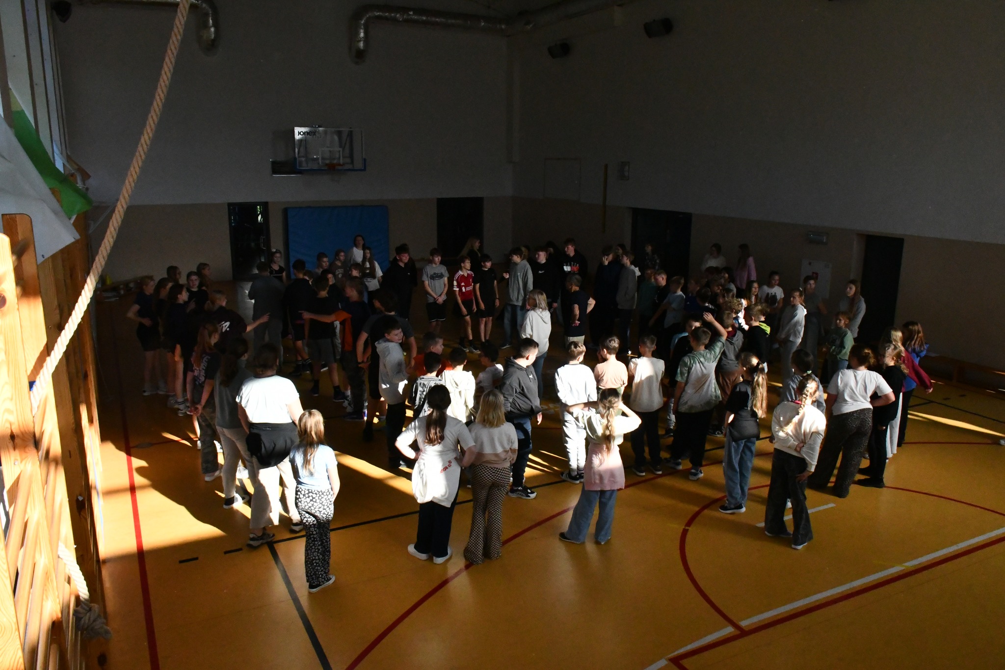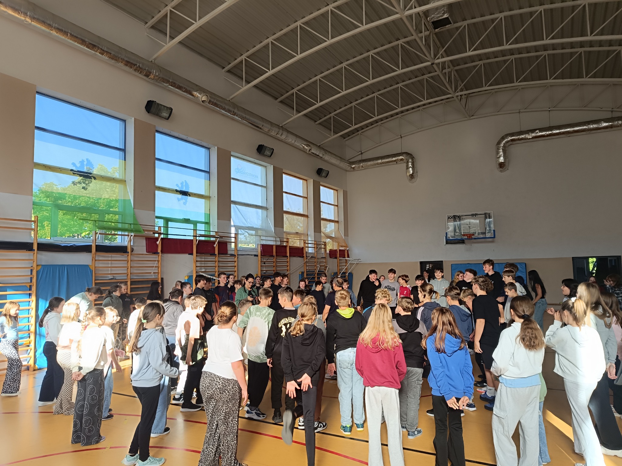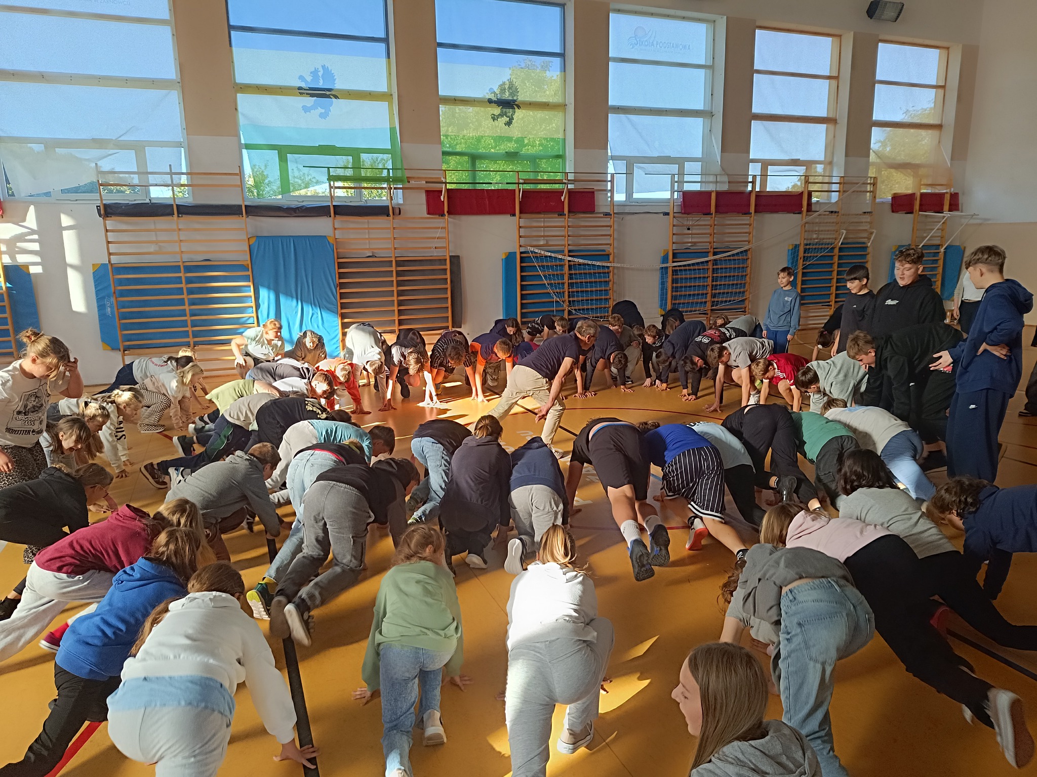 👉 Spotkaliśmy się na sali gimnastycznej, by wspólnie świętować aktywność fizyczną pod hasłem „Siła współpracy" 🤝. Po krótkim wprowadzeniu ruszyliśmy do ćwiczeń, a później – w duchu fair play – do sportowych konkurencji. Było mnóstwo śmiechu, radości i zdrowej rywalizacji! ⚽🏀🏐