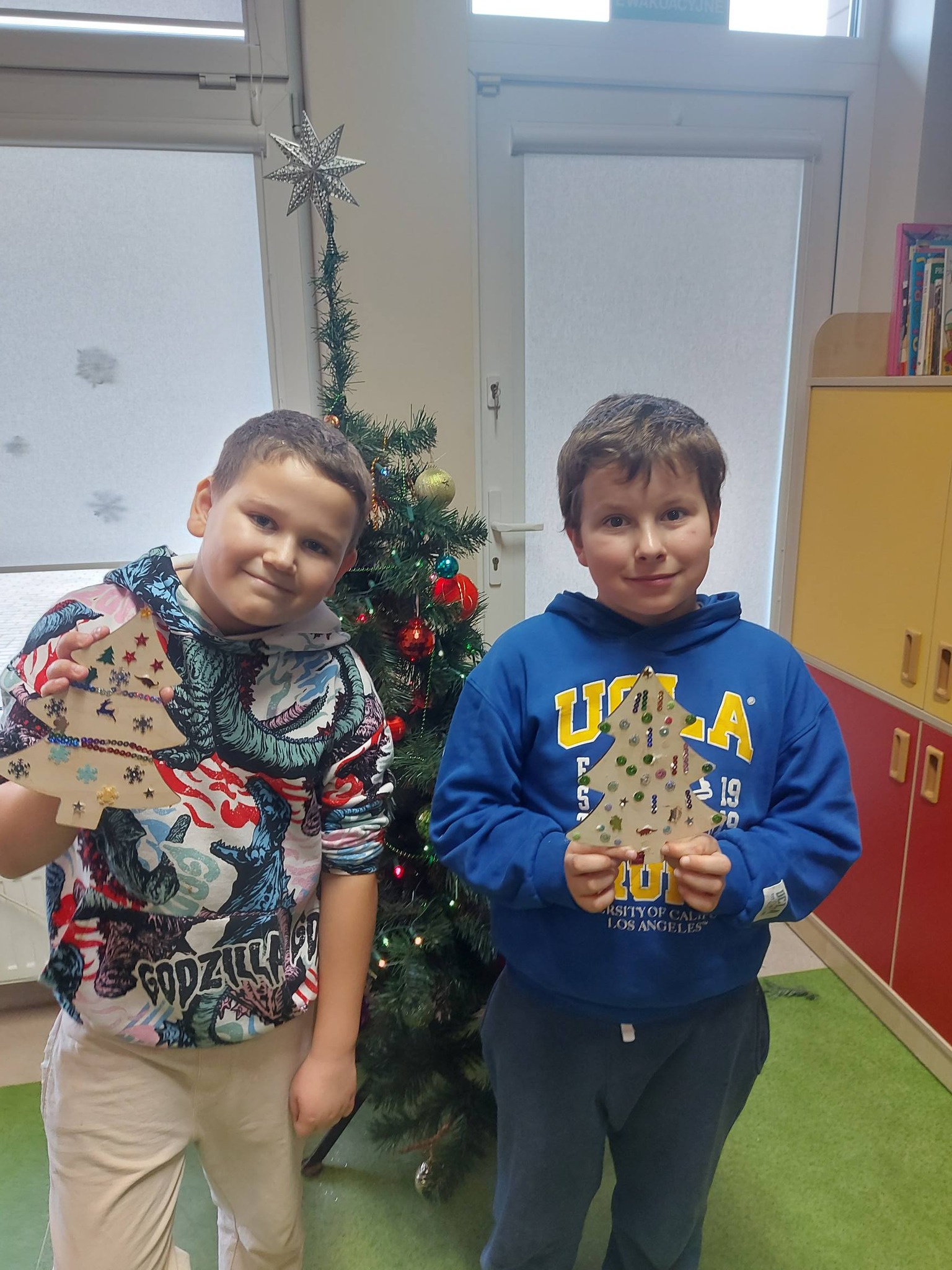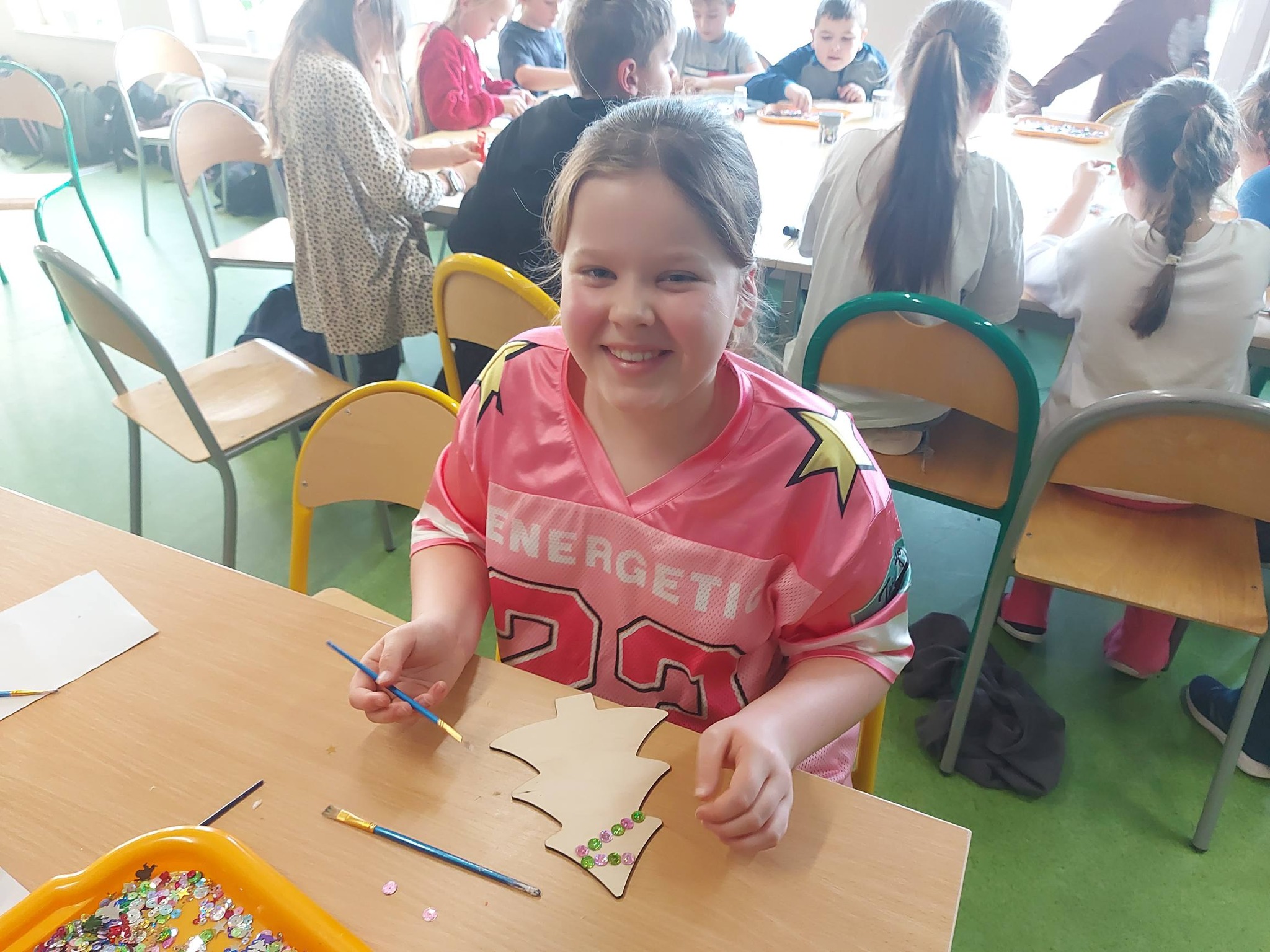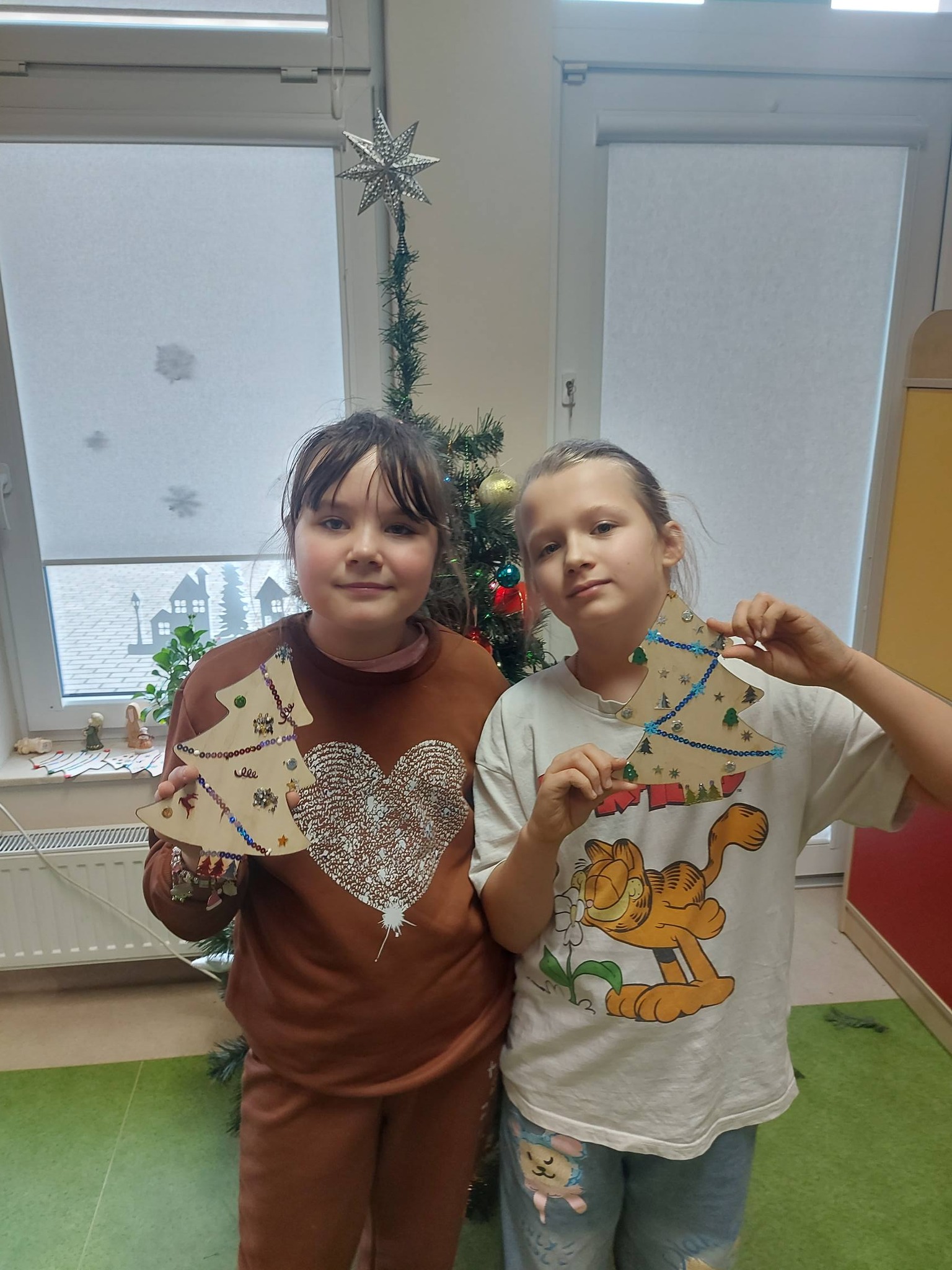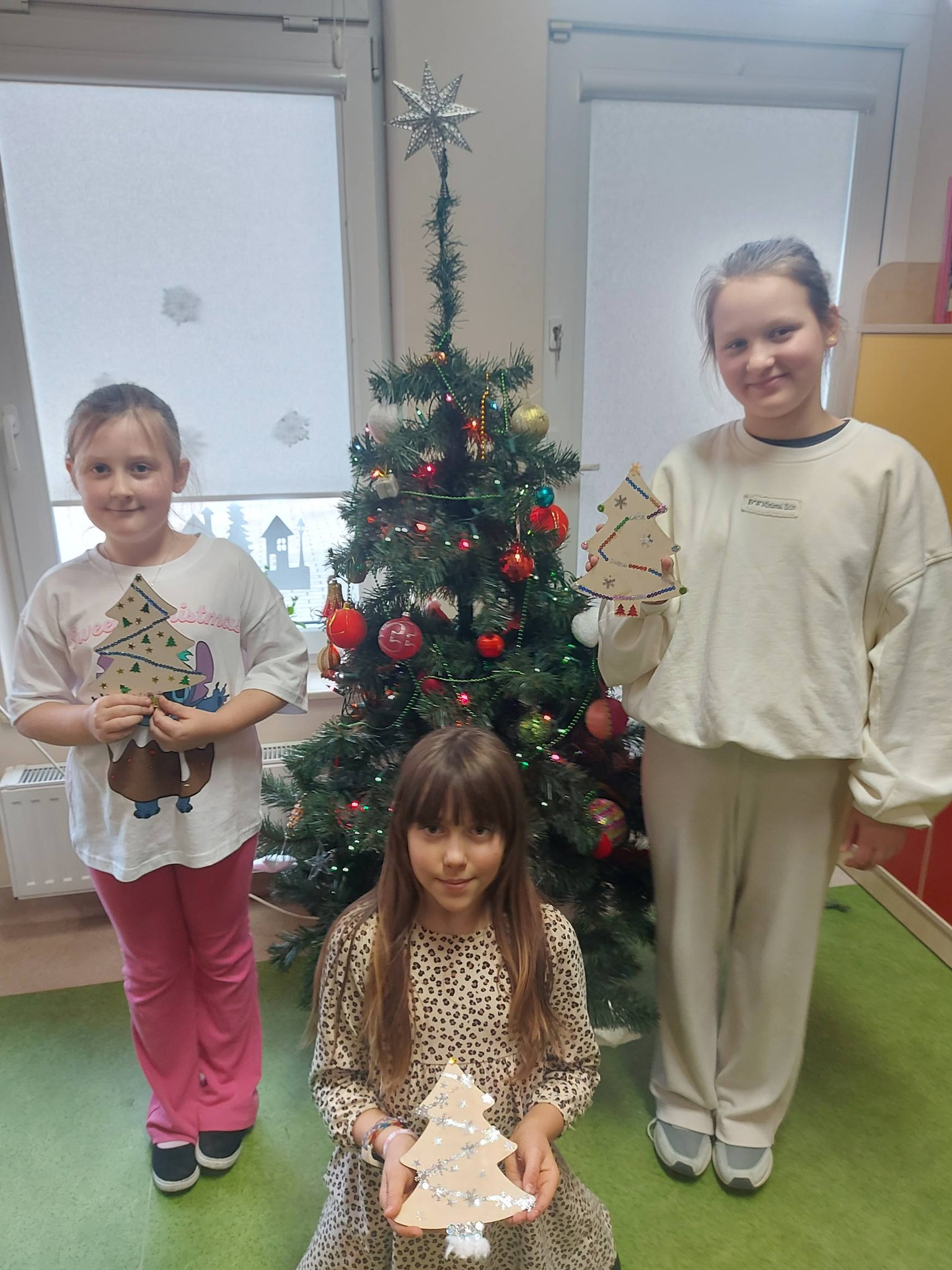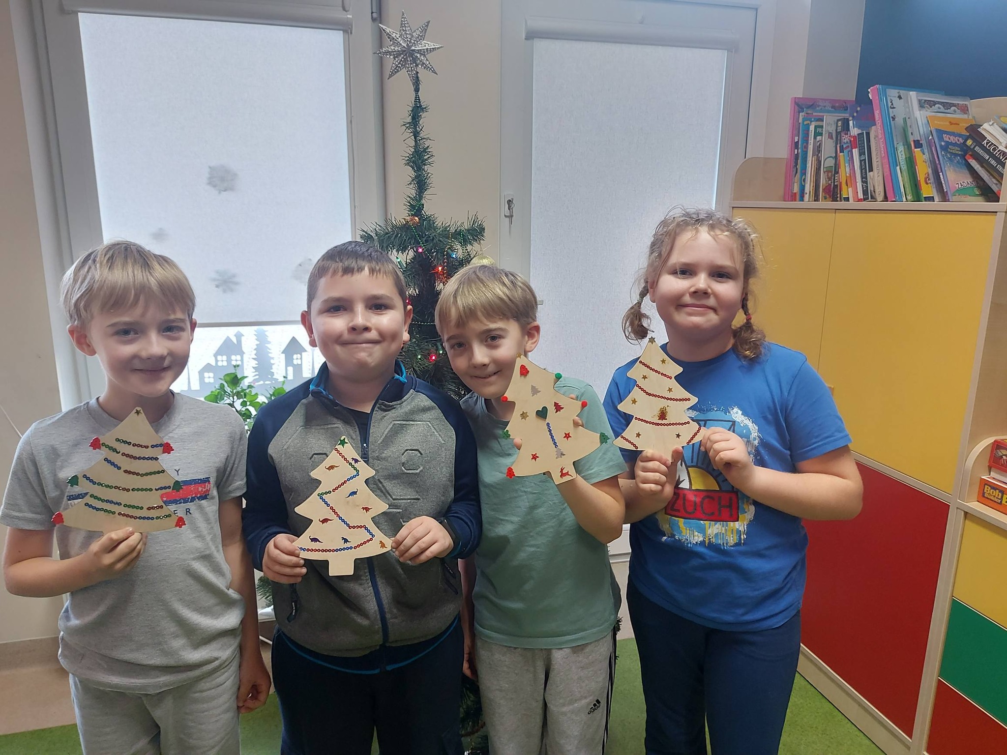 Na koniec oddaliśmy się dekorowaniu – ozdabialiśmy drewniane choinki oraz bombki, tworząc prawdziwe małe dzieła sztuki, które wprowadziły do świetlicy magiczny, świąteczny nastrój ✨🎨