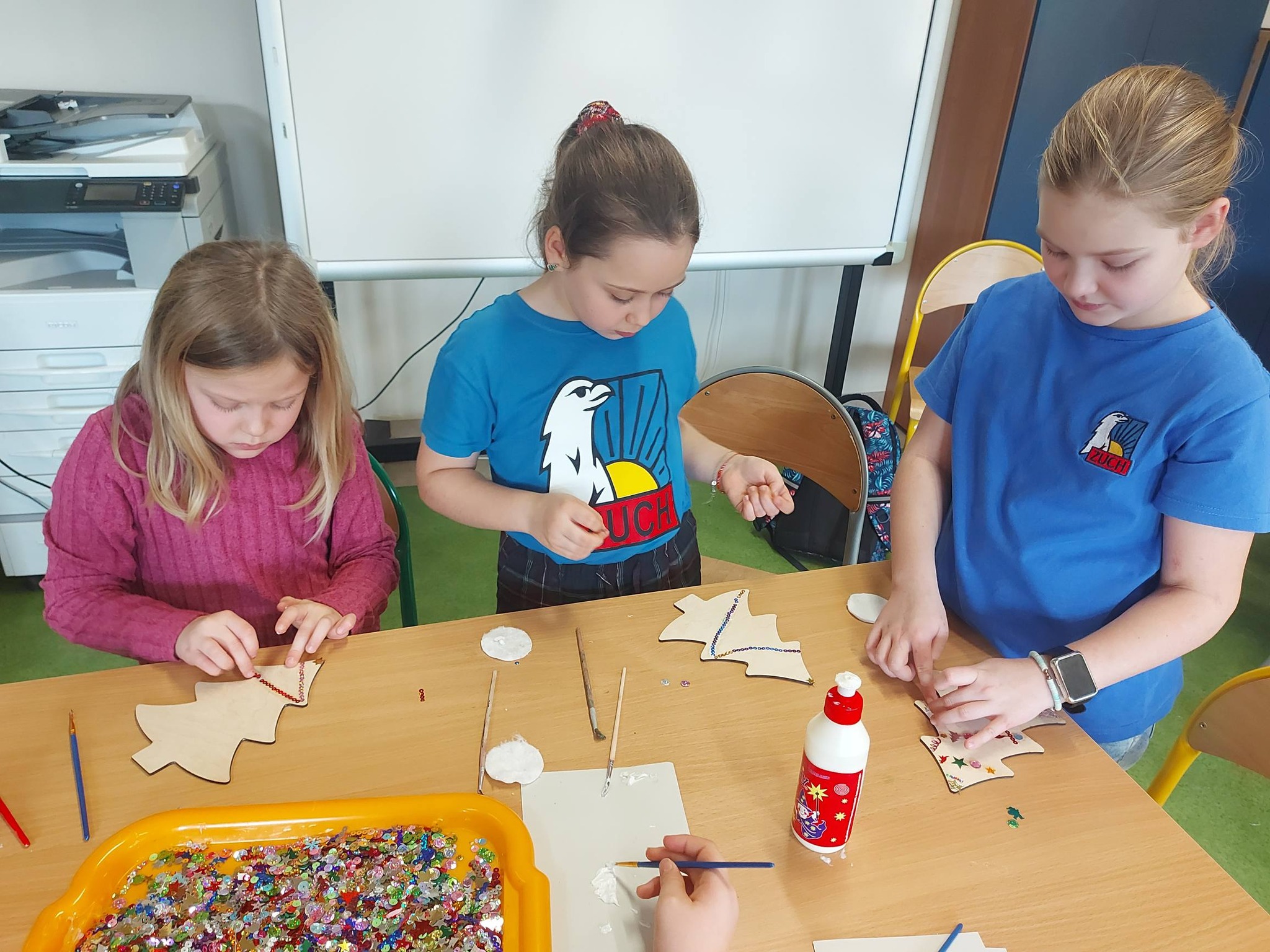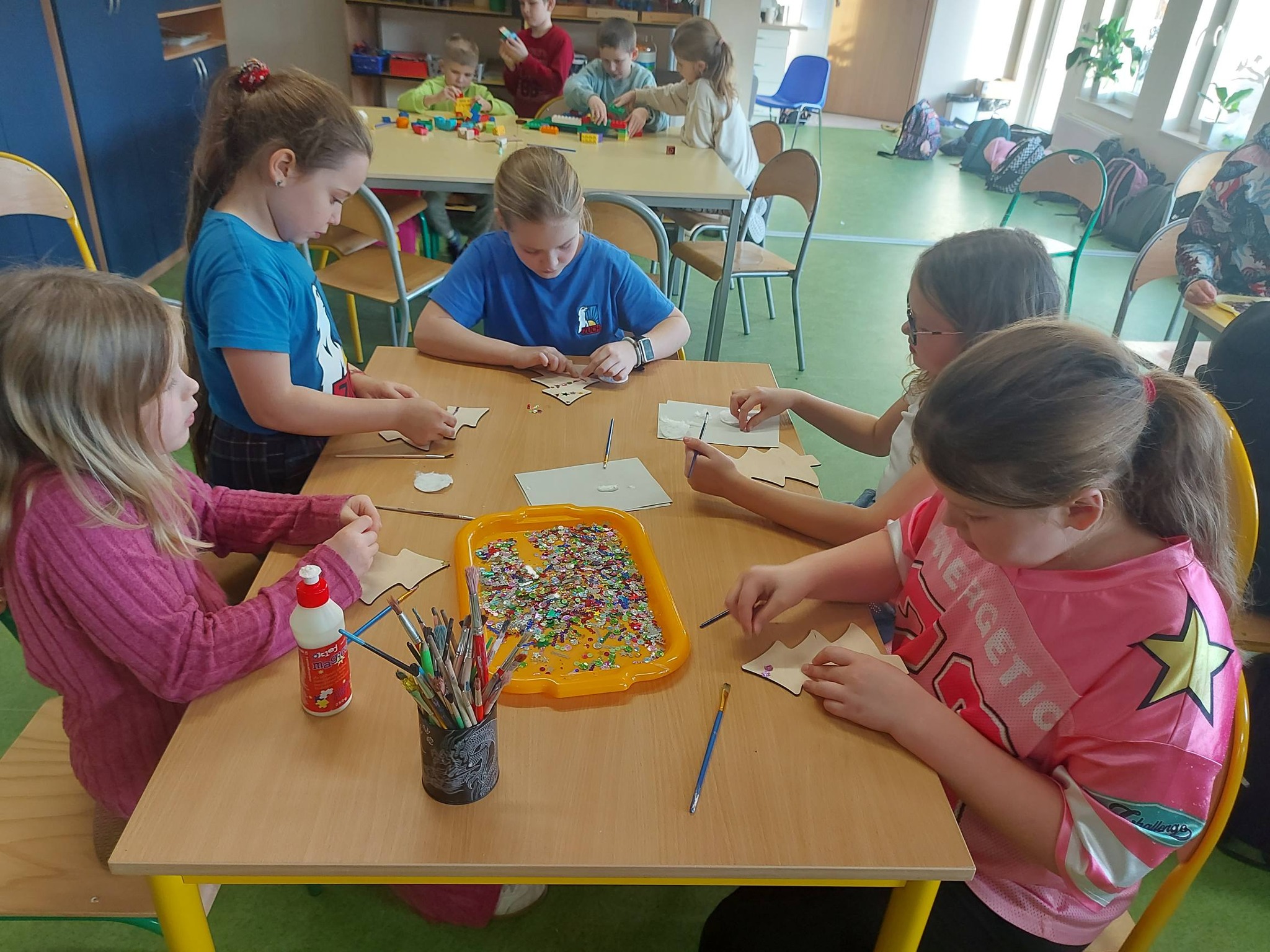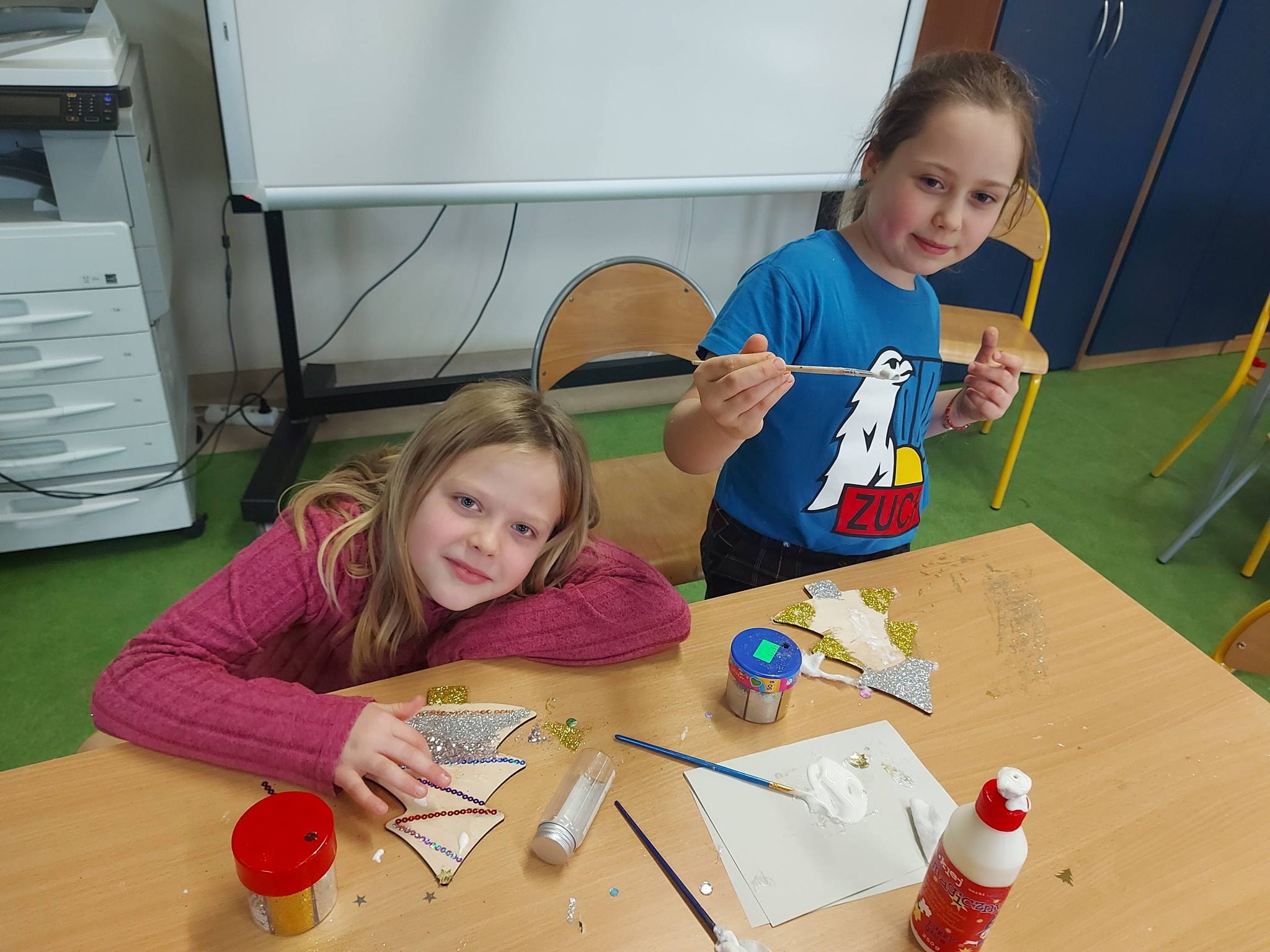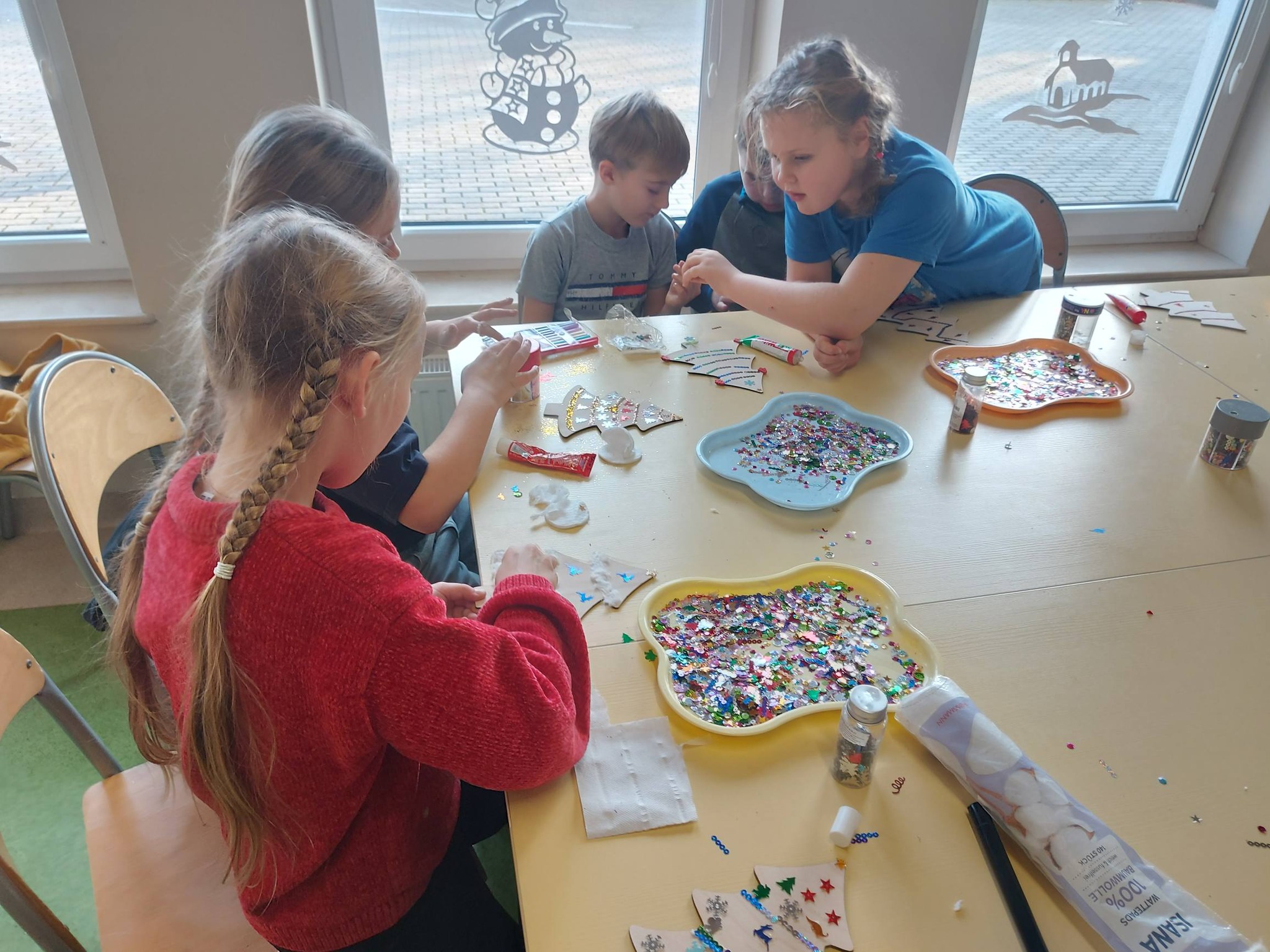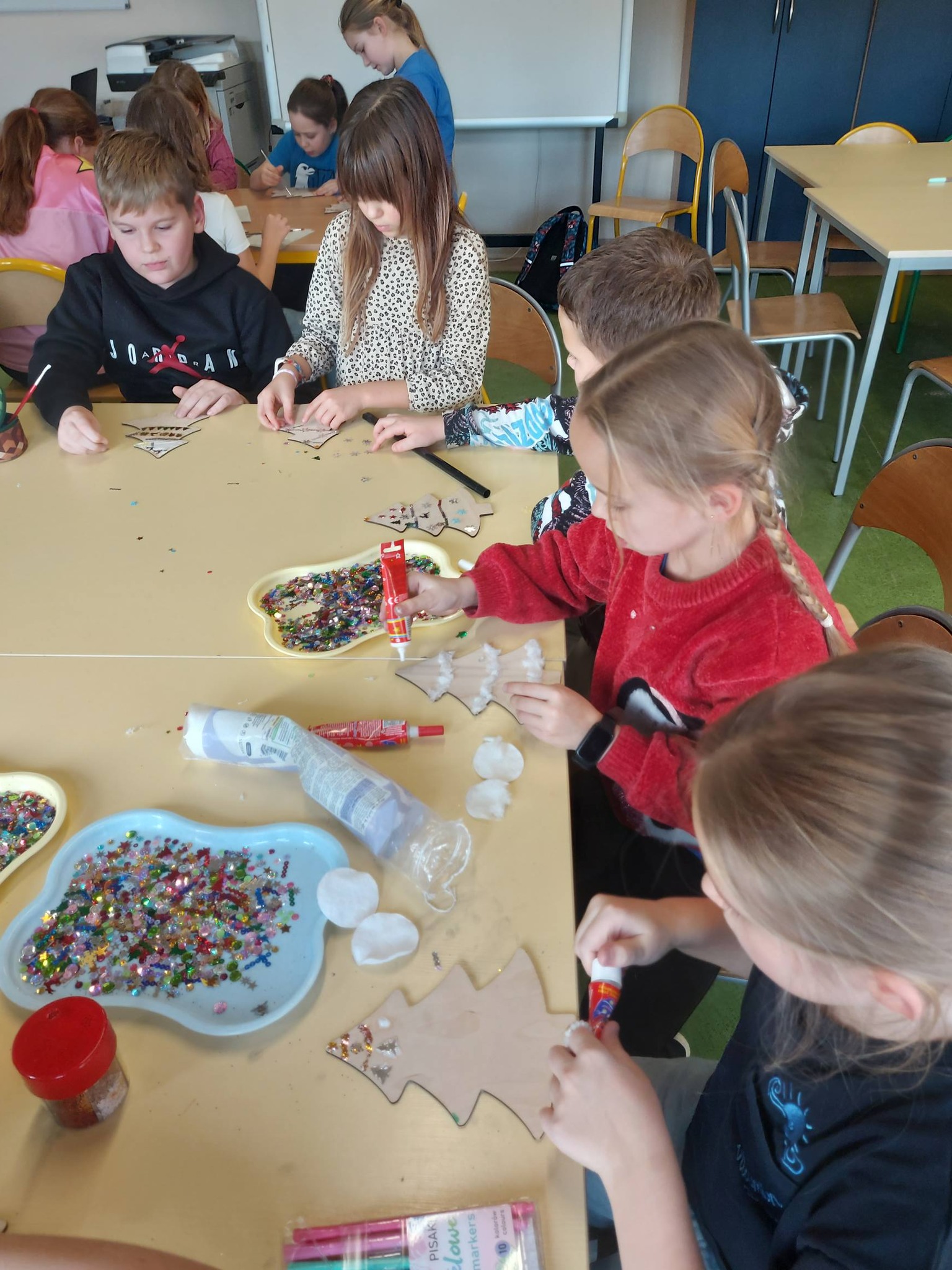 Na koniec oddaliśmy się dekorowaniu – ozdabialiśmy drewniane choinki oraz bombki, tworząc prawdziwe małe dzieła sztuki, które wprowadziły do świetlicy magiczny, świąteczny nastrój ✨🎨