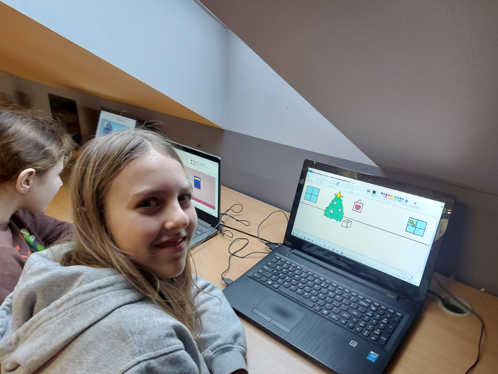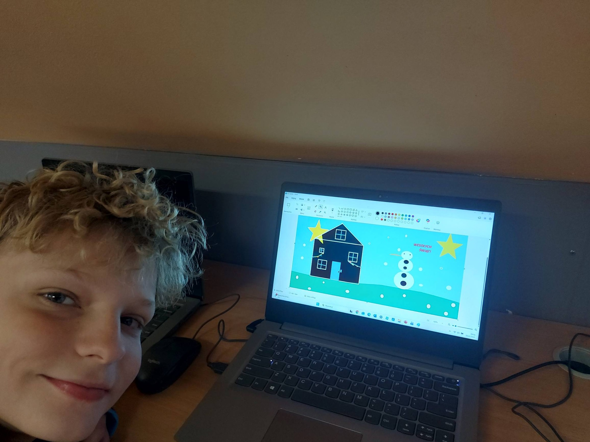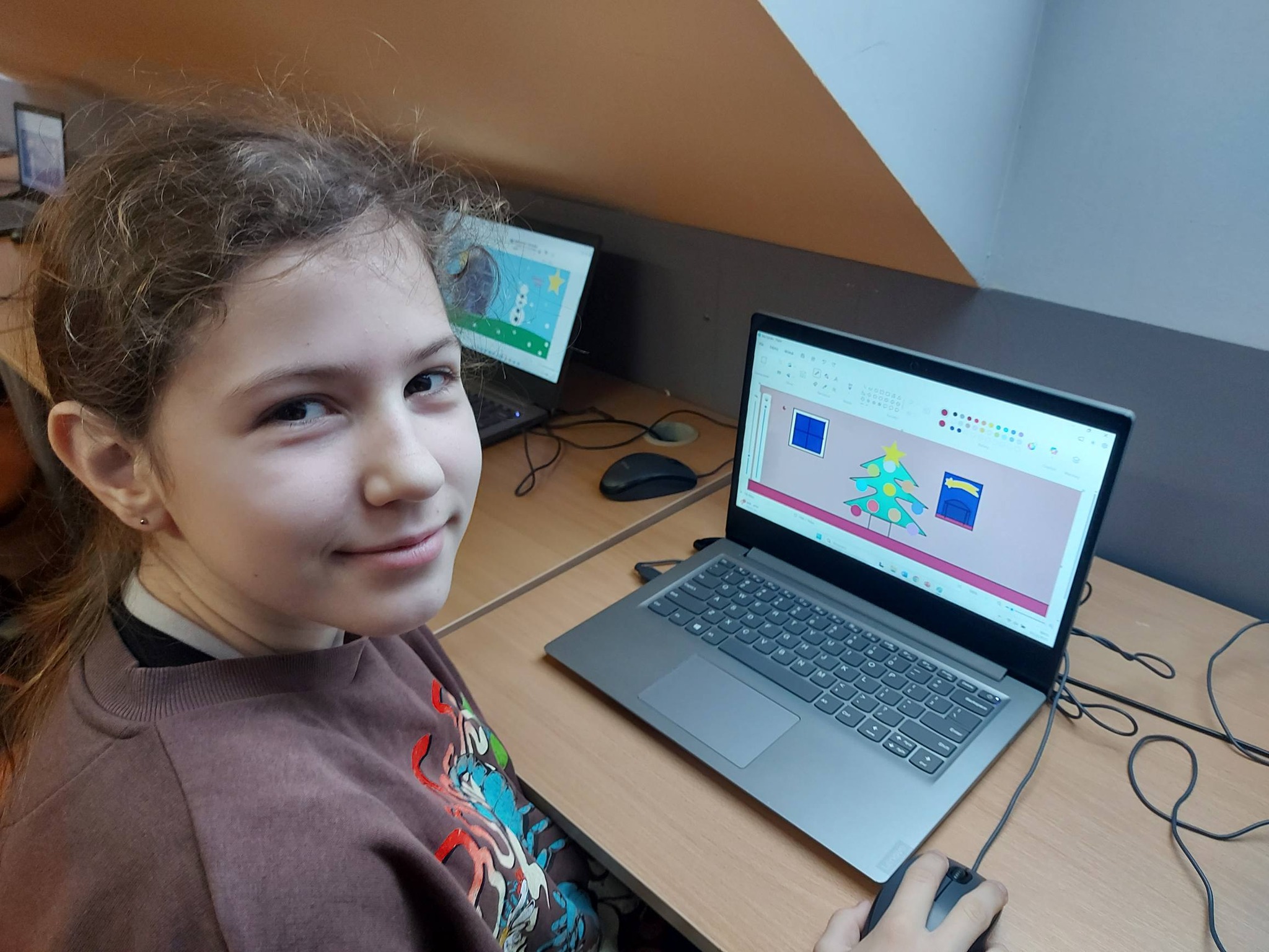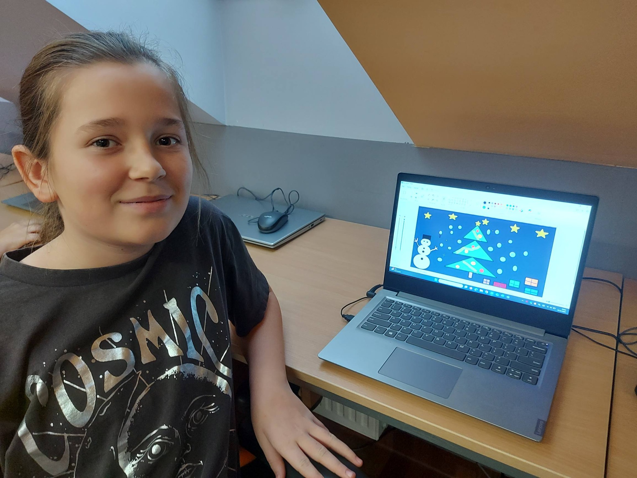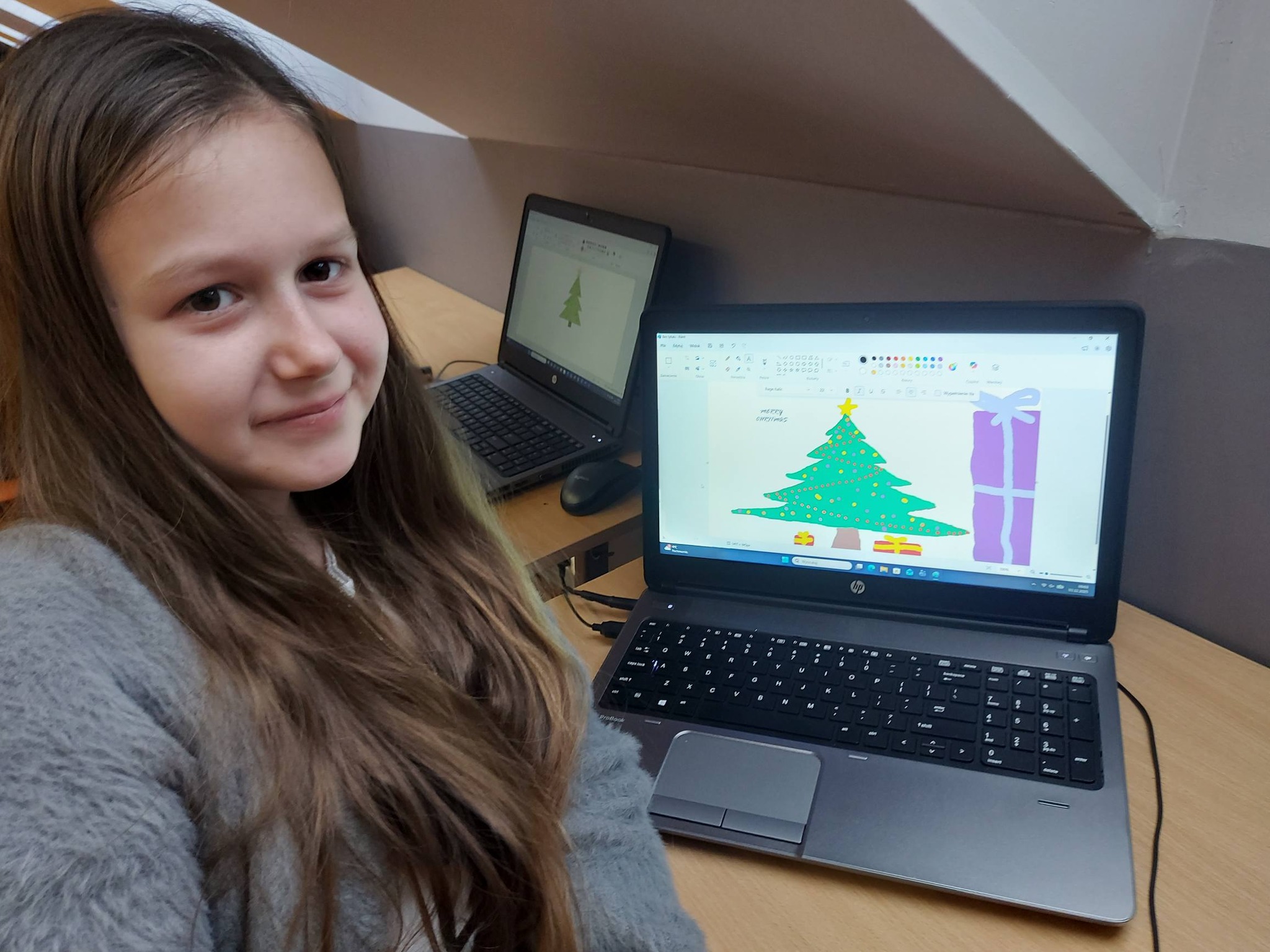 Nie zabrakło również nowoczesnych działań – wykonywaliśmy zimowe prace plastyczne w programie Paint, a także kodowaliśmy piękną choinkę, łącząc świąteczną zabawę z nauką logicznego myślenia 🎄💻