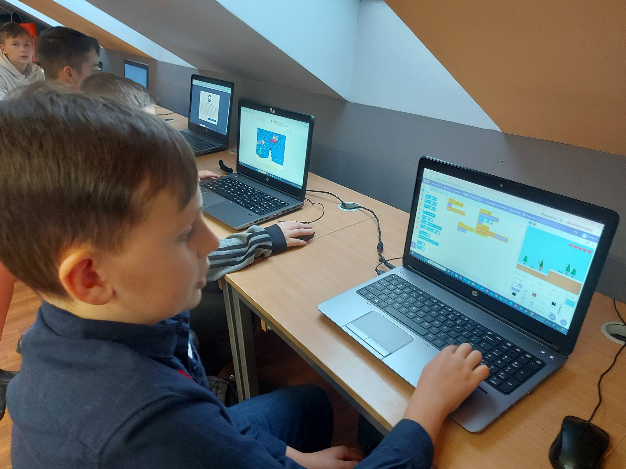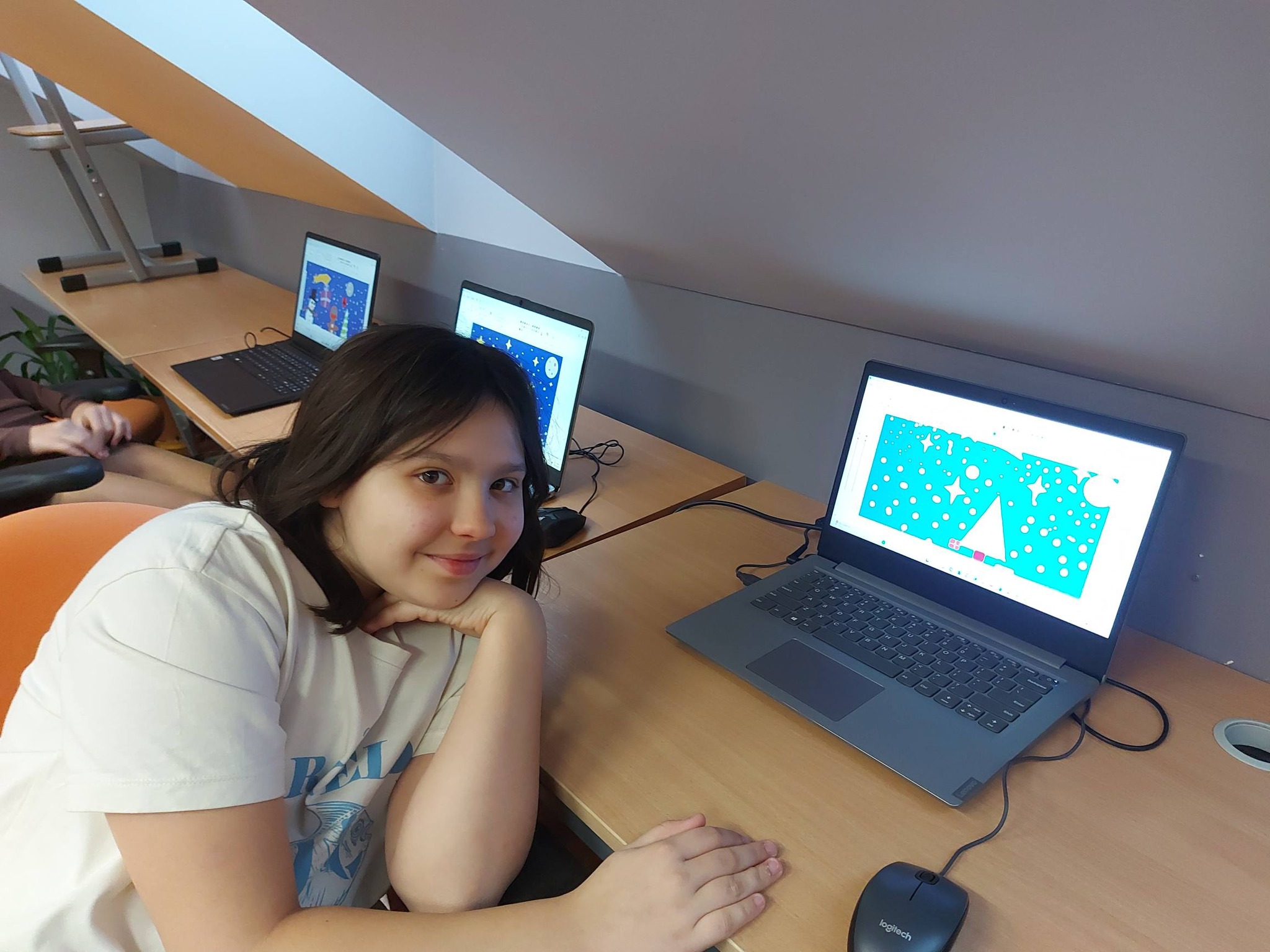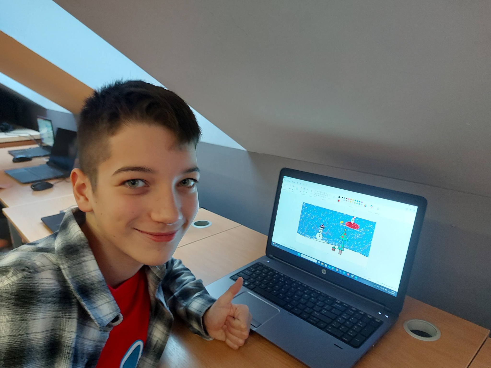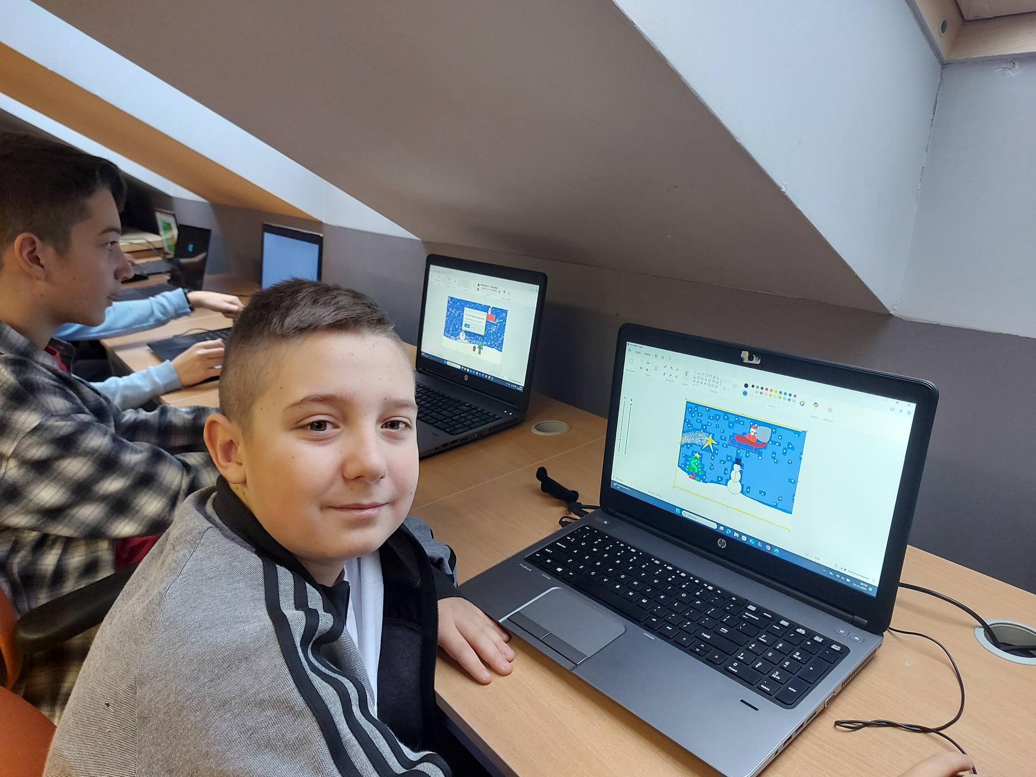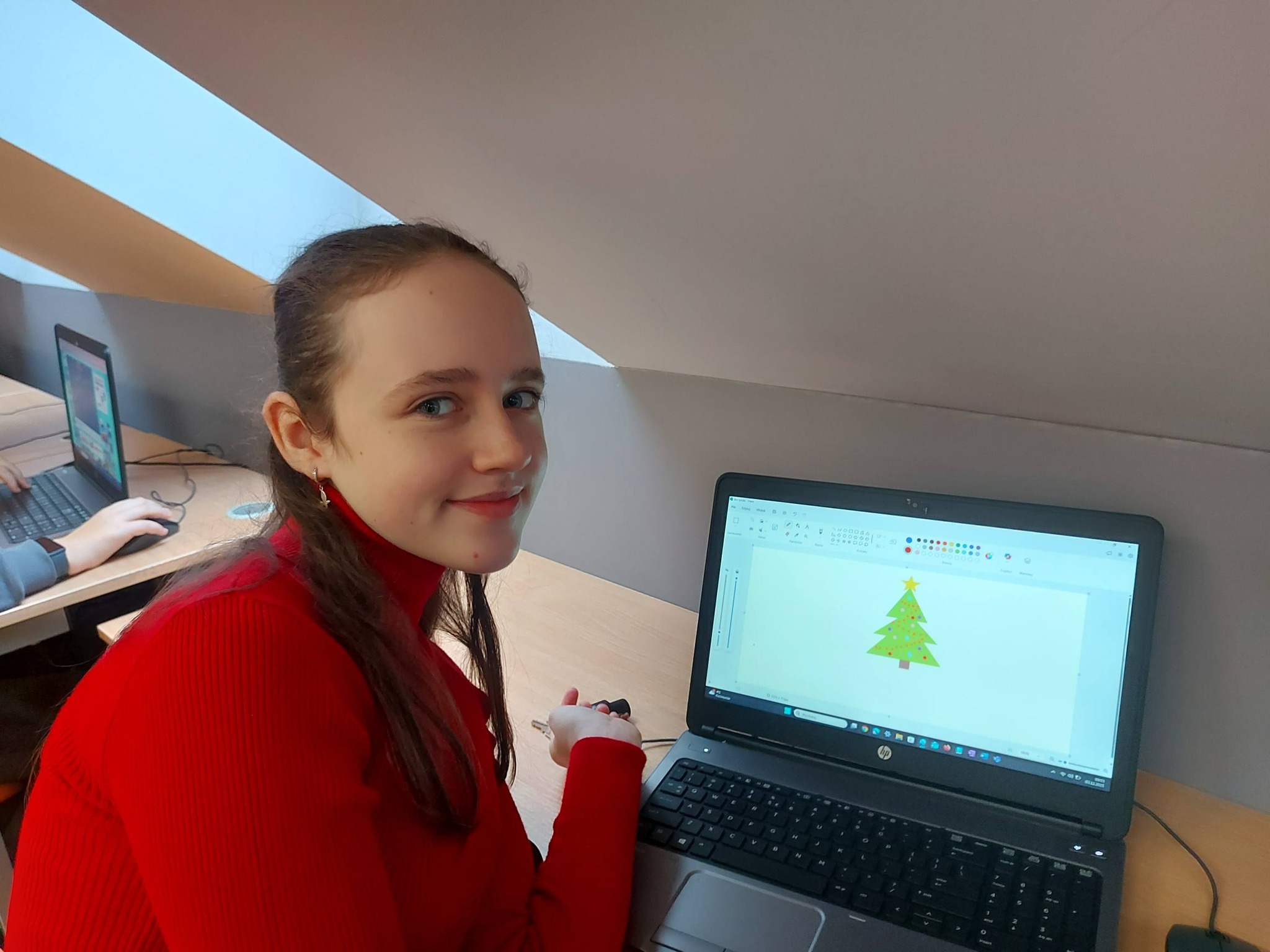 Nie zabrakło również nowoczesnych działań – wykonywaliśmy zimowe prace plastyczne w programie Paint, a także kodowaliśmy piękną choinkę, łącząc świąteczną zabawę z nauką logicznego myślenia 🎄💻