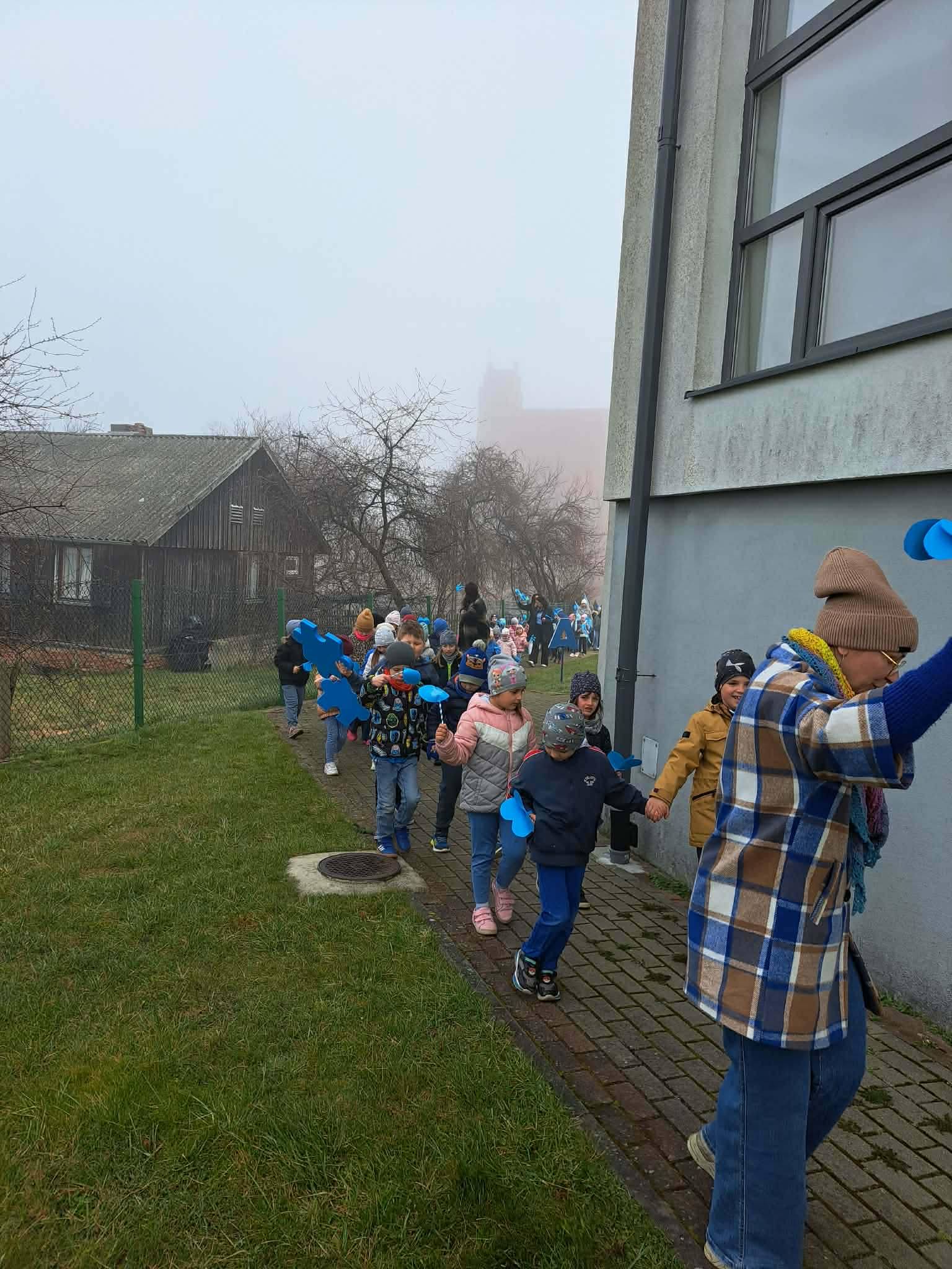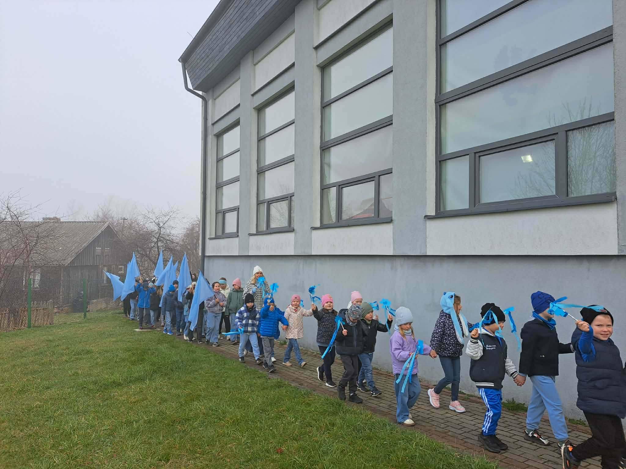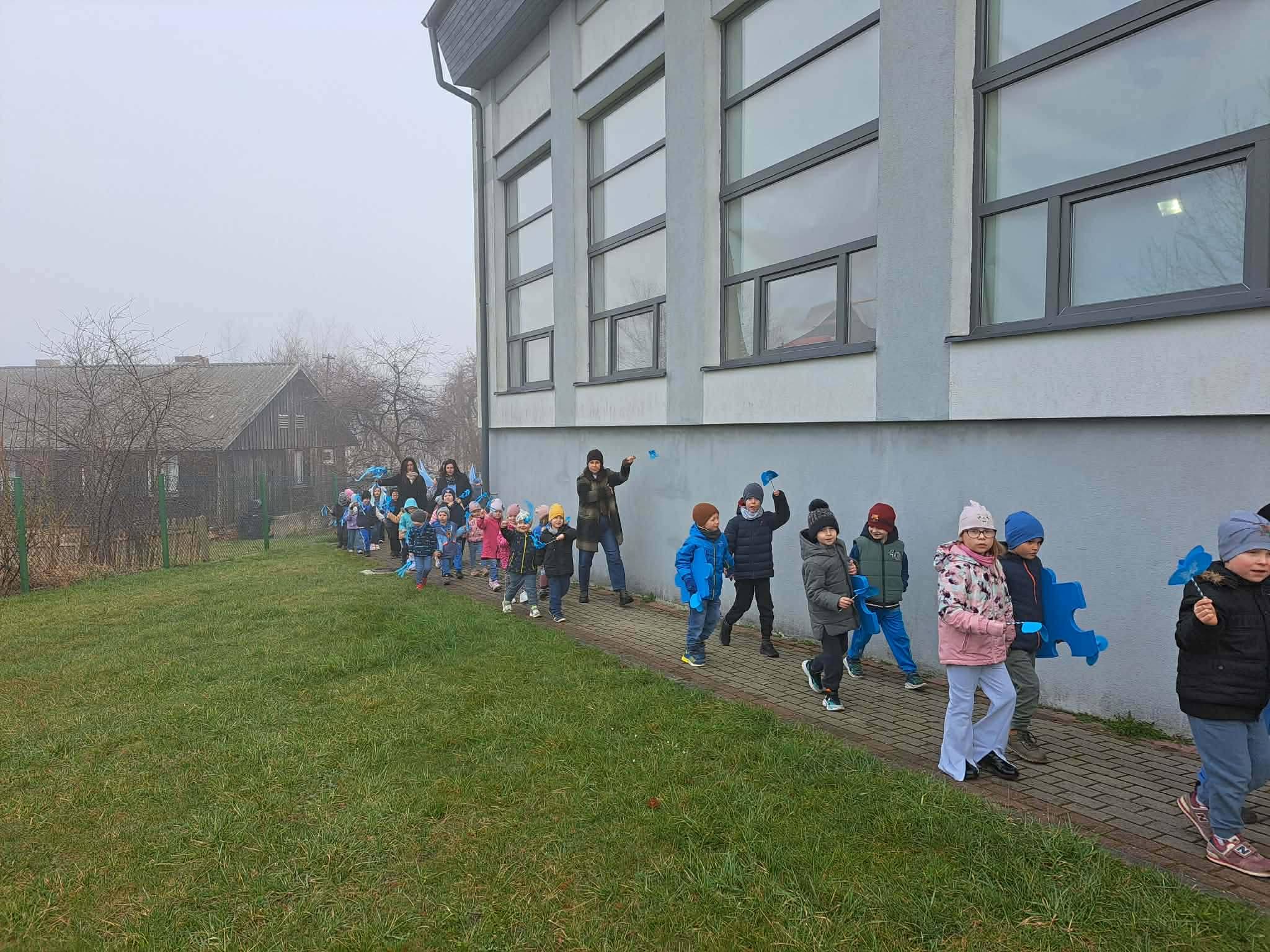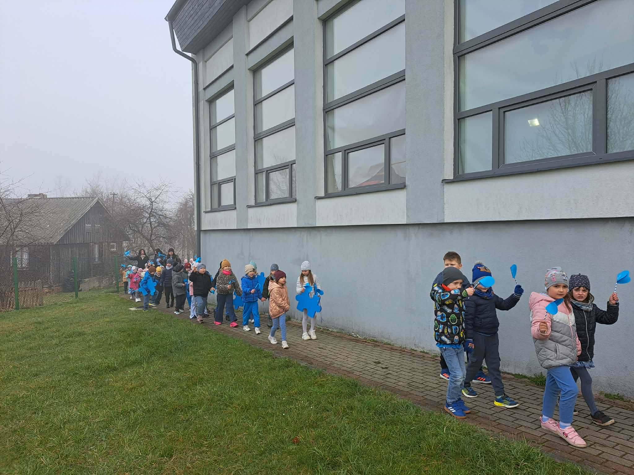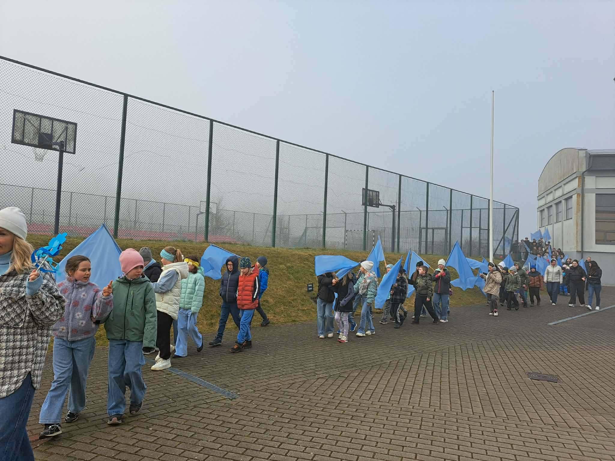 O godzinie 8:30 rozpoczęliśmy obchody uroczystym przemarszem. Uczniowie, niosąc niebieskie flagi oraz symbole puzzli 🧩, wyrazili wsparcie dla osób w spektrum autyzmu. Kolor niebieski 💙 jest międzynarodowym symbolem solidarności – oznacza nadzieję, akceptację oraz budowanie świadomości społecznej. Autyzm to zaburzenie neurorozwojowe, które wpływa na sposób komunikowania się, nawiązywania relacji oraz postrzegania świata. Każda osoba w spektrum jest inna – ma swoje mocne strony, zainteresowania i potrzeby. Dlatego tak ważne jest, aby rozwijać empatię, cierpliwość i otwartość wobec różnorodności, ucząc się wzajemnego szacunku i zrozumienia 🌍
