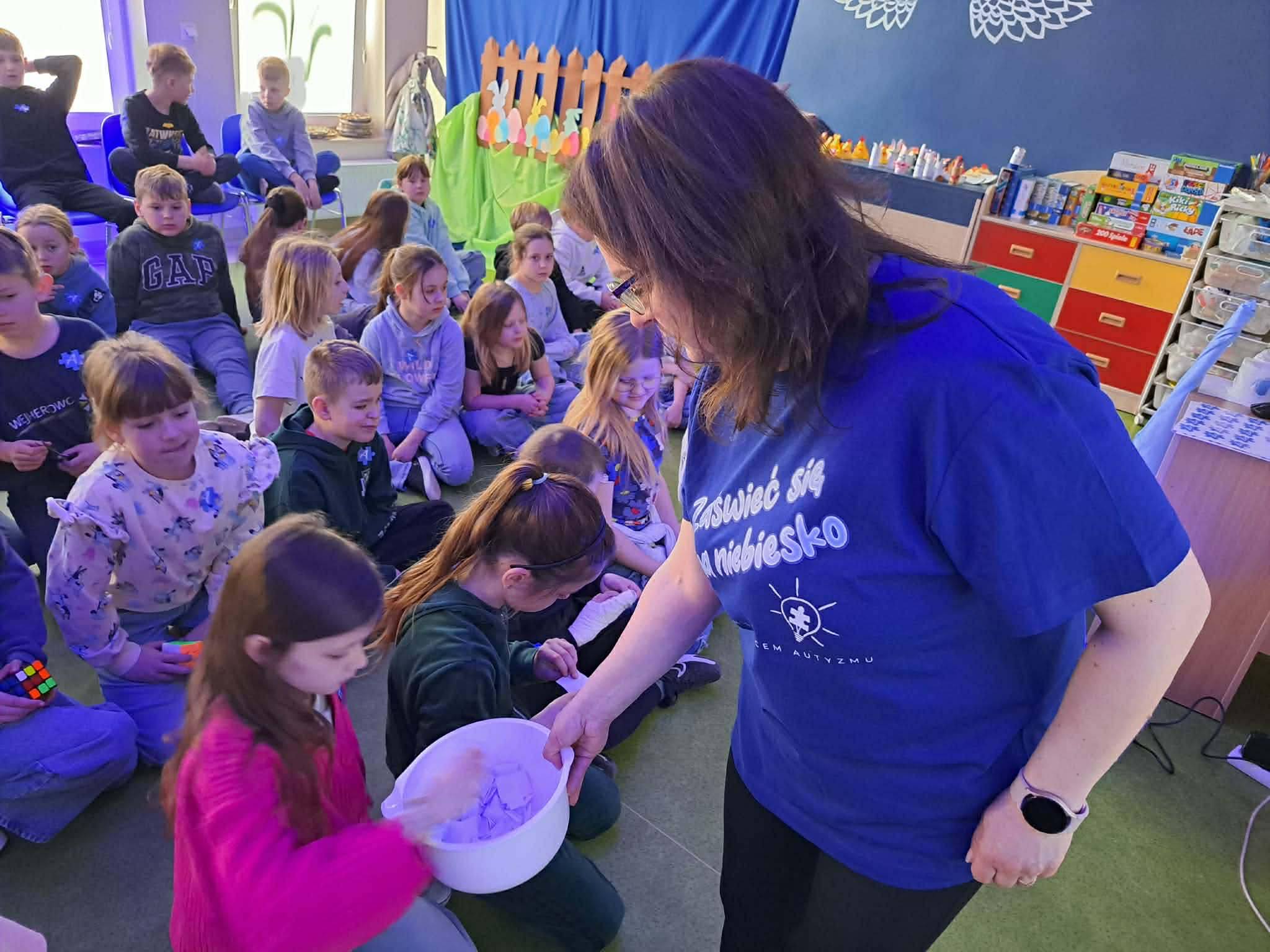Kolejnym punktem dnia były zajęcia edukacyjne przygotowane przez panią Angelikę Gadomską. Uczniowie klas 1–3 oraz 4–8 mieli okazję lepiej poznać temat autyzmu, zrozumieć potrzeby innych oraz dowiedzieć się, jak ważne są szacunek i otwartość 🌱