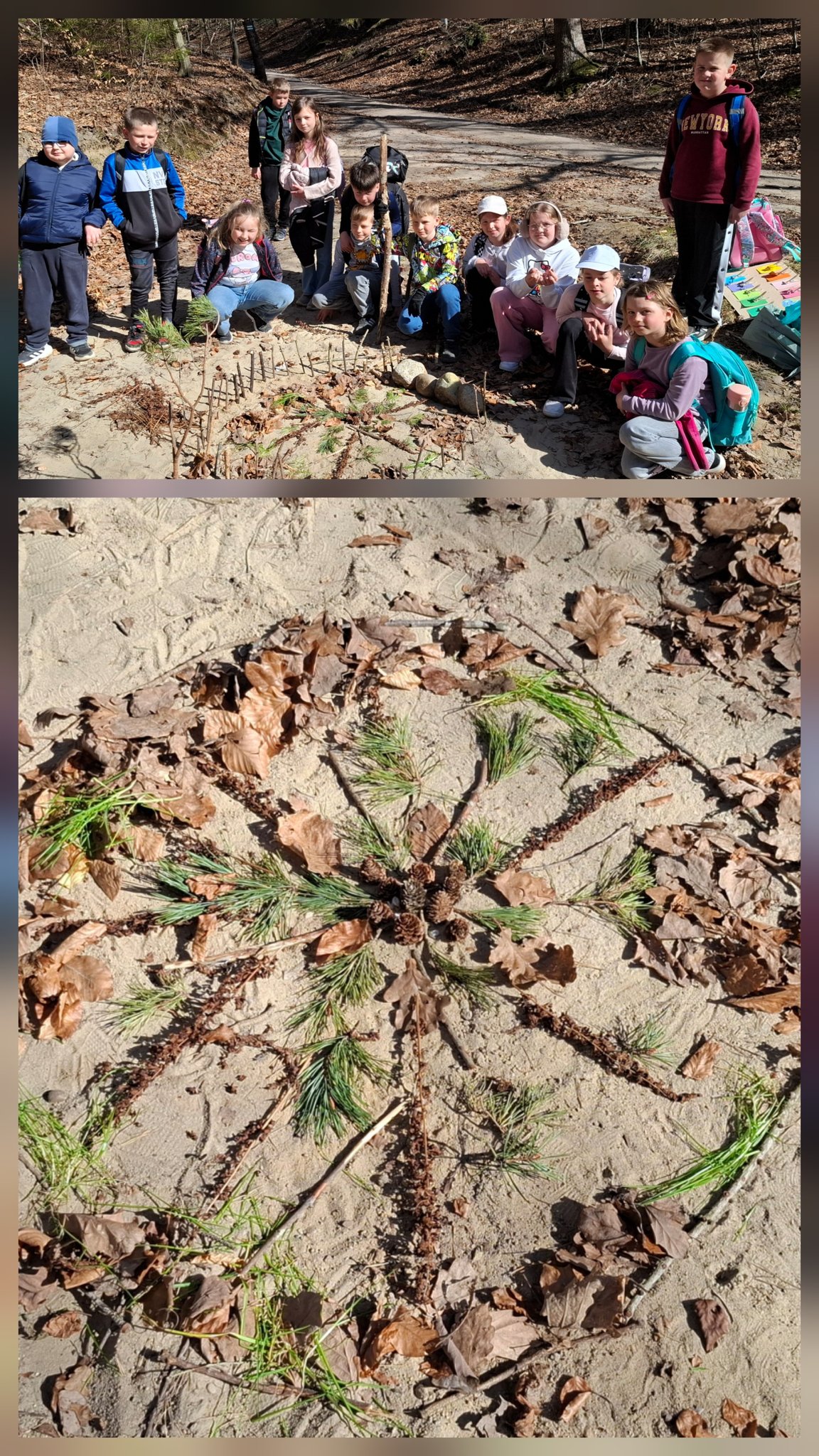 🎨🌷 Klasa 2a wybrała się na wiosenną wyprawę, podczas której odkrywała bogactwo kolorów natury. Spacer zamienił się w prawdziwą przyrodniczą przygodę – uczniowie zbierali liście, kwiaty i inne naturalne skarby, z których stworzyli zachwycającą mandalę 🍀✨ . Towarzyszyły temu liczne zadania i aktywności na świeżym powietrzu ☀️🌳 , które dostarczyły dzieciom mnóstwo radości i energii.