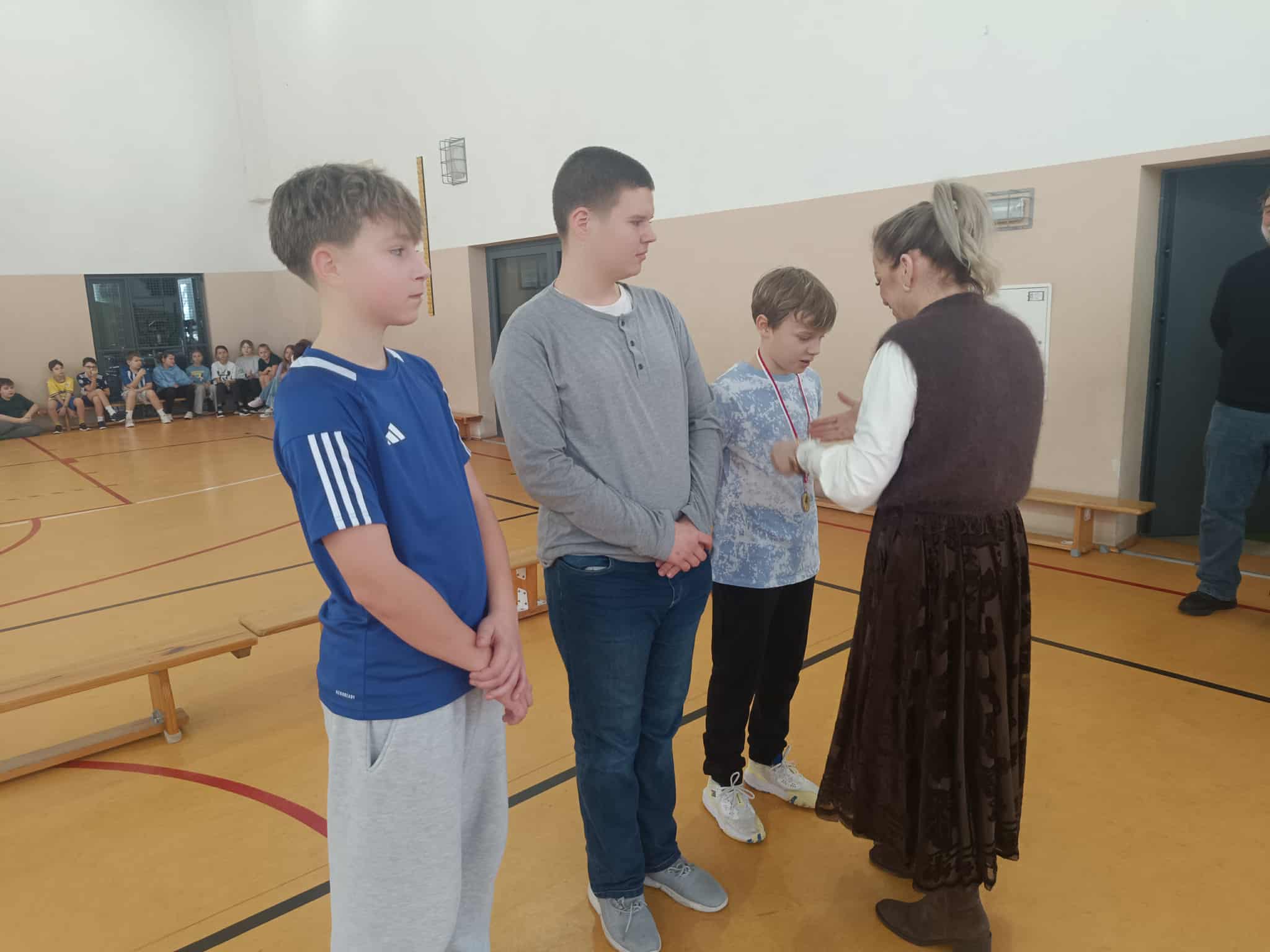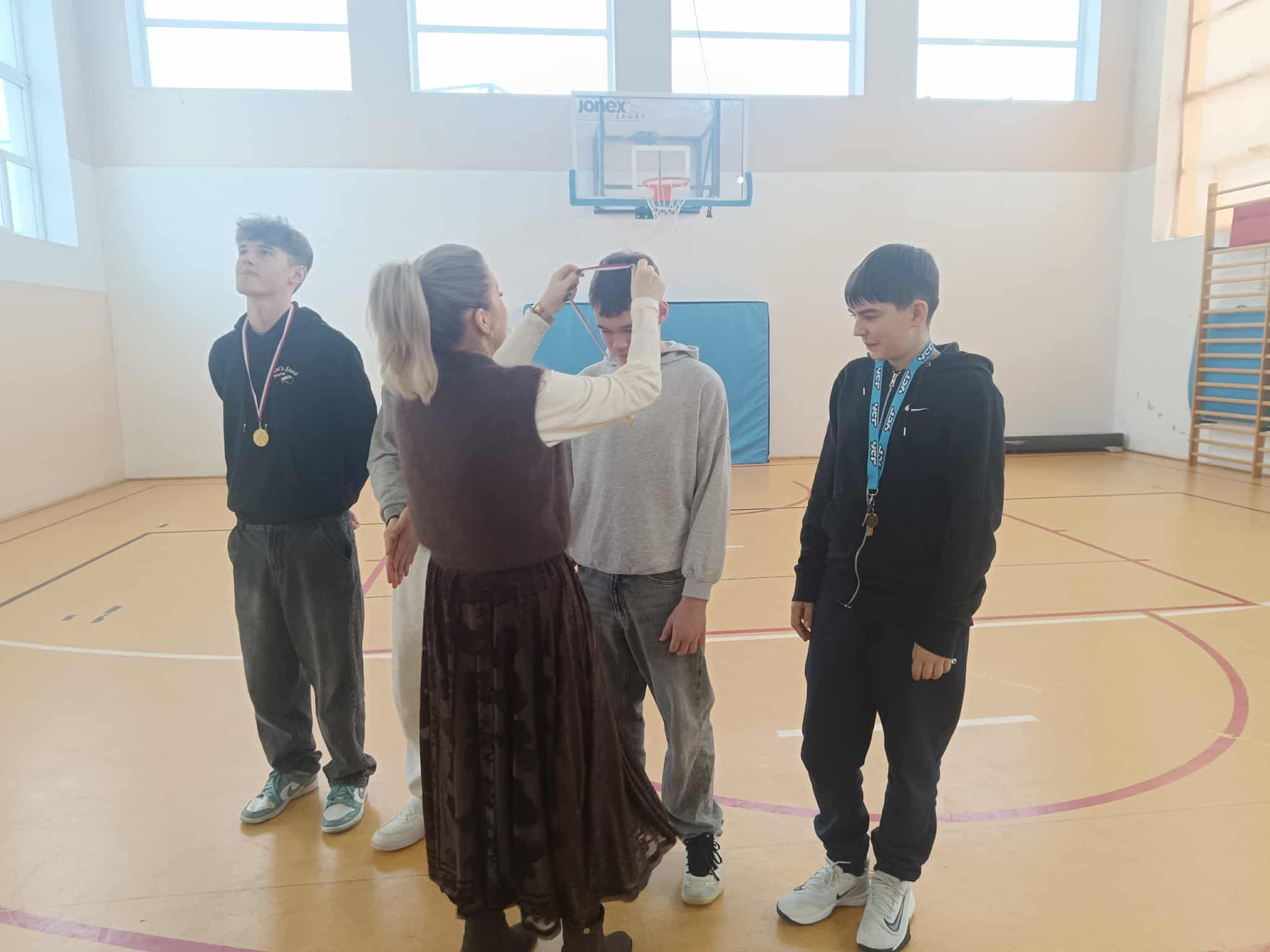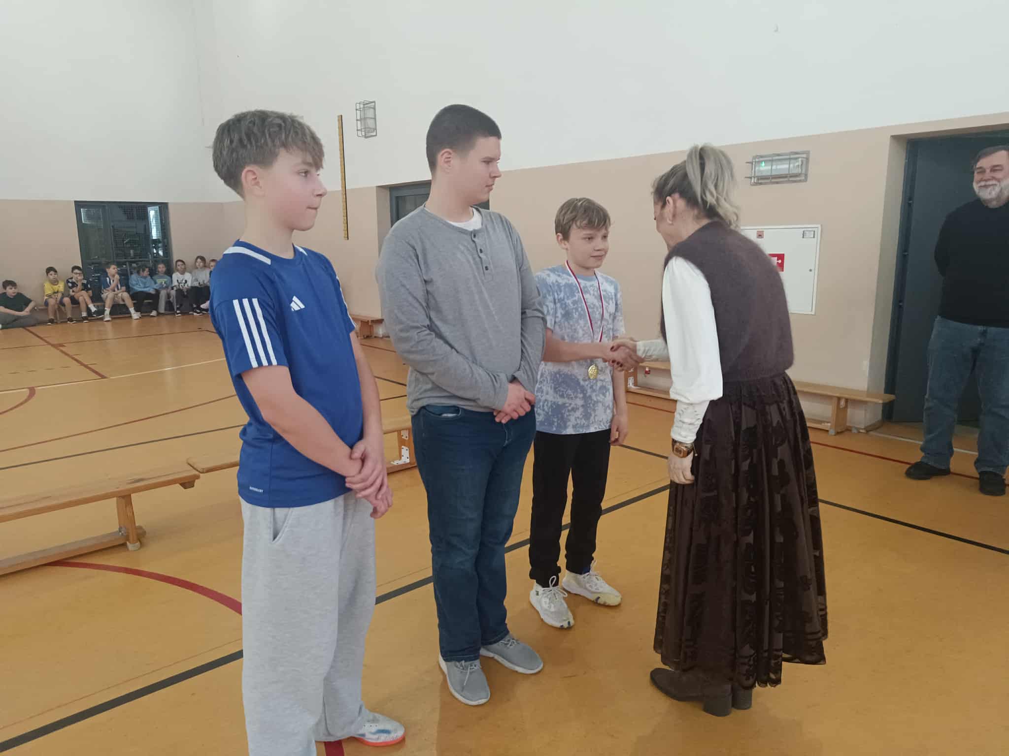 🥇 Naszych zwycięzców nagrodziła Pani Dyrektor, wręczając im medale – to był wyjątkowy i bardzo uroczysty moment, który podkreślił rangę sportowych zmagań.