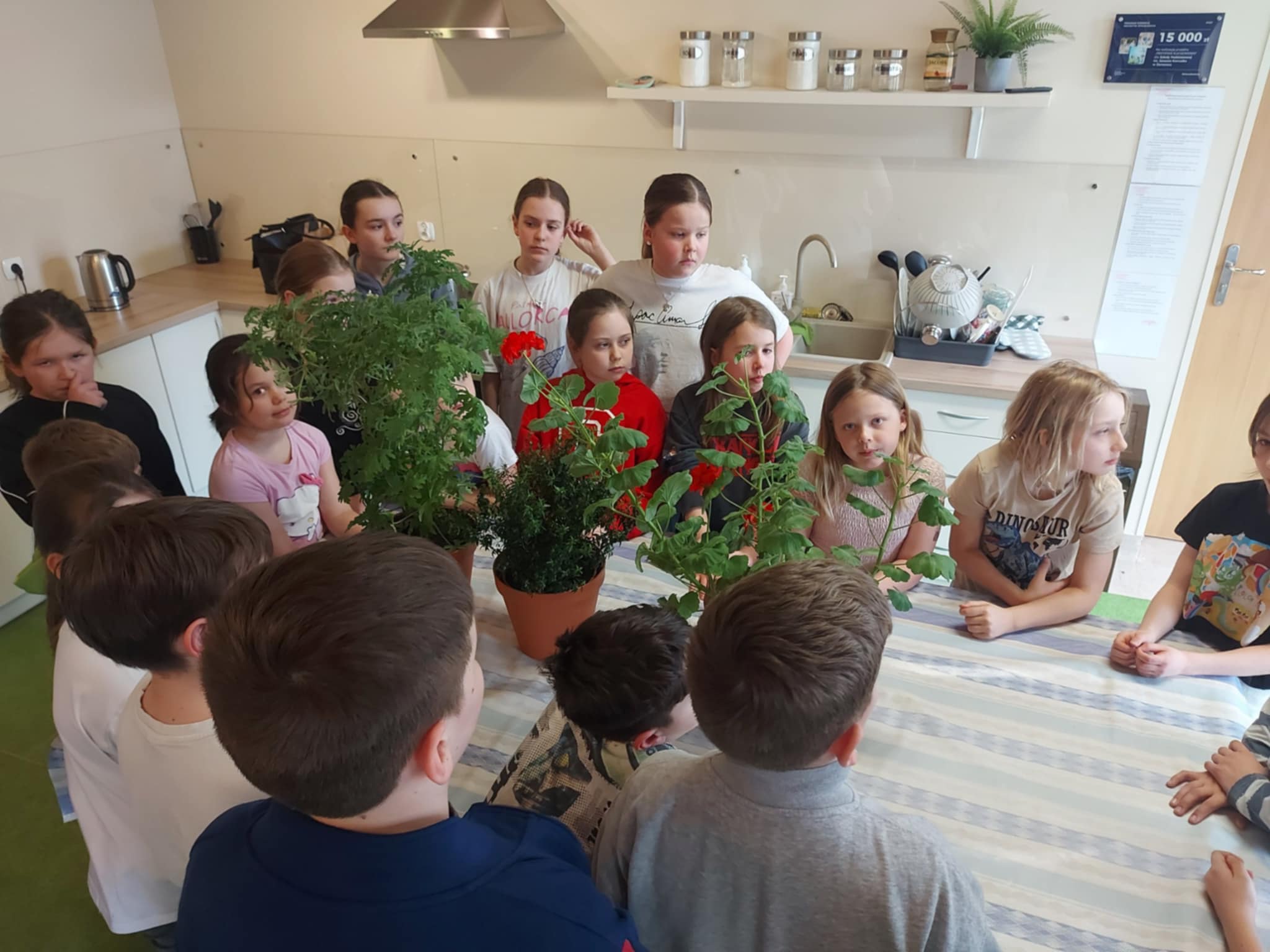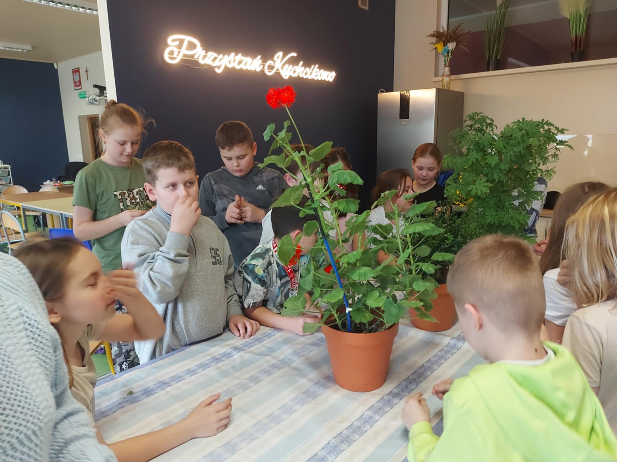 🎶 Dzieci z zaangażowaniem uczyły się i śpiewały kaszubskie nuty, odkrywając piękno lokalnego języka i muzyki. 🌊🌞 Pani Beatka przeprowadziła interesujące warsztaty przyrodnicze 🌱, podczas których uczniowie poznali charakterystyczne rośliny Kaszub, takie jak mirt, pelargonia i geranium, oraz nauczyli się ich nazw kaszubskich.