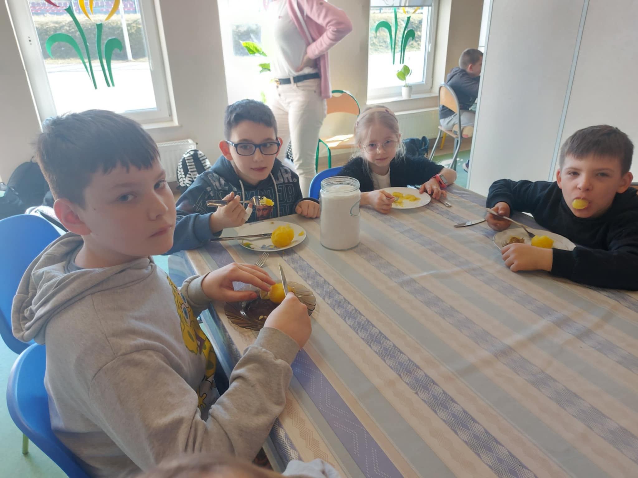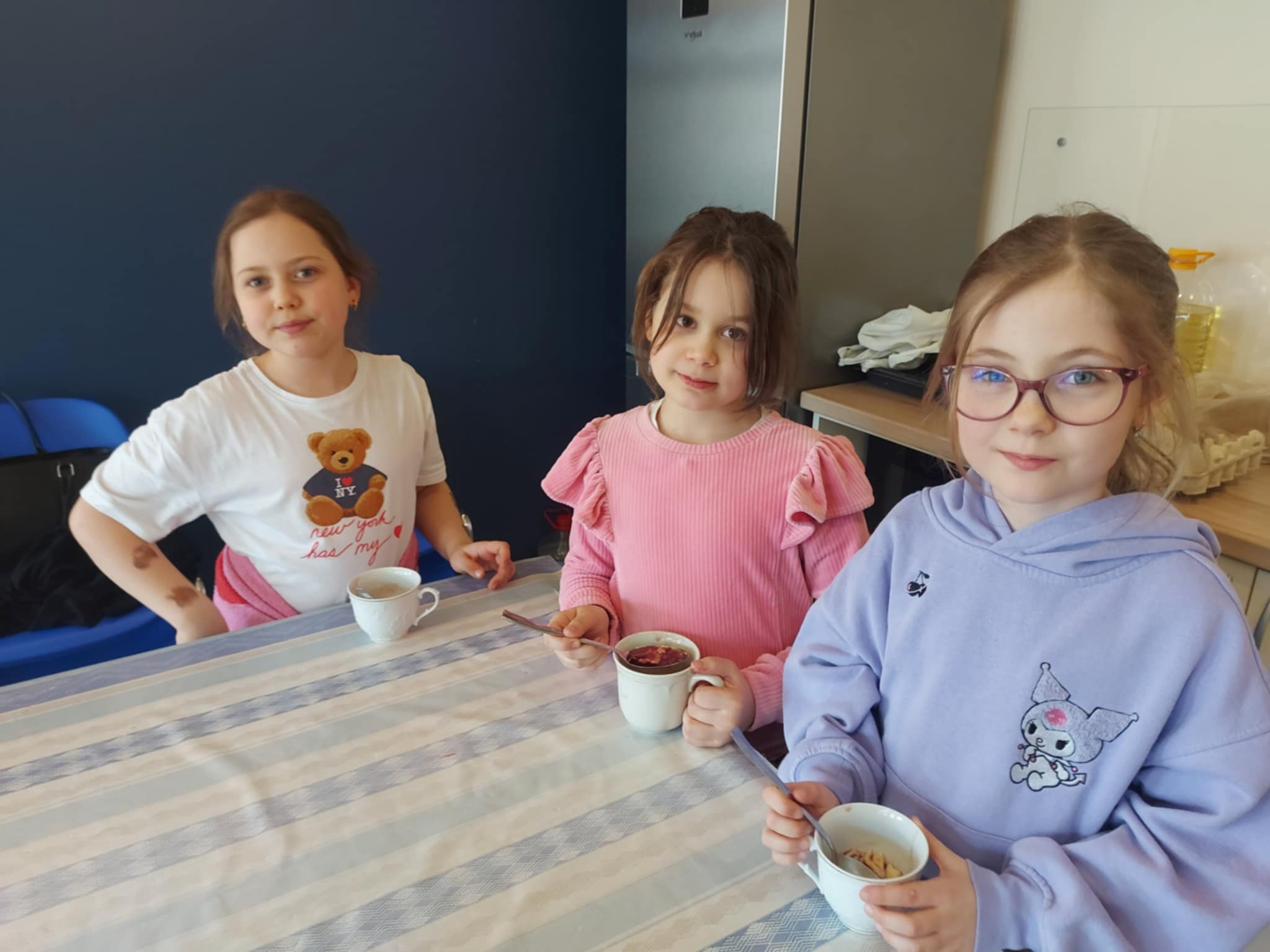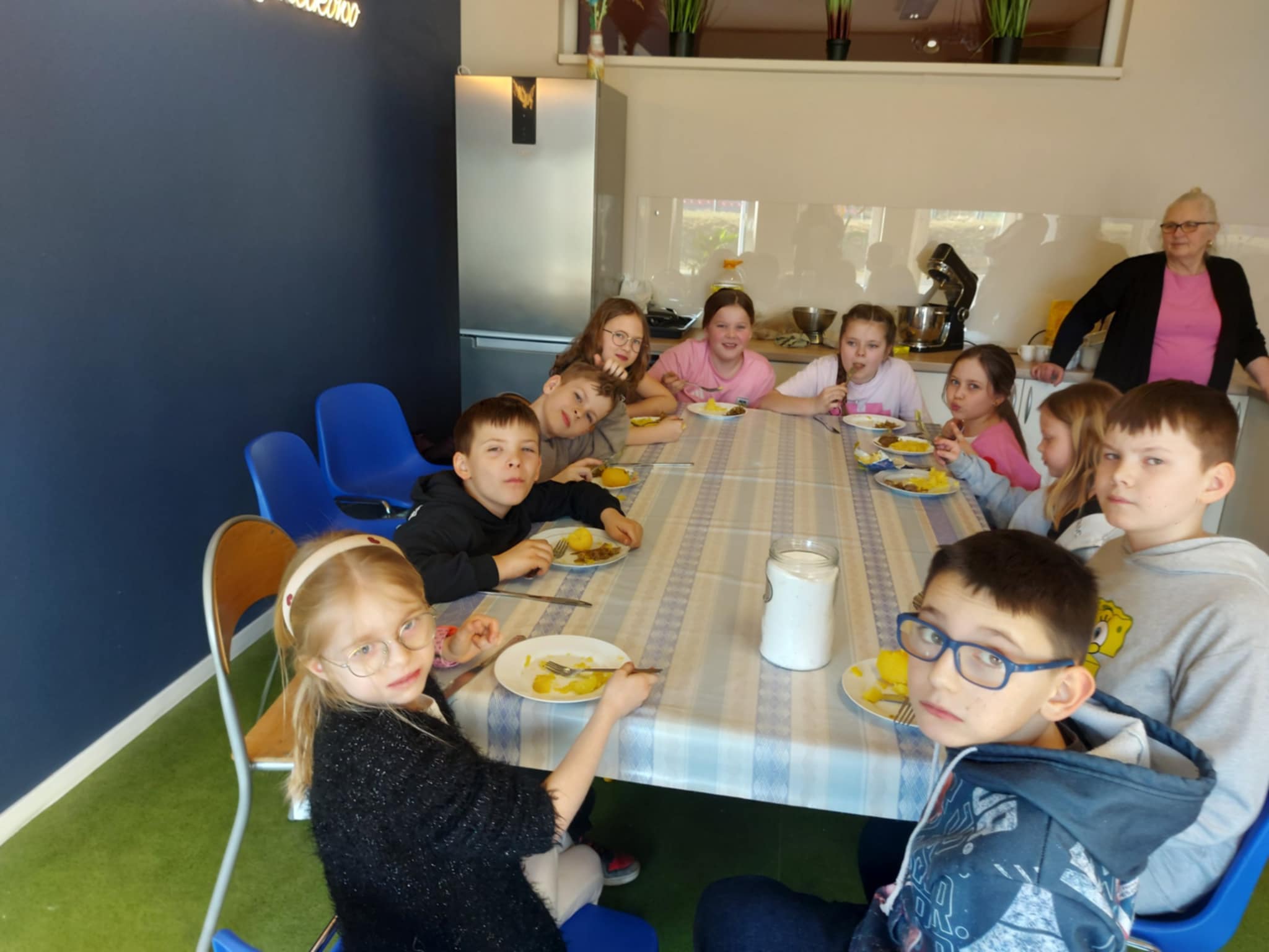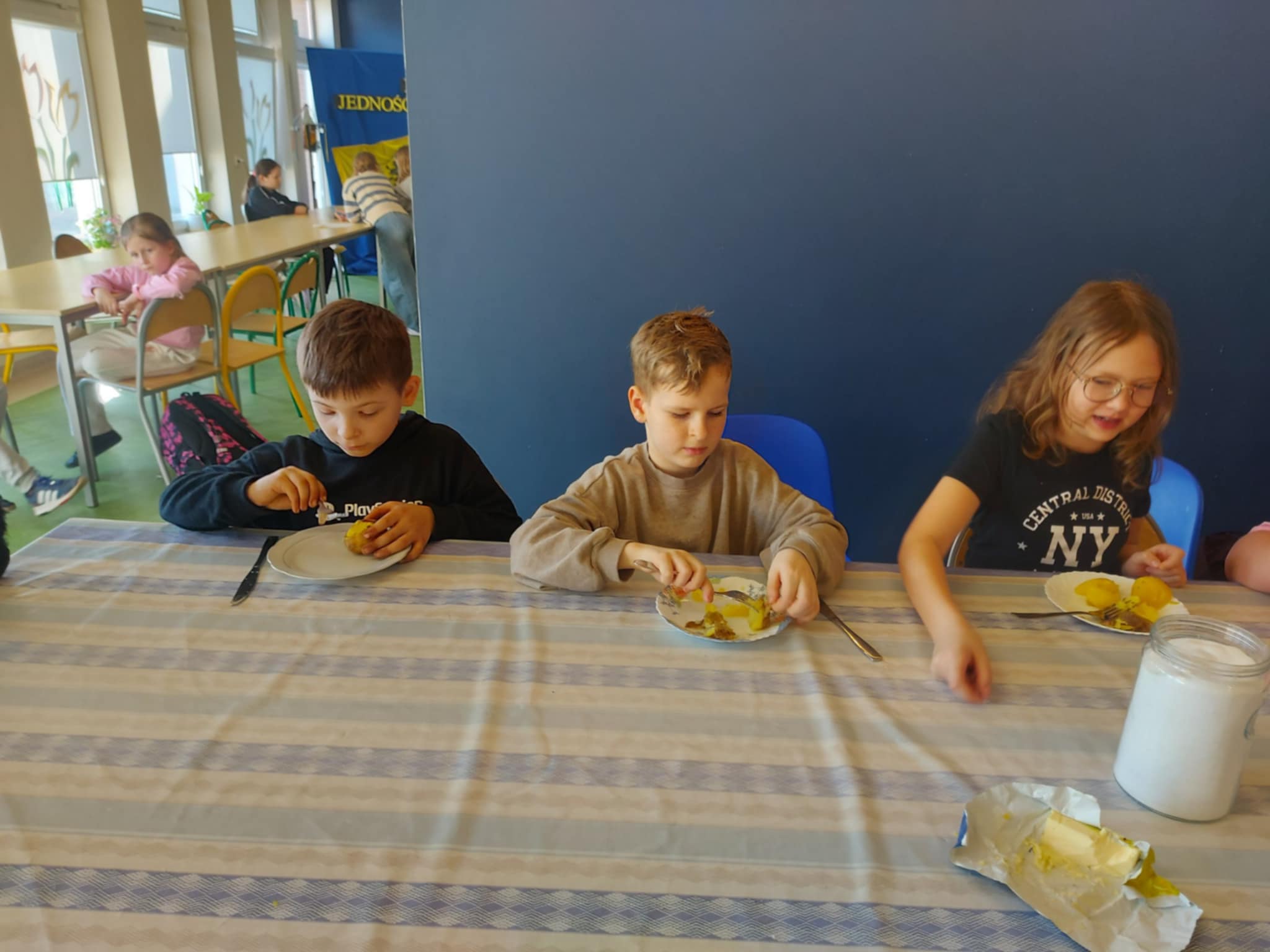 🥣🥔 Dużym zainteresowaniem cieszyła się także kuchnia kaszubska. Dzieci delektowały się smakami regionu, próbując „pulków” z masłem i solą 🧈 oraz zupy owocowej z kluskami 🍓.