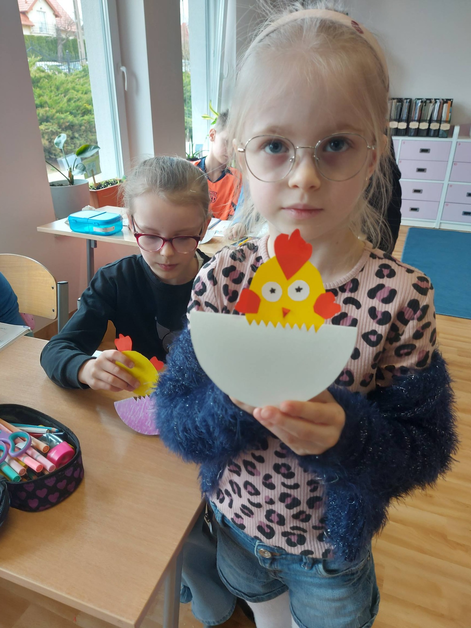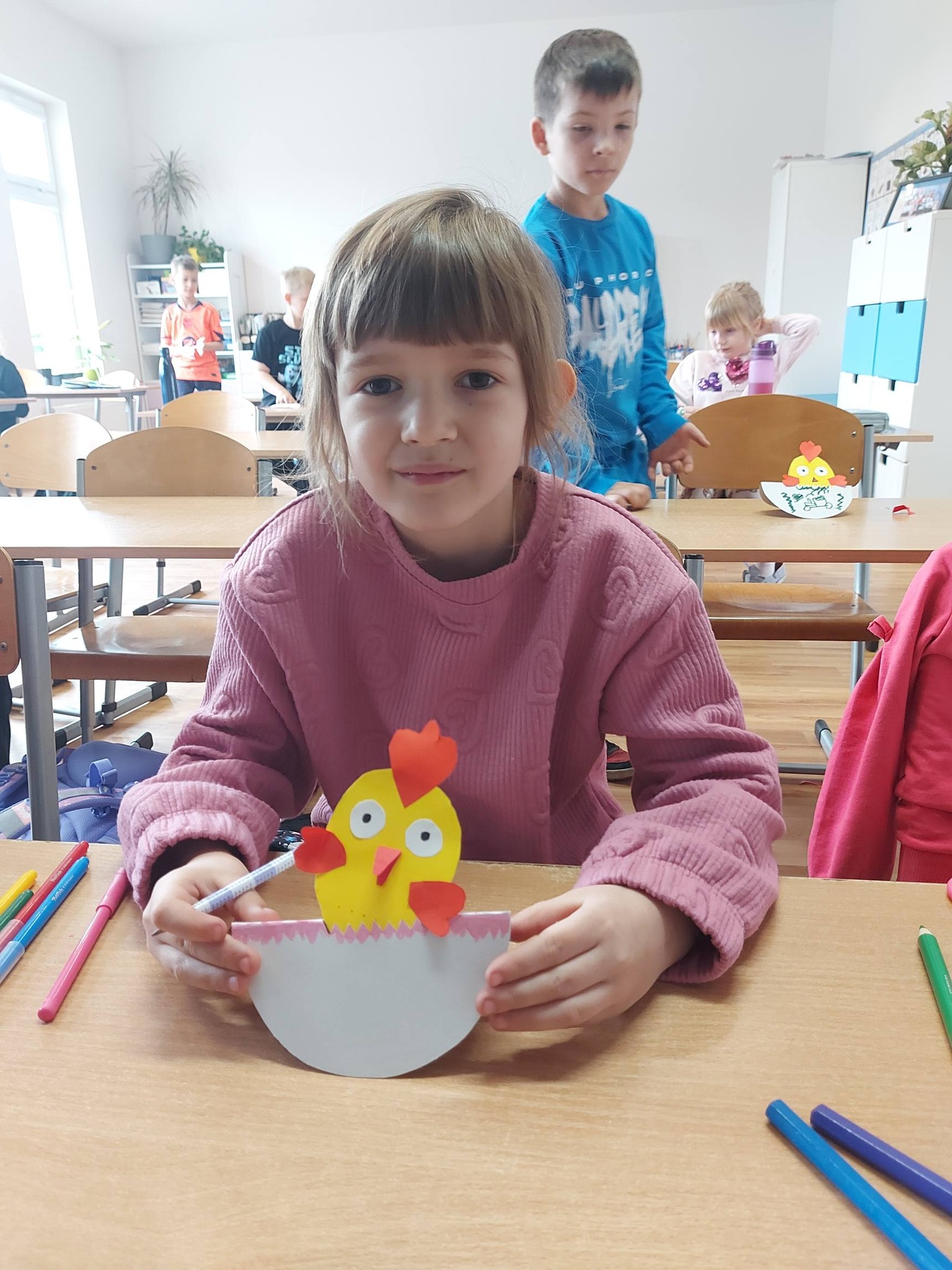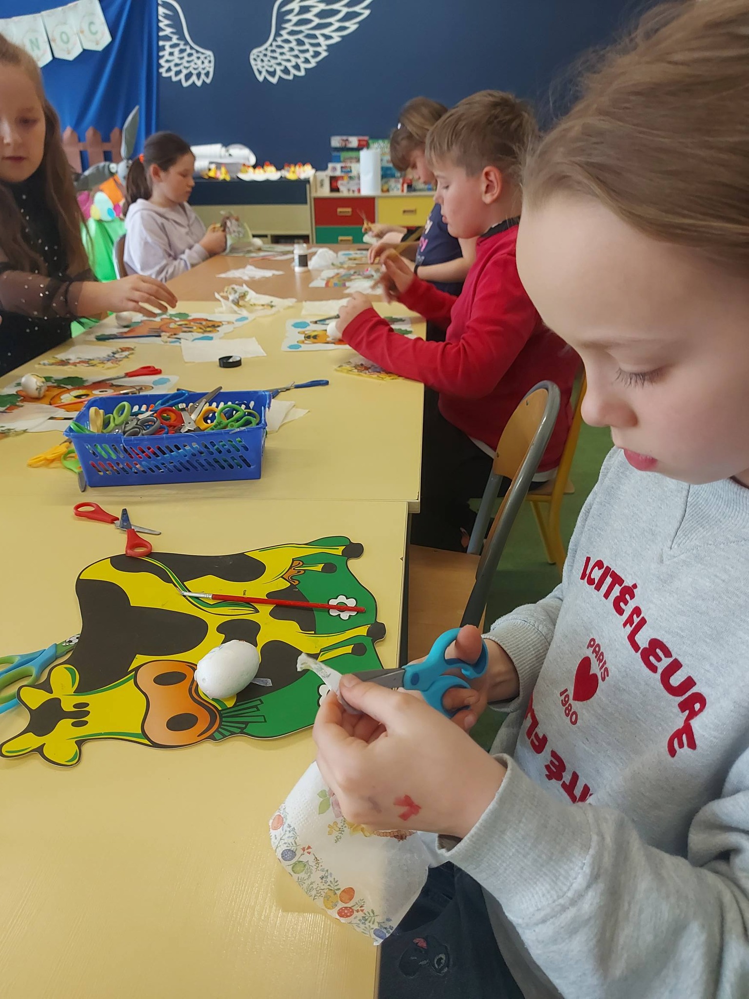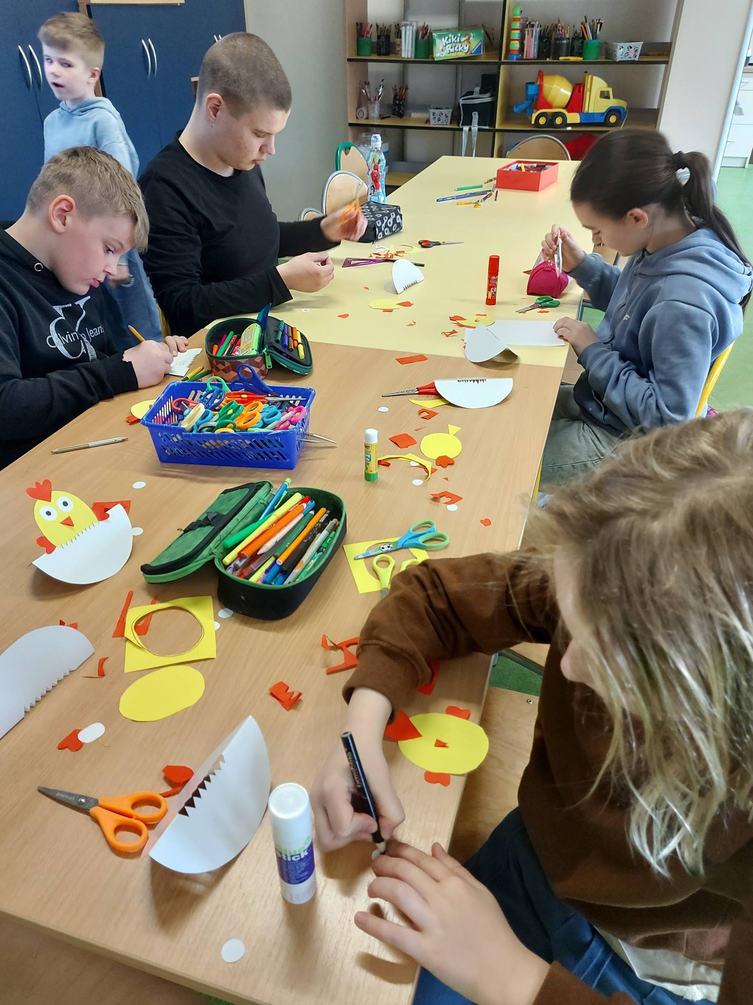 Nasi trzecioklasiści wykazali się niezwykłą starannością i pomysłowością, tworząc świąteczne koszyczki do święconki, które własnoręcznie udekorowali. Powstały również pisanki 3D, urocze kurczaczki z papieru, a także kreatywne zajączki z rolek, które wprowadziły do naszej świetlicy prawdziwie wiosenny klimat 🐰🌼