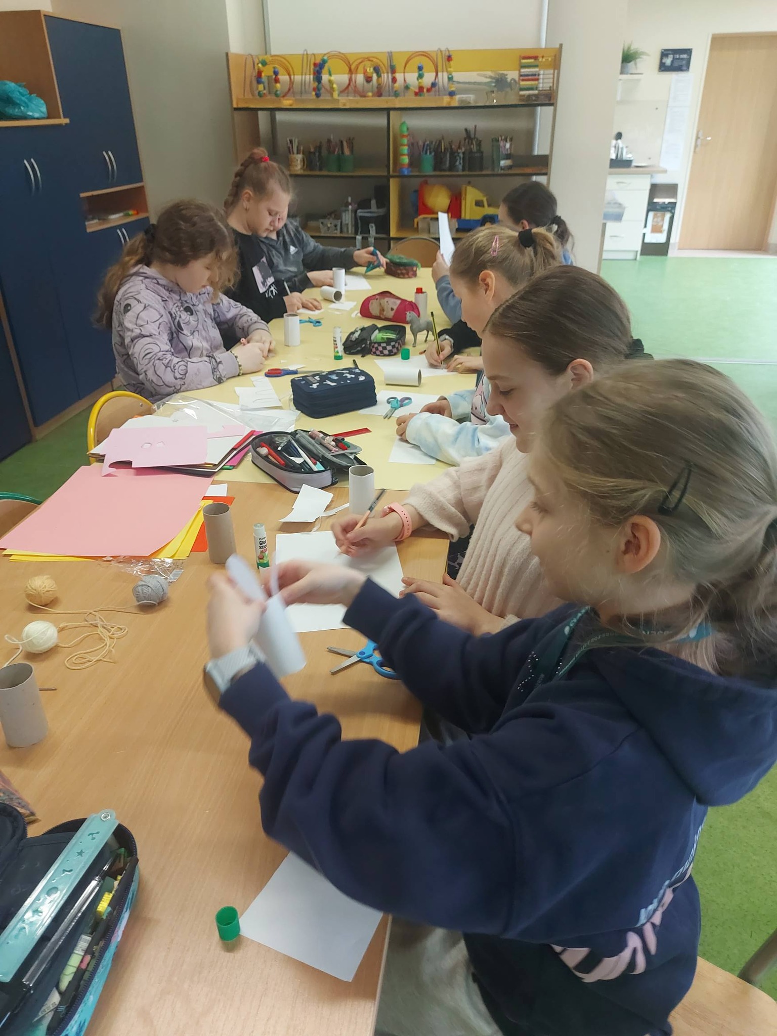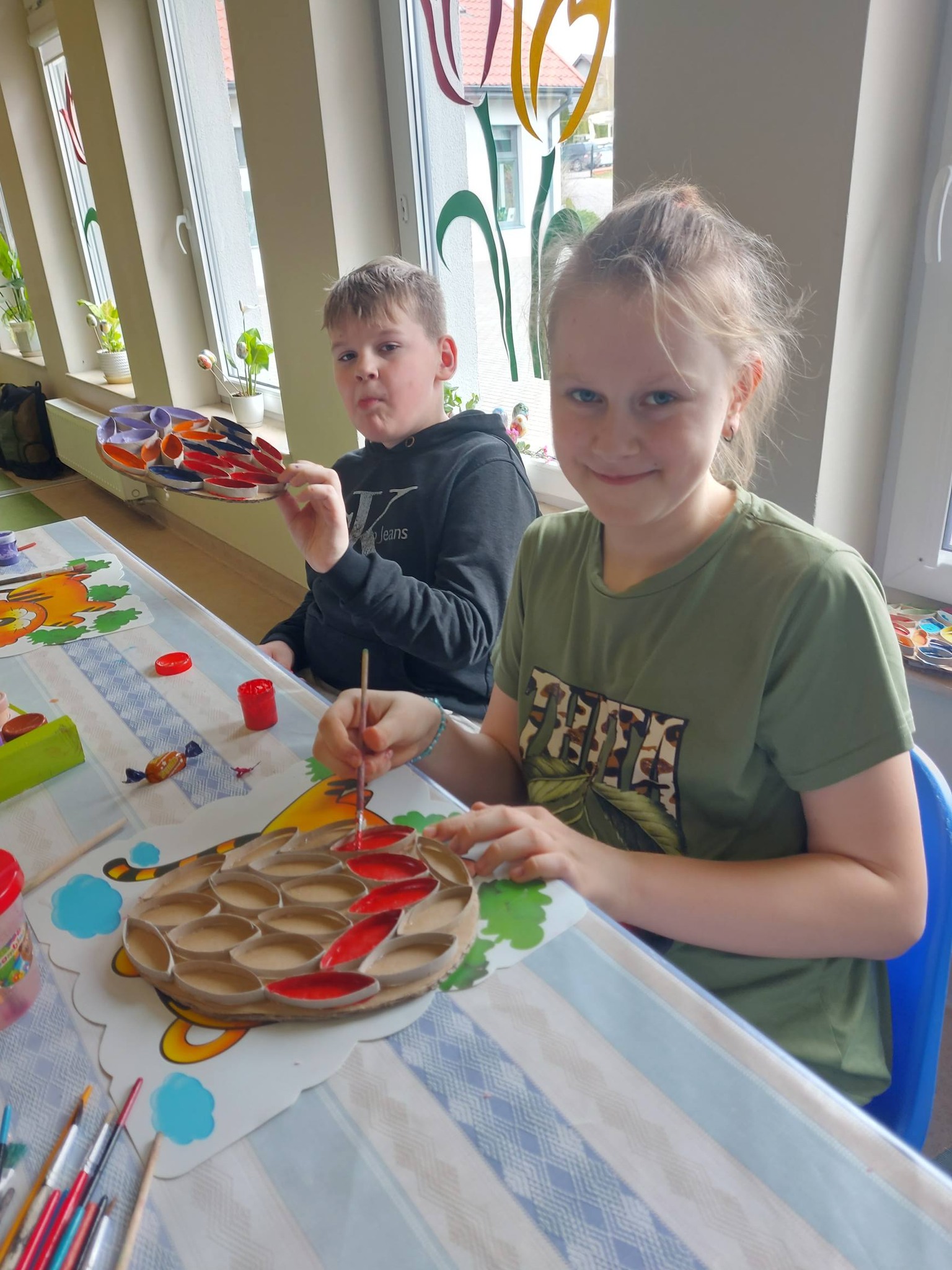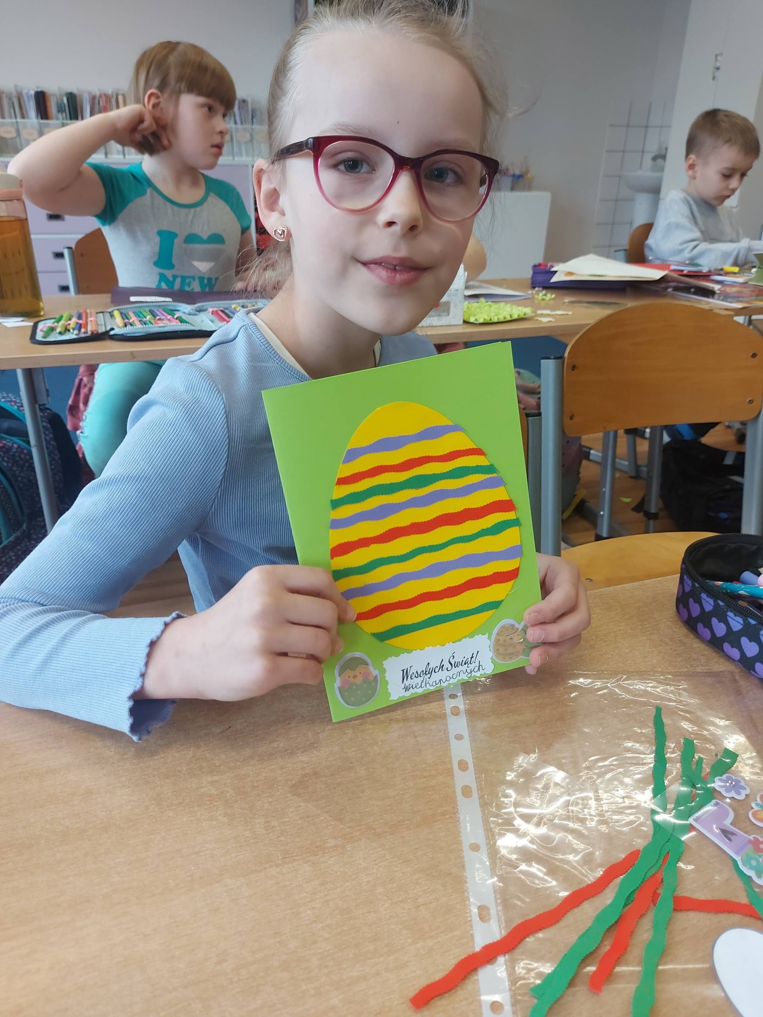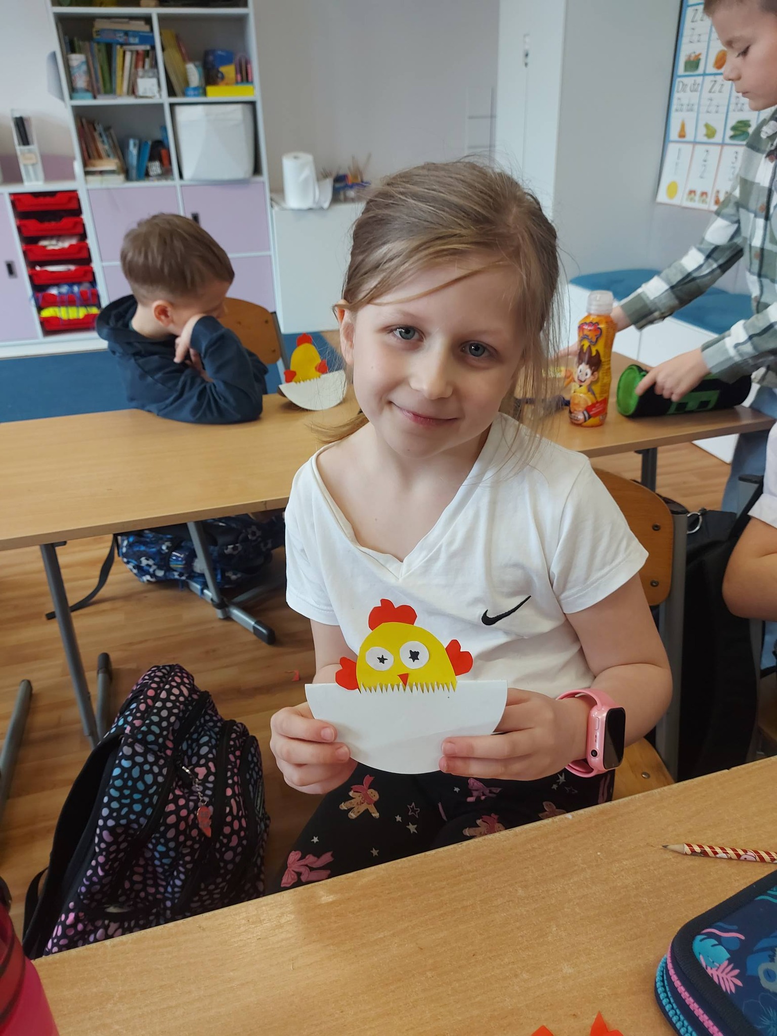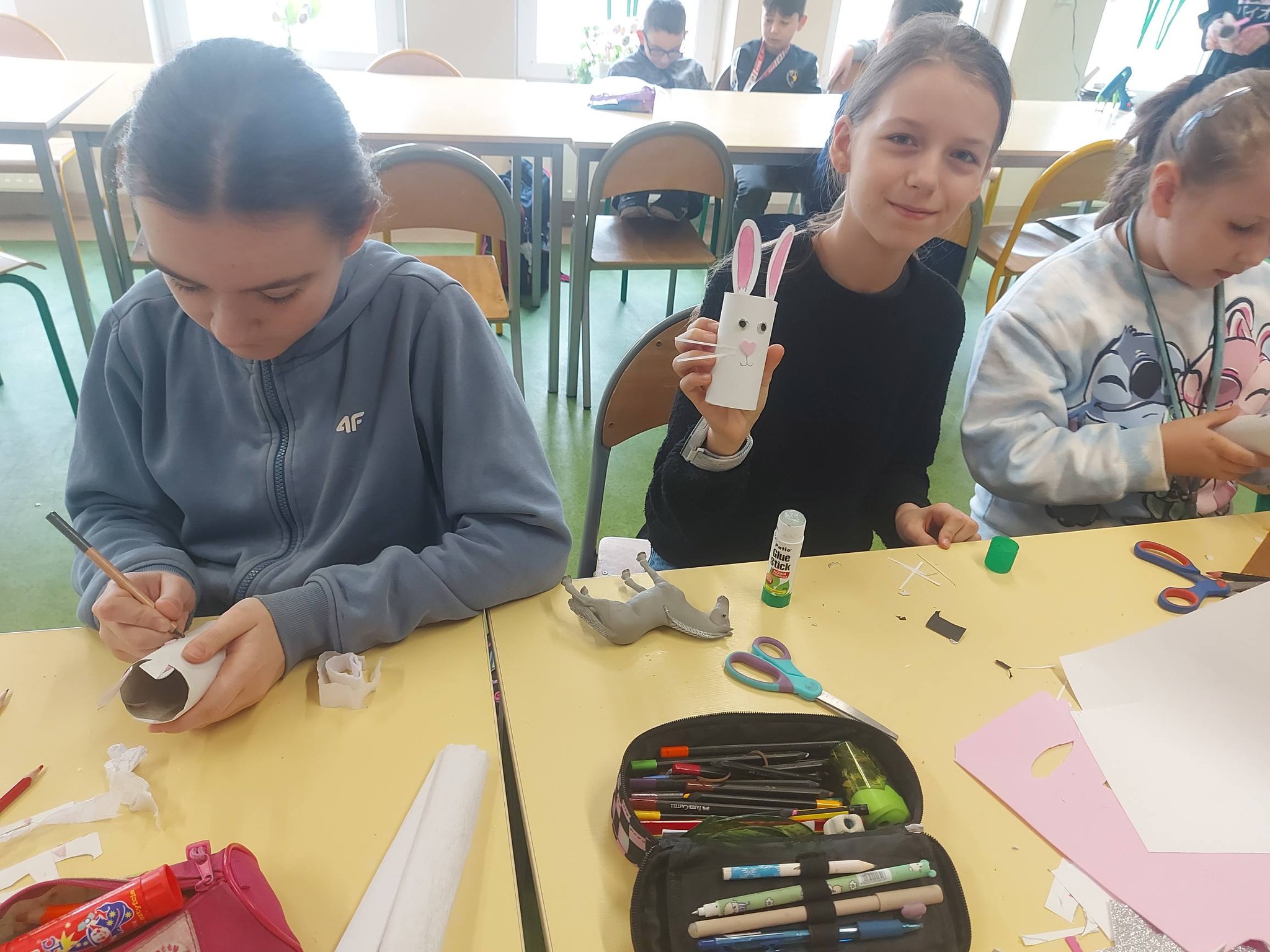Nasi trzecioklasiści wykazali się niezwykłą starannością i pomysłowością, tworząc świąteczne koszyczki do święconki, które własnoręcznie udekorowali. Powstały również pisanki 3D, urocze kurczaczki z papieru, a także kreatywne zajączki z rolek, które wprowadziły do naszej świetlicy prawdziwie wiosenny klimat 🐰🌼