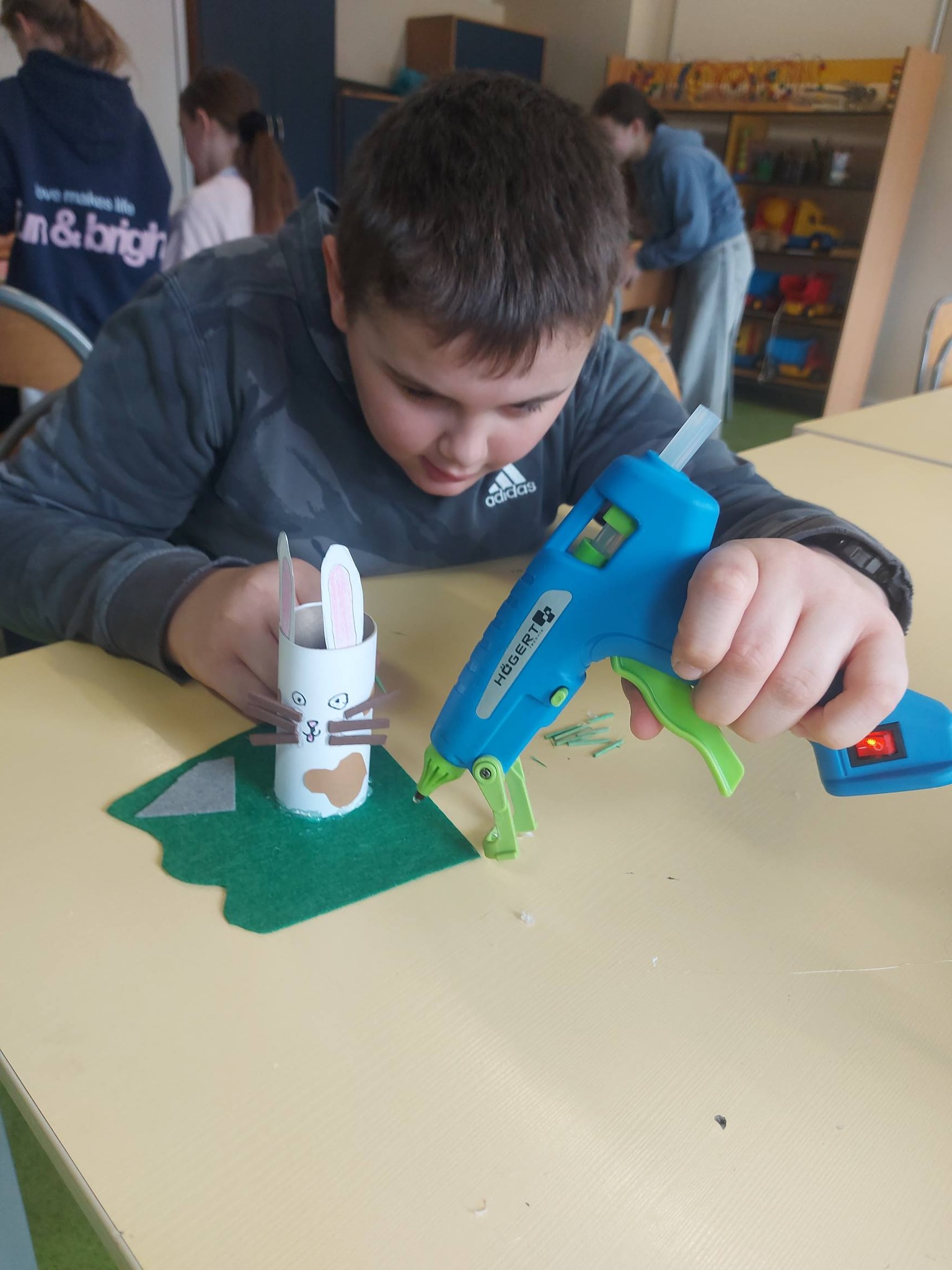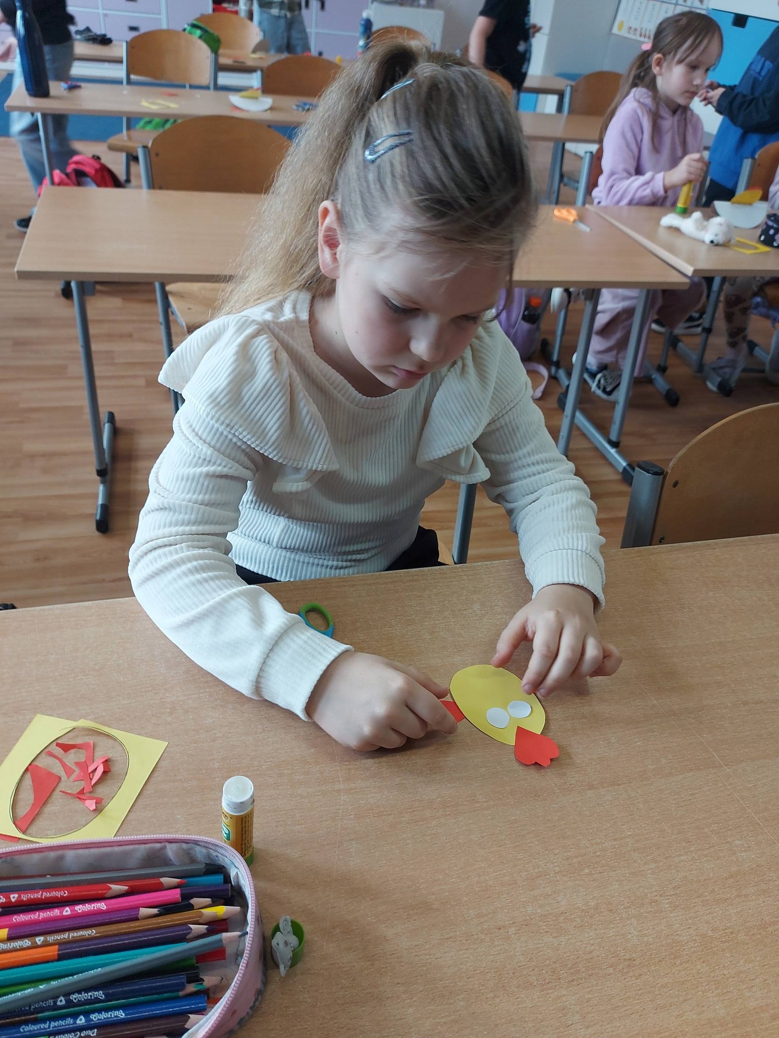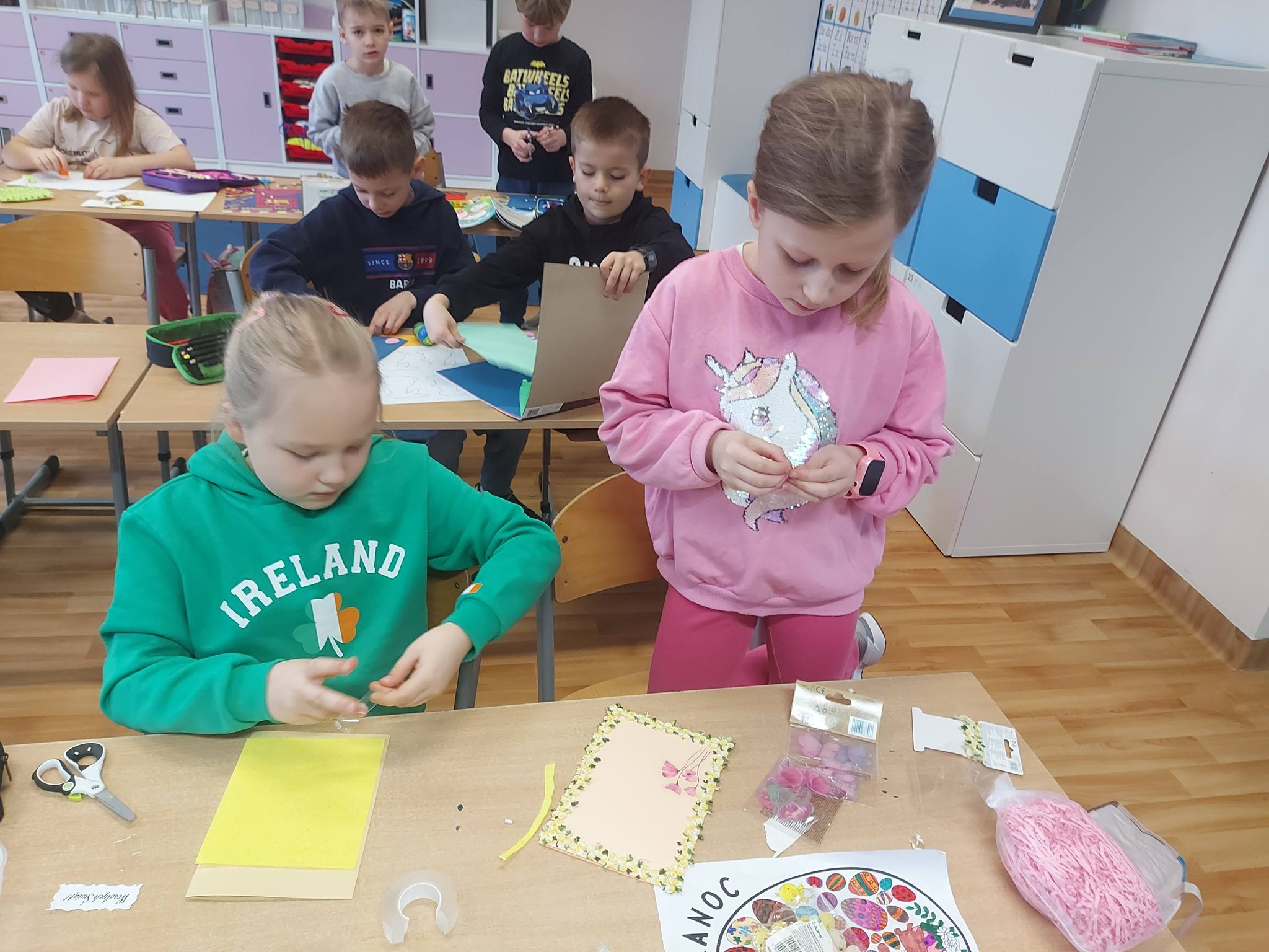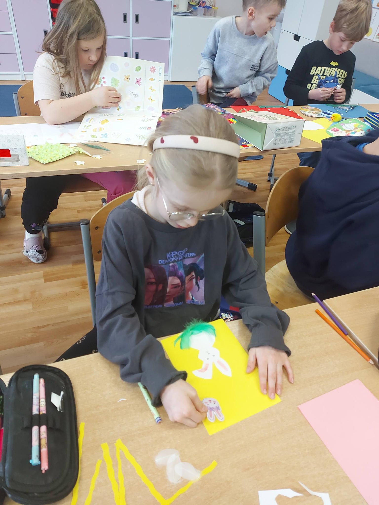 Nasi trzecioklasiści wykazali się niezwykłą starannością i pomysłowością, tworząc świąteczne koszyczki do święconki, które własnoręcznie udekorowali. Powstały również pisanki 3D, urocze kurczaczki z papieru, a także kreatywne zajączki z rolek, które wprowadziły do naszej świetlicy prawdziwie wiosenny klimat 🐰🌼