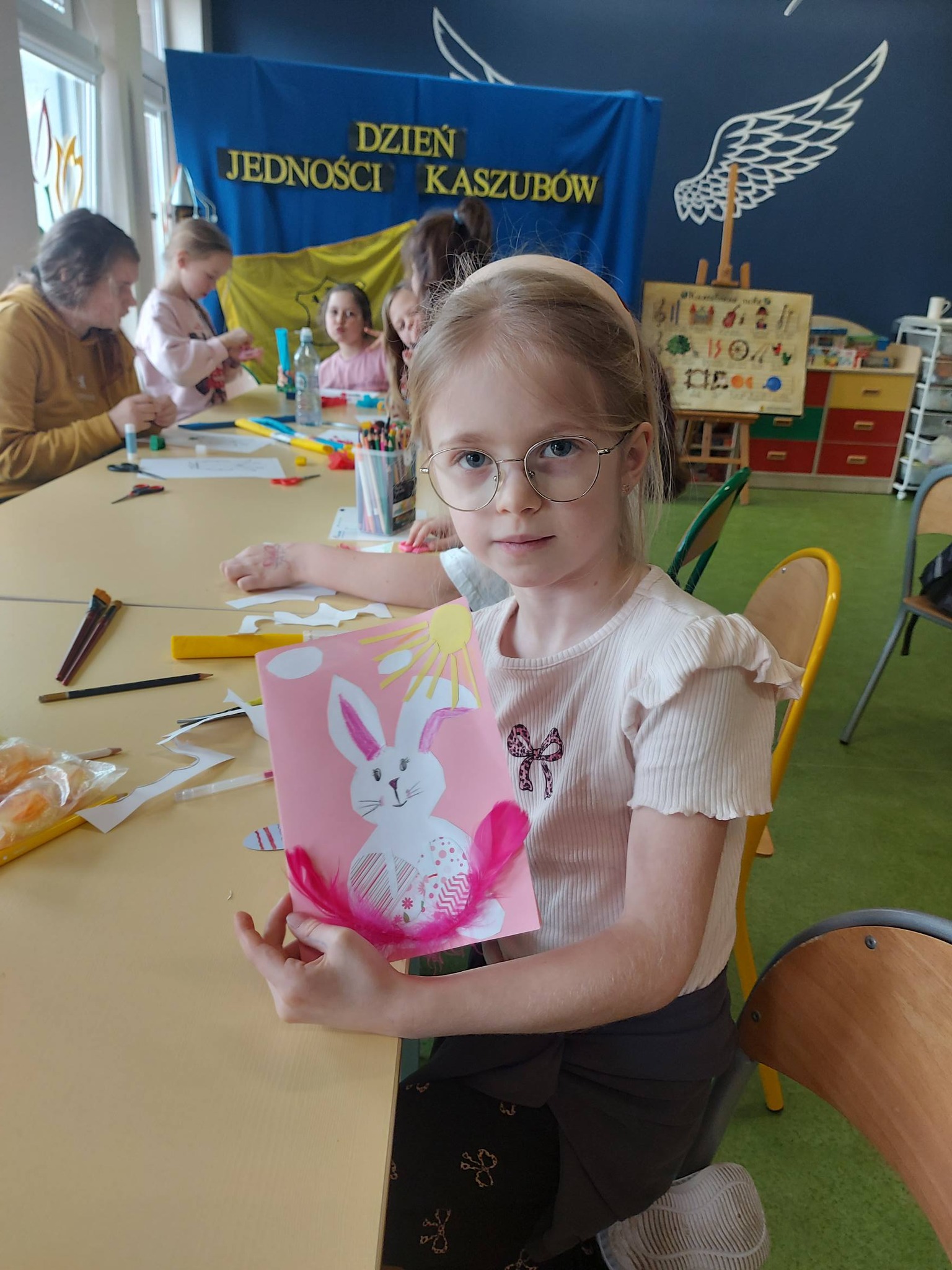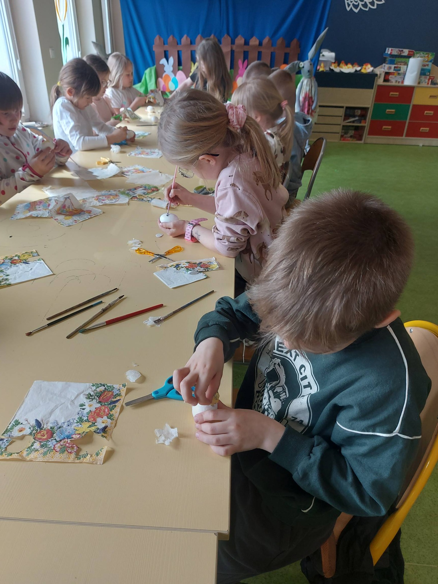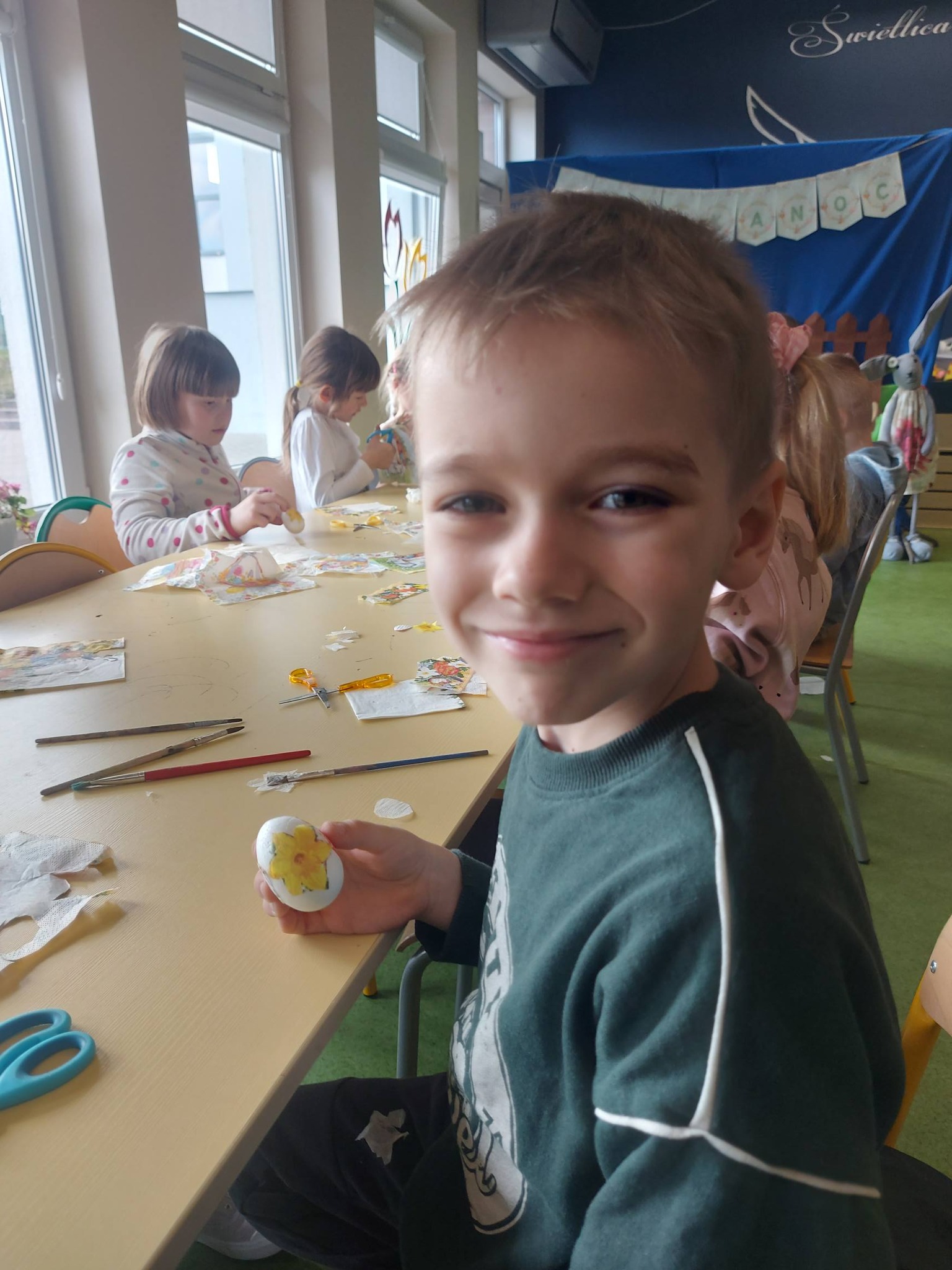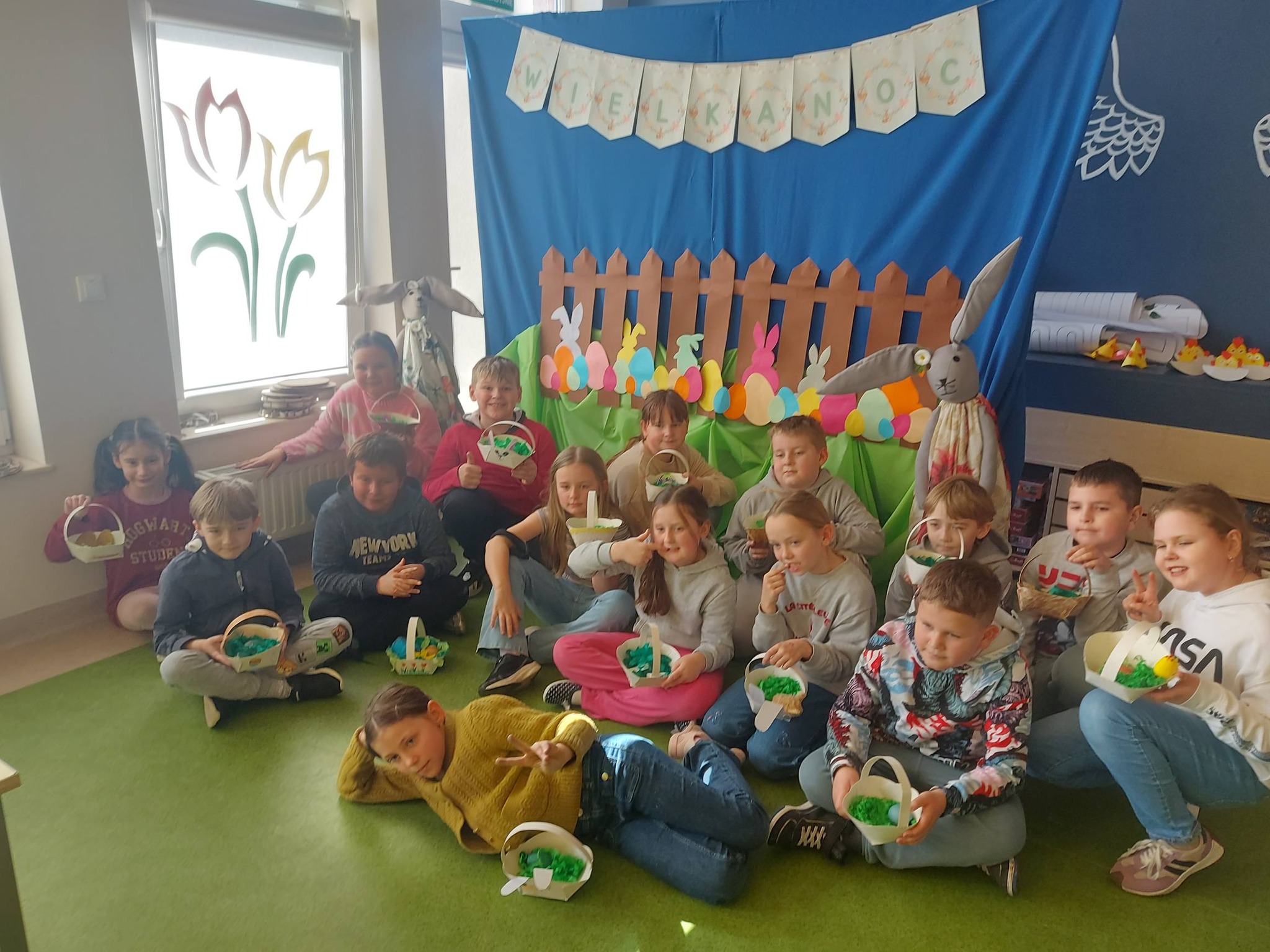 Nie zabrakło także wspólnego działania – stworzyliśmy piękną ściankę wielkanocną, która stała się tłem do radosnych zdjęć i symbolem naszej wspólnej pracy.