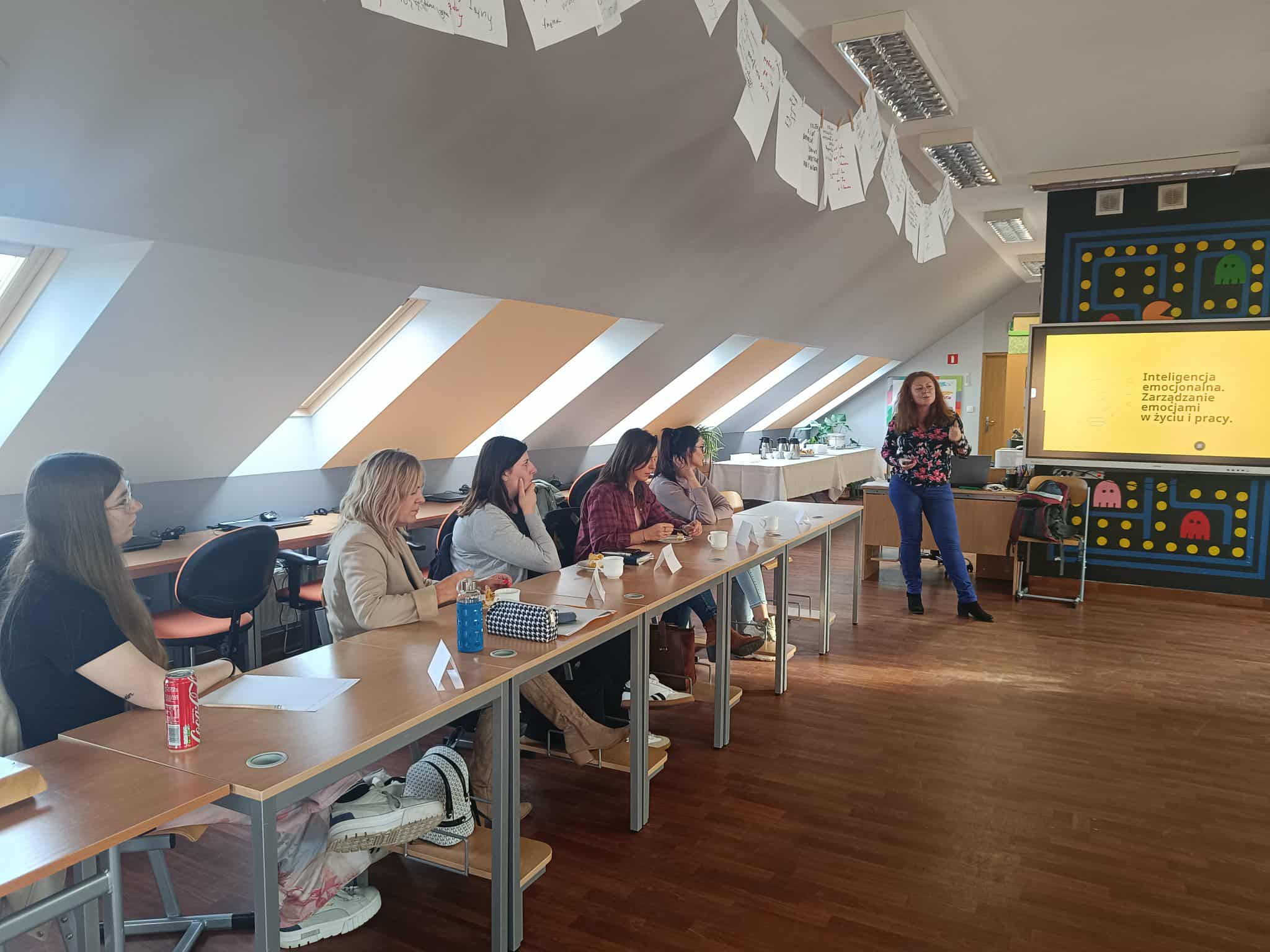 To spotkanie nie było zwykłym szkoleniem. To była 𝐩𝐨𝐝𝐫𝐨́𝐳̇ 𝐰 𝐠ł𝐚̨𝐛 𝐬𝐢𝐞𝐛𝐢𝐞 – pełna refleksji, emocji i momentów, które zostaną z nami na długo. Pani Magda wprowadziła uczestników w świat emocji – tych, które w nas buzują, czasem cicho pukają do drzwi, a czasem wybuchają jak wulkan. Pokazała, że 𝐞𝐦𝐨𝐜𝐣𝐞 𝐬𝐚̨ 𝐧𝐚𝐬𝐳𝐲𝐦 𝐰𝐞𝐰𝐧𝐞̨𝐭𝐫𝐳𝐧𝐲𝐦 𝐤𝐨𝐦𝐩𝐚𝐬𝐞𝐦, informacją o tym, co dla nas naprawdę ważne.