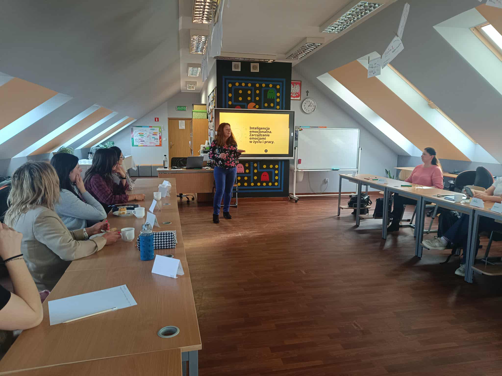 Dziękujemy również Pani Dyrektor Aleksandrze Obszyńskiej za przygotowanie pysznej niespodzianki dla wszystkich uczestników, która była miłym i słodkim dopełnieniem tego niezwykłego spotkania. 🍰☕ To był dzień, który przypomniał nam, że rozumienie emocji to początek każdej dobrej relacji – z innymi i z samym sobą. 🌿✨